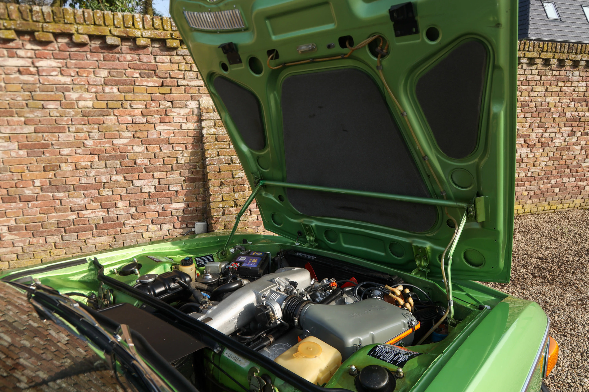 The technique was completely overhauled during the restoration. The cylinder head has been overhauled by a specialist and all bearings and seals of the engine have been replaced. The cylinders were re-honed and new piston rings were fitted. In addition, the clutch was replaced and the timing chain replaced. The car is also equipped with ventilated brake discs including new brake pads and new brake lines. In addition, the water pump was replaced, the shock absorbers and springs and a new master cylinder were placed.