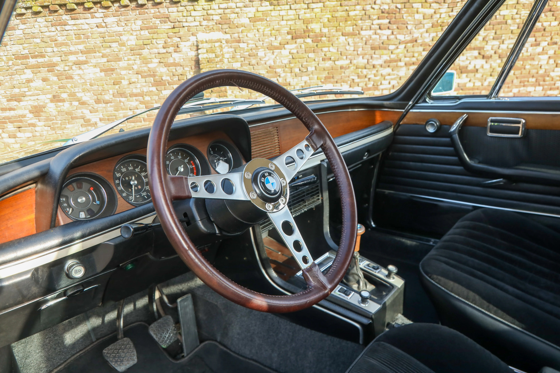 The interior is lined with black fabric and is in good condition. Because the car has been stored indoors for large parts of its life, the interior did not need to be reupholstered. The black fabric upholstery is in good condition and the carpets are also neatly cared for. The dashboard of the BMW looks beautiful, as do the instruments and controls present.