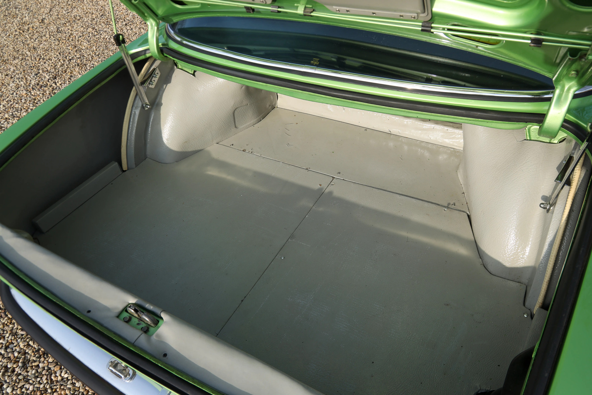 The body has been completely reduced to bare metal and repaired where necessary. The car was then completely repainted in its original colour. The work was carried out very well at the time and the general condition of the car can therefore only be described as very good. The body still looks beautiful with nice thin sheet metal and neat fits. The chrome work and the wheels are also in good condition.