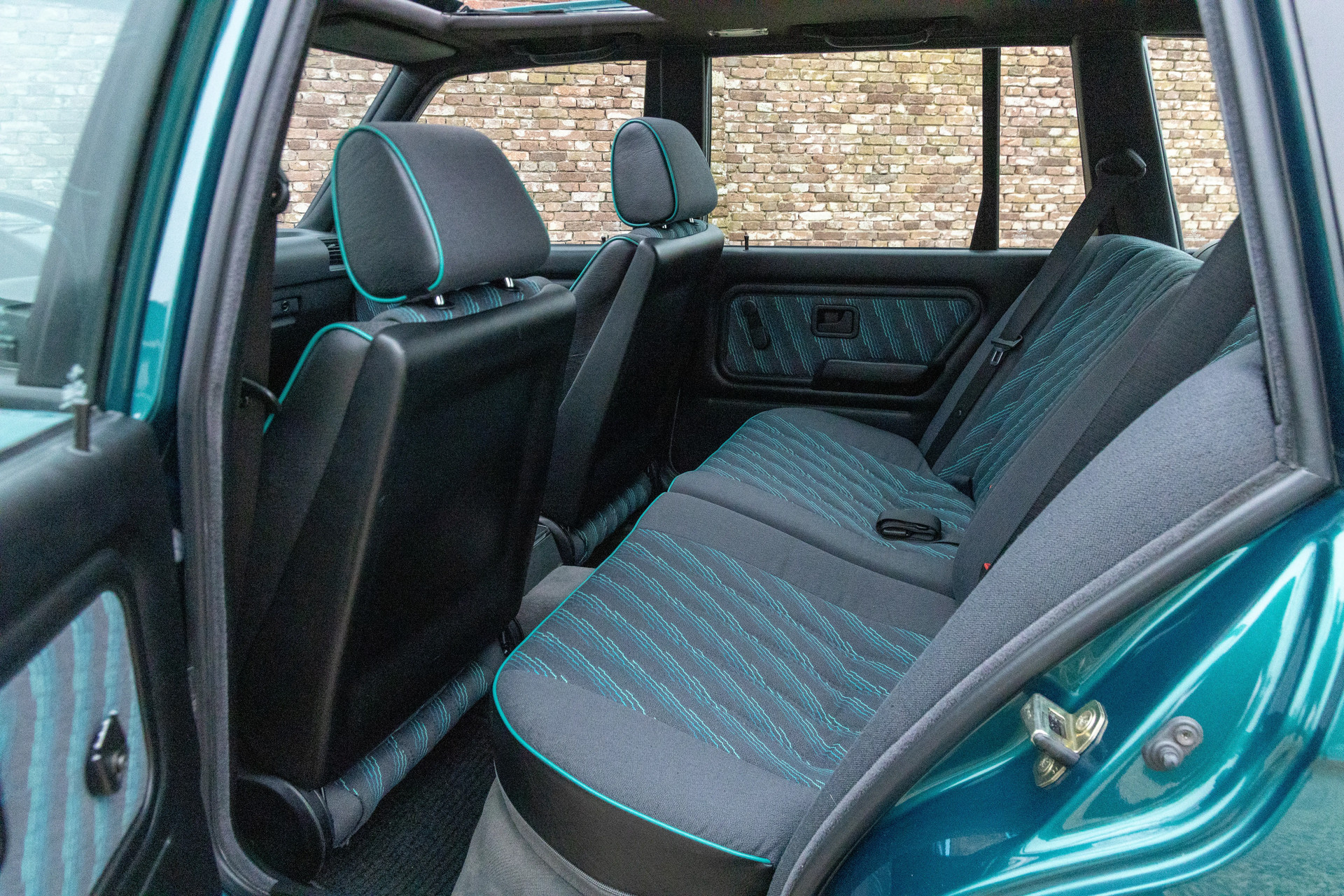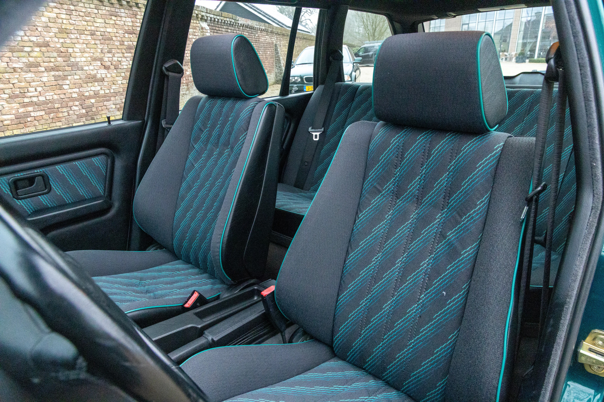 Deze Touring is tot op het lakwerk nog in de eerste laklaag en met slechts minimale gebruikerssporen. De stoffen sportstoelen zien er strak uit, het dashboard is prachtig en de originele map met boekjes, inclusief afgestempeld serviceboekje, is allemaal aanwezig. En dan die velgen: origineel BMW en met een iconische uitstraling.