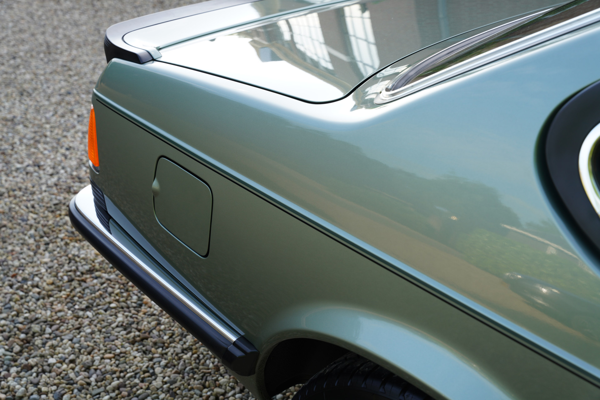 The body, executed in the beautiful color ‘Platanengrün’, is almost in new condition considering this BMW is nearly 40 years old. The fit of the various body panels is perfect. The car is in its original paint. The windows are in beautiful condition, as are the rims and bumpers. Inside, we find a completely intact interior that is practically in new condition. The gear lever looks like new, the steering wheel looks unused, and the entire instrument panel with onboard computer works just as it did four decades ago. The underside of the car is just as beautiful as the rest of the car.