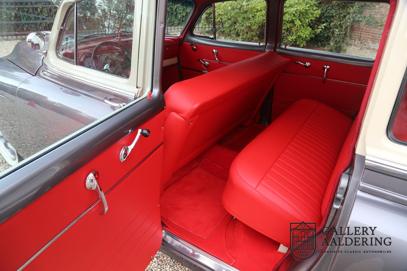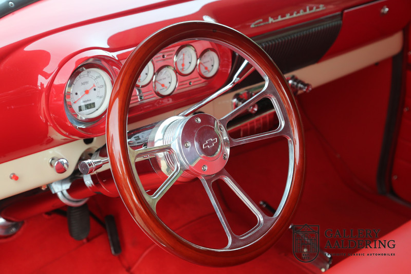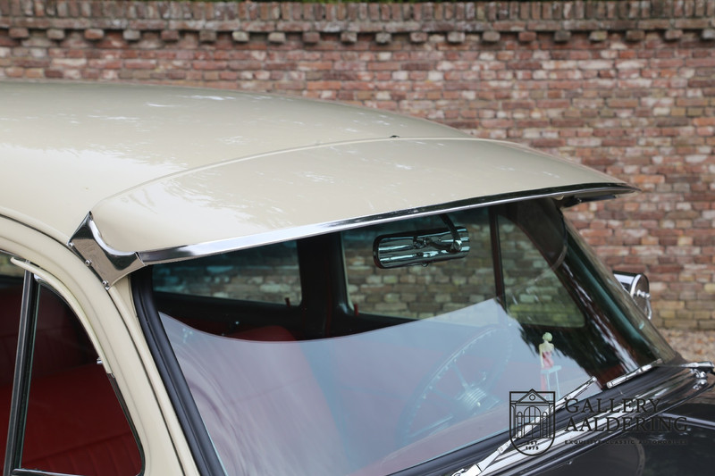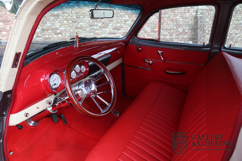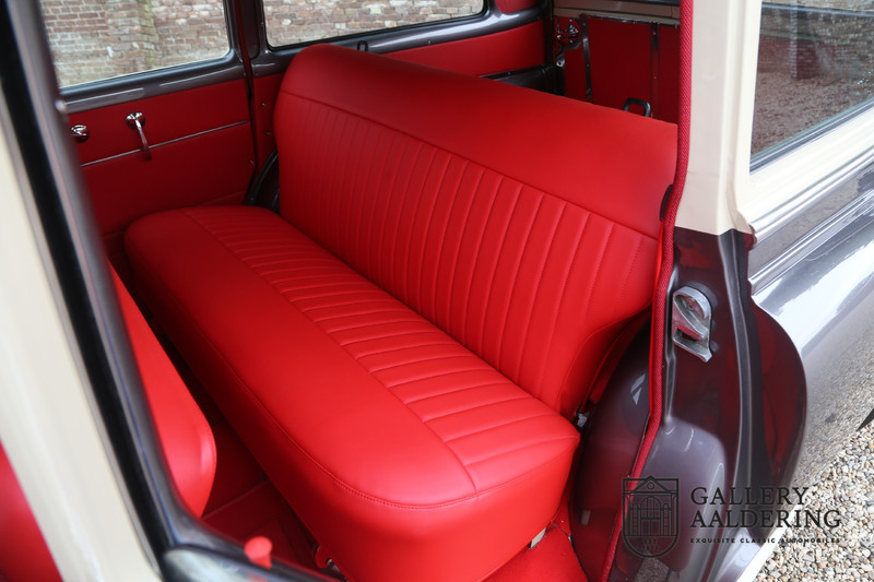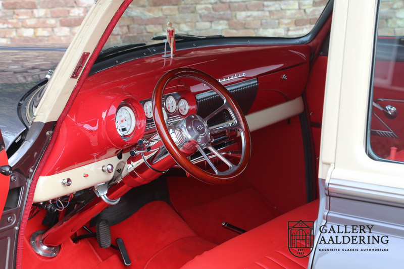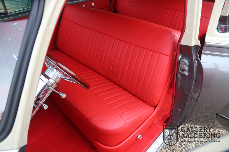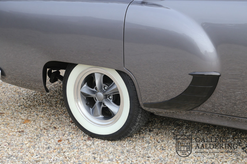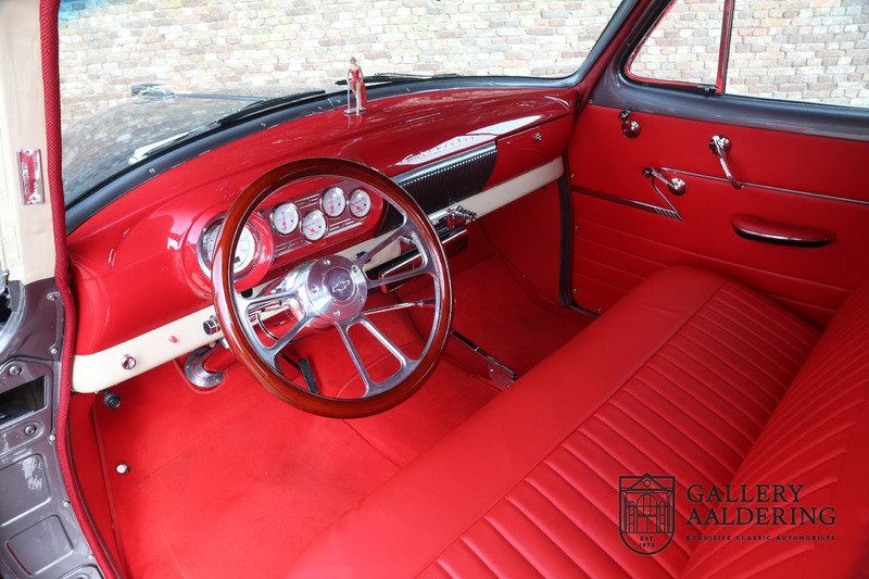 During the restoration, both bodywork and the chassis were taken back to bare metal and now look great. The high-quality paintwork affords good protection from the elements. The authentic and professional restoration means its panelwork is nicely aligned and the adorning brightwork has a flush fitting. Add to this the Hot Rod icon Chip Foose rims shod in correctly sized white walls. The car was fitted from front to back with a stainless steel exhaust system. The fetching colour scheme is beige over anthracite two-tone with great lustre perfectly in tune with the car’s presence.