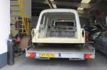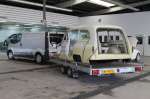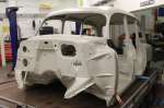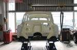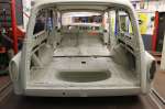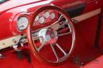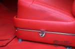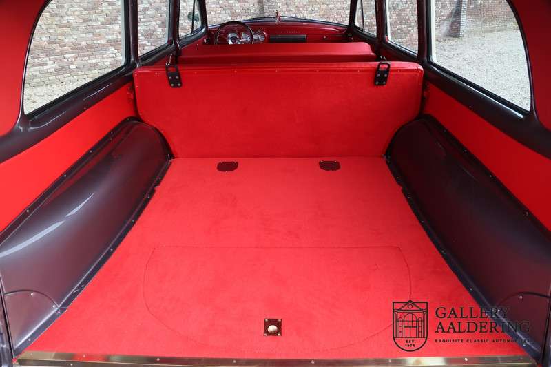The interior retrim was done in high quality lovely red vinyl with all seats being refilled, leaving us with a very comfortable and striking area. The dashboard has been resprayed and a new steering wheel fitted. The carpets as well as the headlining are new. Normally we would not spend to much time mentioning the boot space, but we think it is worth an exception. The boot has been refurbished to include the metal strips to ease sliding your suitcases over. The dashboard is fitted with gorgeous Dolphin gauges. The odometer informs us the car has only travelled 1897 kilometres since restoration.