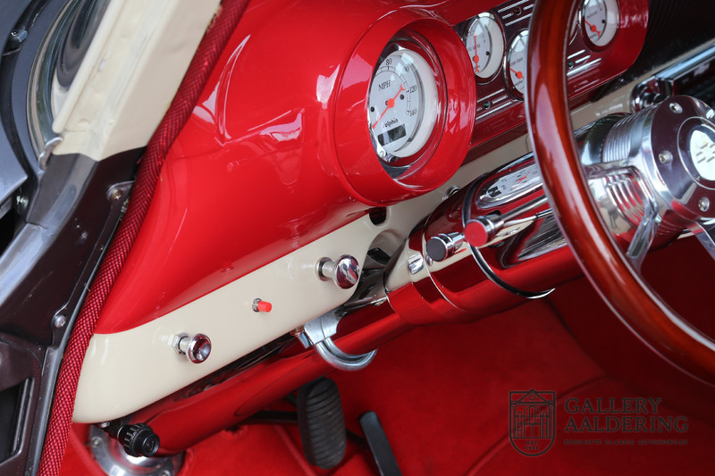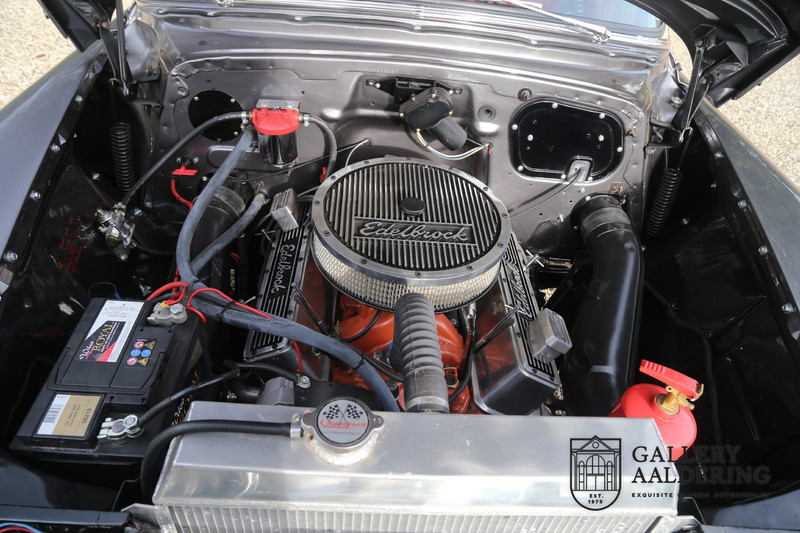 Mechanically this car has improved enormously compared to when it left the factory. Consider the front double Wishbone suspension, a huge 5.7 litre V8 with lots of Edelbrock components. The engine develops 256 hp and is by far faster than the original straight-six. Brakes and suspension have of course been upgraded to account for the improved performance. This car feels and handles quite modern.