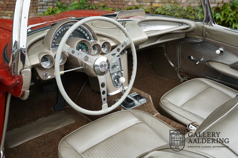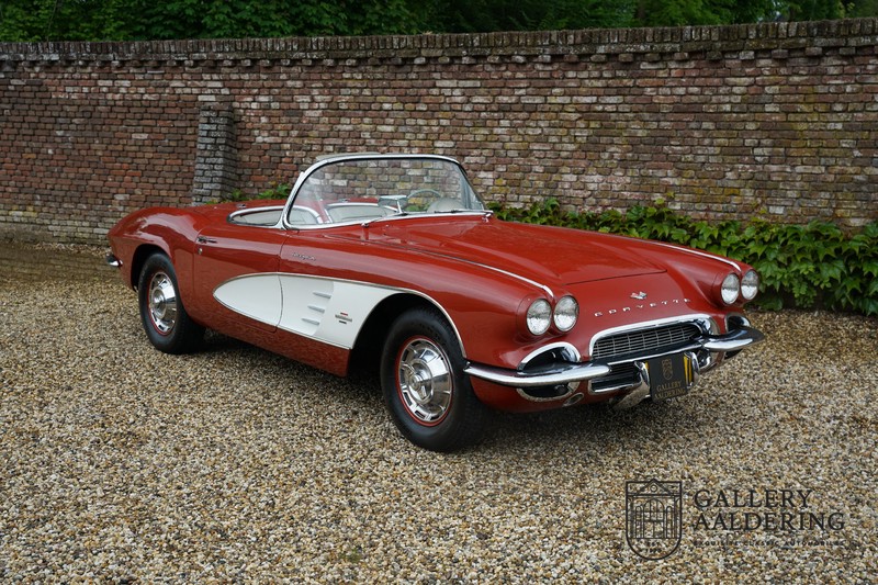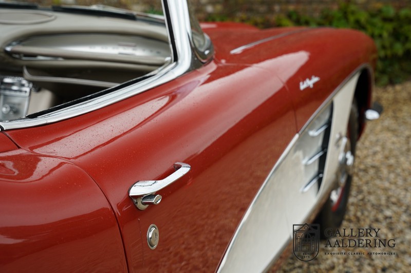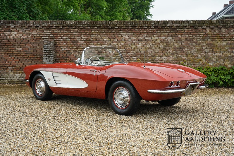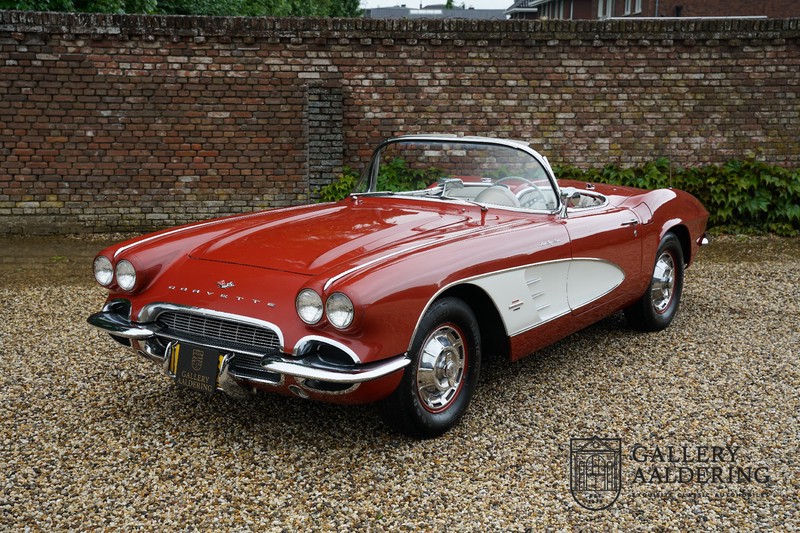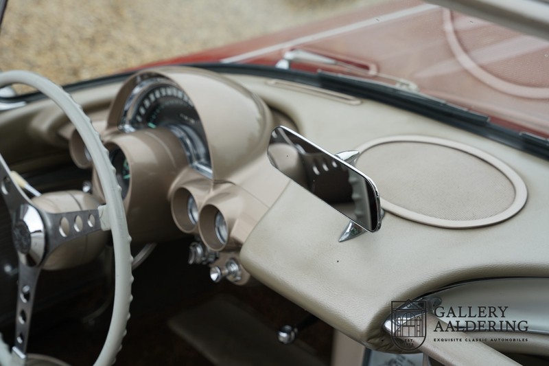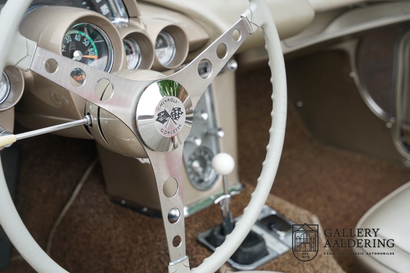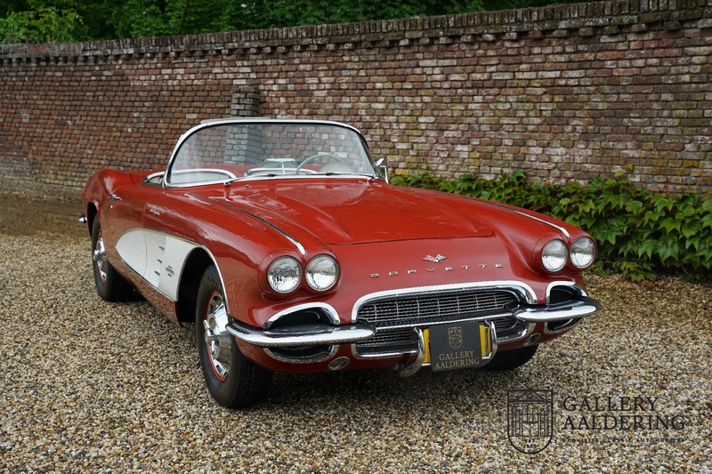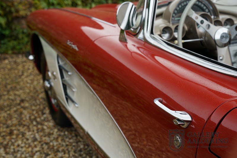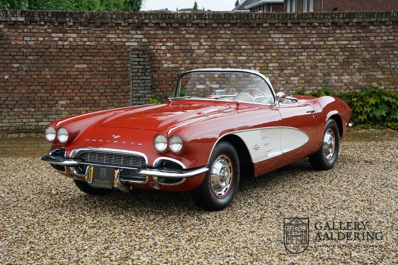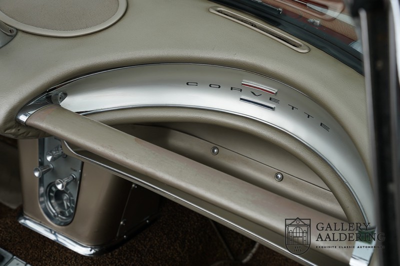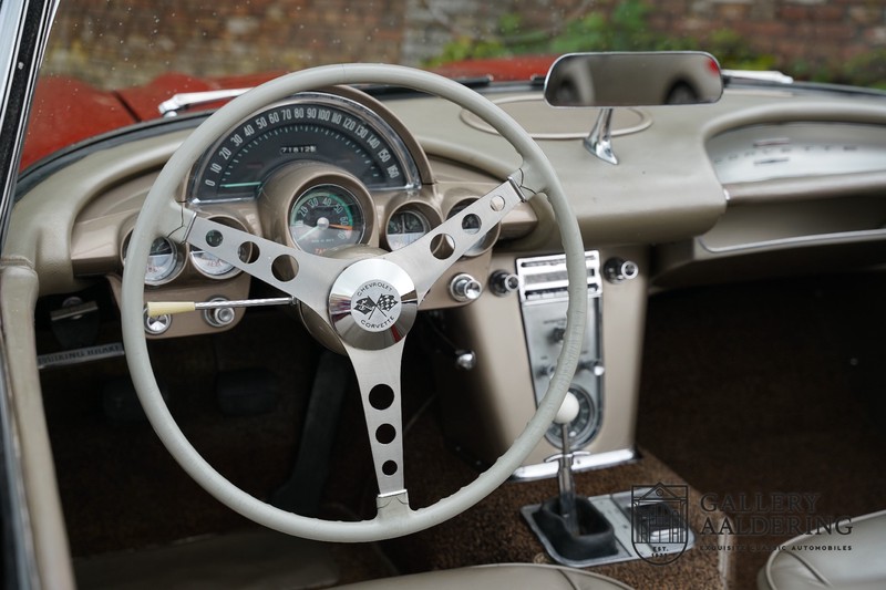 This is a wonderful original 1961 Chevrolet Corvette C1 with its brilliant two-tone finish, in original condition, a top of the range engine unit attached to that manual gearbox. This is exactly the Chevrolet Corvette C1 you are looking for! Gallery Aaldering is Europe’s leading Classic Cars specialist since 1975! Always 400 Classic and Sportscars in stock, please visit www.gallery-aaldering.com for the current stock list (all offered cars are available in our showroom) and further information. We are located near the German border, 95 km from Düsseldorf and 90 km from Amsterdam. So easy traveling by plane, train, taxi and car. Transport and worldwide shipping can be arranged. No duties/import costs within Europe. We buy, sell and provide consignment sales (selling on behalf of the owner). We can arrange/provide registration/papers for our German (H-Kennzeichen, TÜV, Fahrzeugbrief, Wertgutachten usw.) and Benelux customers. Gallery Aaldering, Arnhemsestraat 47, 6971 AP Brummen, The Netherlands. Tel: 0031-575-564055. Quality, experience and transparency is what sets us apart. We look forward to welcoming you in our showroom