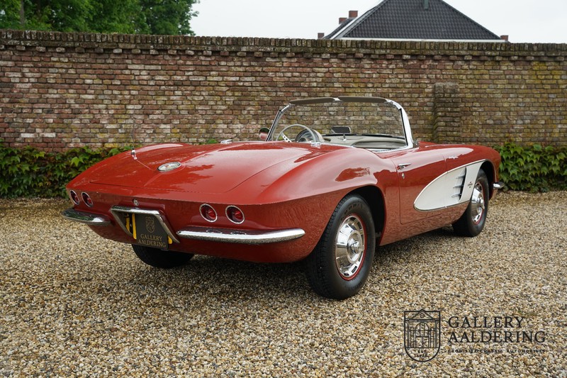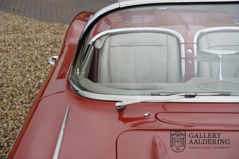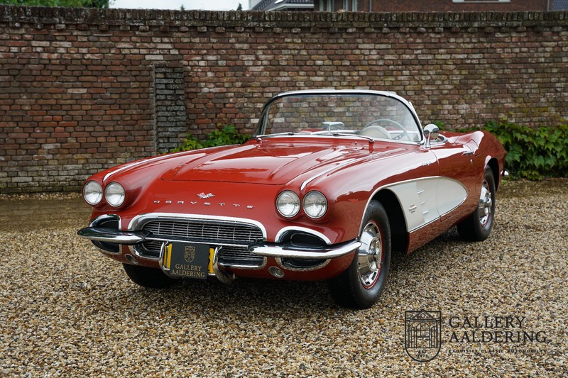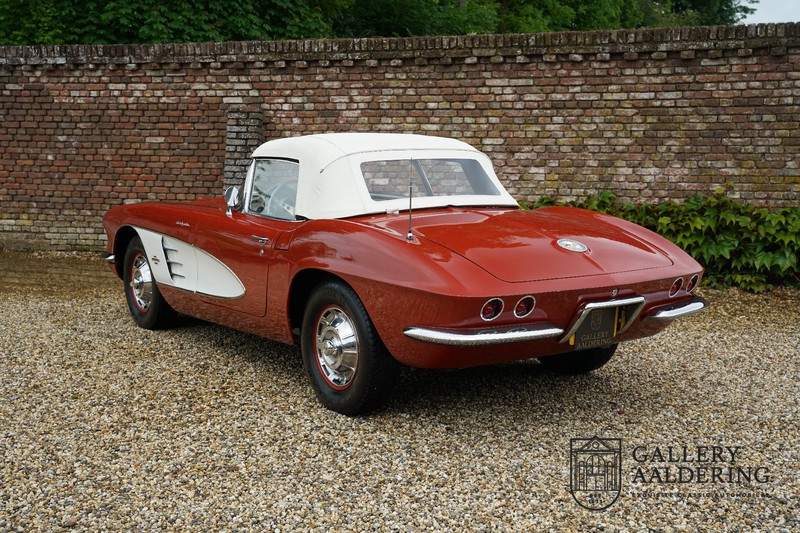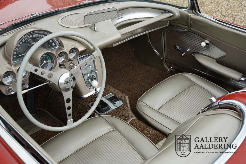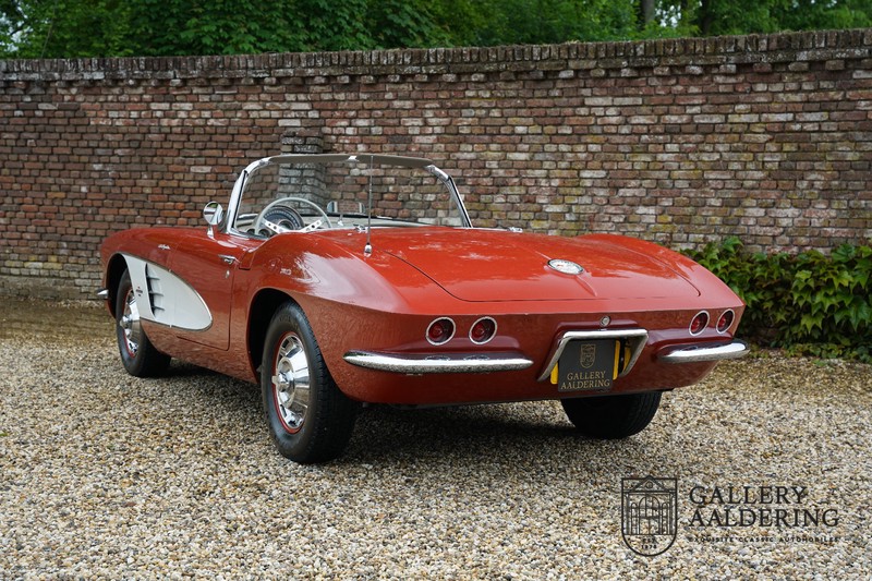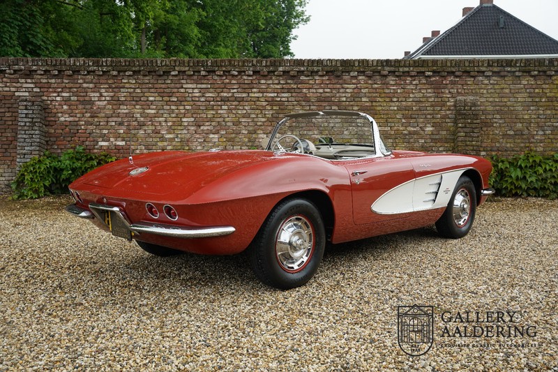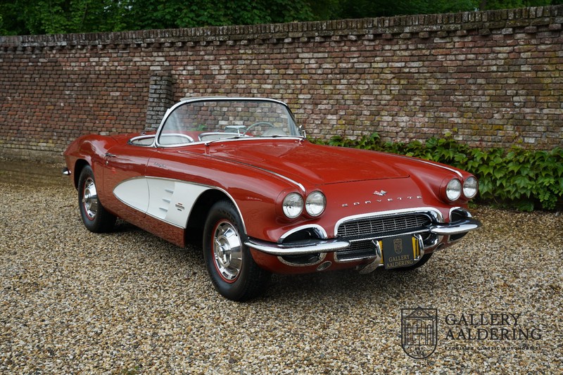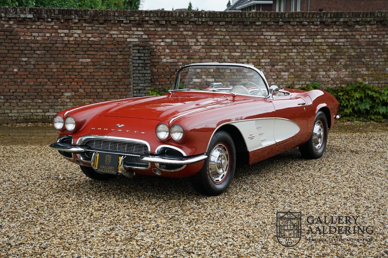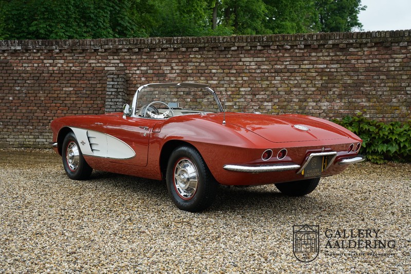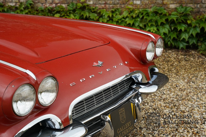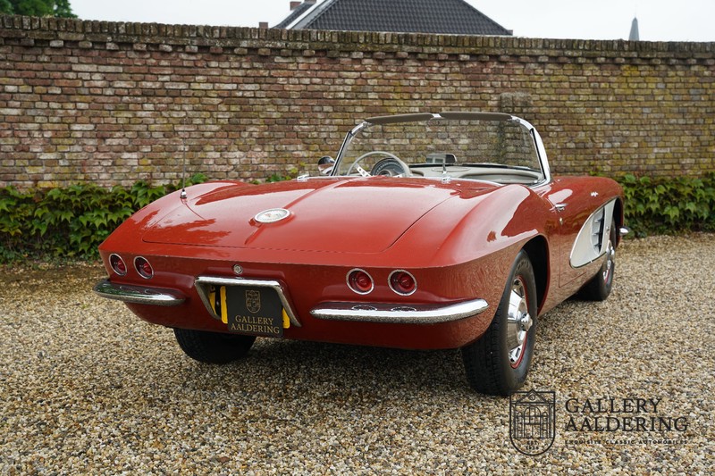This is a wonderful original 1961 Chevrolet Corvette C1 with its brilliant two-tone finish, in original condition, a top of the range engine unit attached to that manual gearbox. This is exactly the Chevrolet Corvette C1 you are looking for! Gallery Aaldering is Europe’s leading Classic Cars specialist since 1975! Always 400 Classic and Sportscars in stock, please visit www.gallery-aaldering.com for the current stock list (all offered cars are available in our showroom) and further information. We are located near the German border, 95 km from Düsseldorf and 90 km from Amsterdam. So easy traveling by plane, train, taxi and car. Transport and worldwide shipping can be arranged. No duties/import costs within Europe. We buy, sell and provide consignment sales (selling on behalf of the owner). We can arrange/provide registration/papers for our German (H-Kennzeichen, TÜV, Fahrzeugbrief, Wertgutachten usw.) and Benelux customers. Gallery Aaldering, Arnhemsestraat 47, 6971 AP Brummen, The Netherlands. Tel: 0031-575-564055. Quality, experience and transparency is what sets us apart. We look forward to welcoming you in our showroom