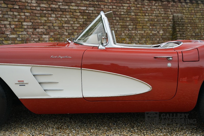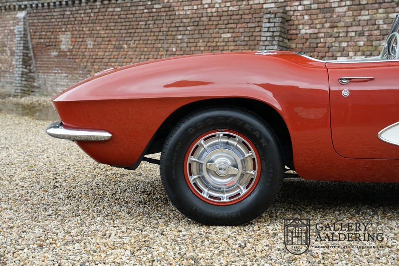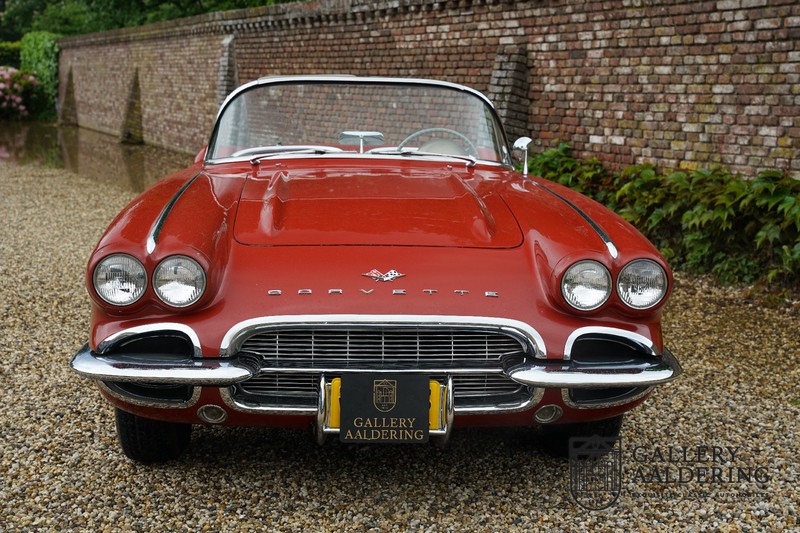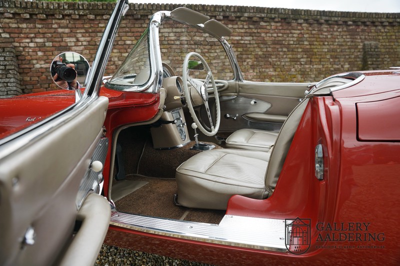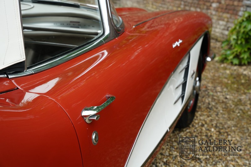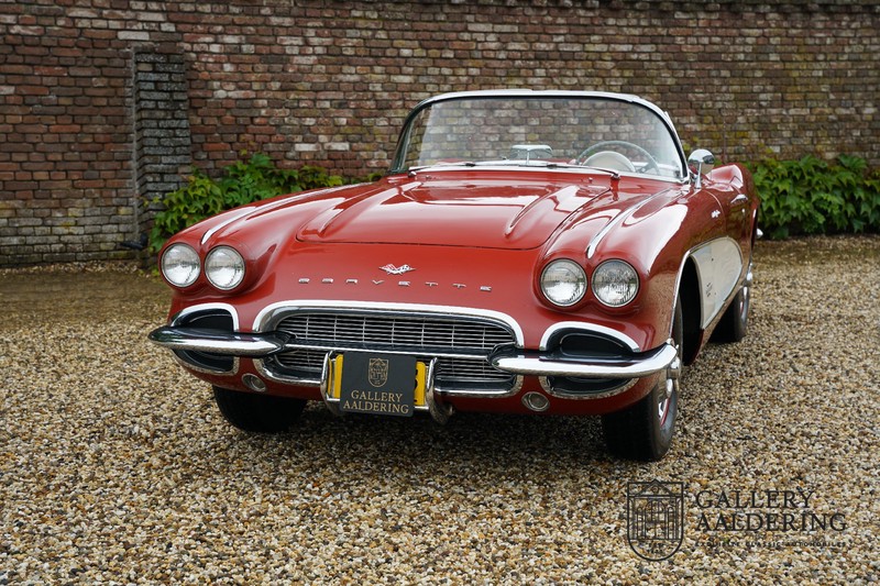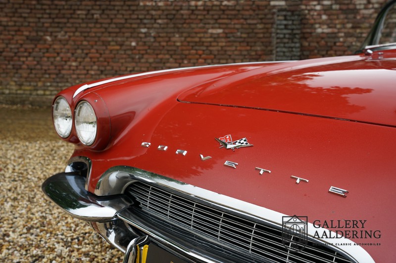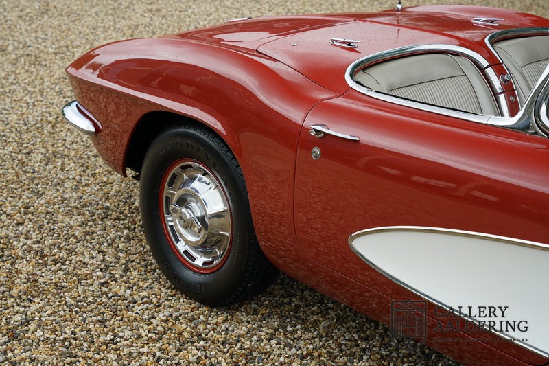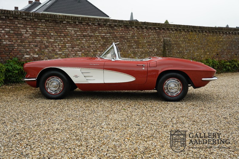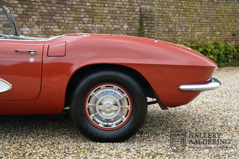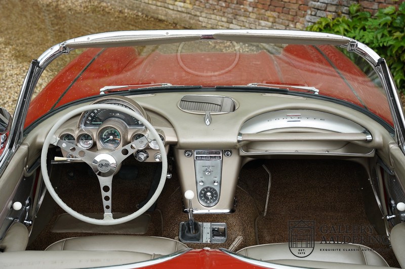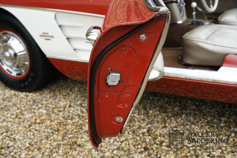 This is a wonderful original 1961 Chevrolet Corvette C1 with its brilliant two-tone finish, in original condition, a top of the range engine unit attached to that manual gearbox. This is exactly the Chevrolet Corvette C1 you are looking for! Gallery Aaldering is Europe’s leading Classic Cars specialist since 1975! Always 400 Classic and Sportscars in stock, please visit www.gallery-aaldering.com for the current stock list (all offered cars are available in our showroom) and further information. We are located near the German border, 95 km from Düsseldorf and 90 km from Amsterdam. So easy traveling by plane, train, taxi and car. Transport and worldwide shipping can be arranged. No duties/import costs within Europe. We buy, sell and provide consignment sales (selling on behalf of the owner). We can arrange/provide registration/papers for our German (H-Kennzeichen, TÜV, Fahrzeugbrief, Wertgutachten usw.) and Benelux customers. Gallery Aaldering, Arnhemsestraat 47, 6971 AP Brummen, The Netherlands. Tel: 0031-575-564055. Quality, experience and transparency is what sets us apart. We look forward to welcoming you in our showroom