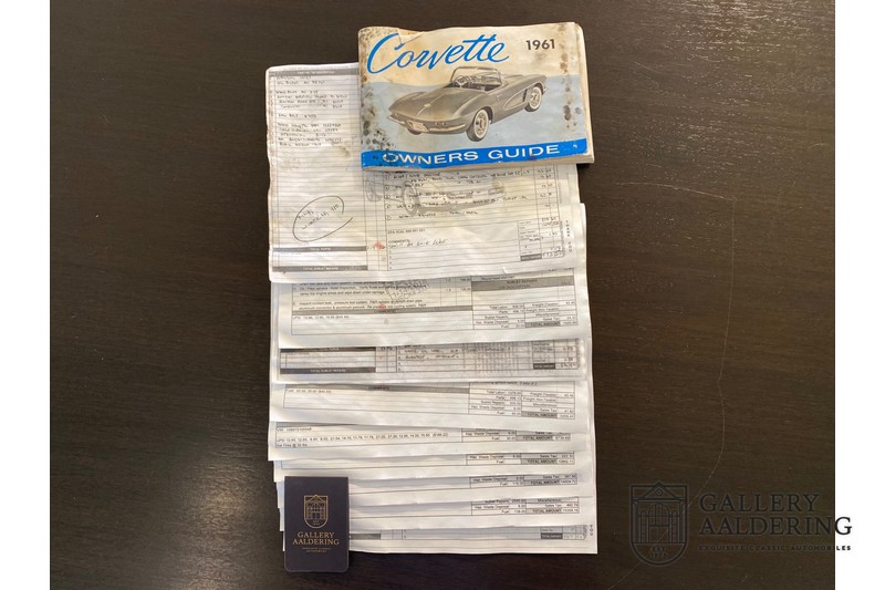 We bought the car in Santa Barbara, California in the States. The were a number of things that immediately drew our attention and made sure we added this one to our collection. First of all there is the condition to consider. Good care and the warm Californian climate has preserved this car from the ravages of bad weather. That meant this Corvette never needed to be restored and is in very original condition. That does not mean they scrimped on maintenance. The previous owner spent over$ 26.000 in maintenance with one invoice totalling over $ 15.400. Mechanically the car is in A-1 condition, which becomes immediately obvious once behind the wheel. The brakes work fine and the car holds the road really well. The 283 Ci (4.6 litre) engine has been fitted with a Rochester fuel injector, giving her 315 Ps. This was the top of the range C1 edition, her 315 PS, despite her 60 summers, still making this a seriously fast car. The engine is attached to the rare and very popular manual 4-speed gearbox. Especially the presence of fuel injection is rare. In 1961 Chevrolet produced 10,931 Corvettes of which only 1,462 had the top of the range engine. Other rarities include the heating system and the factory supplied am radio.