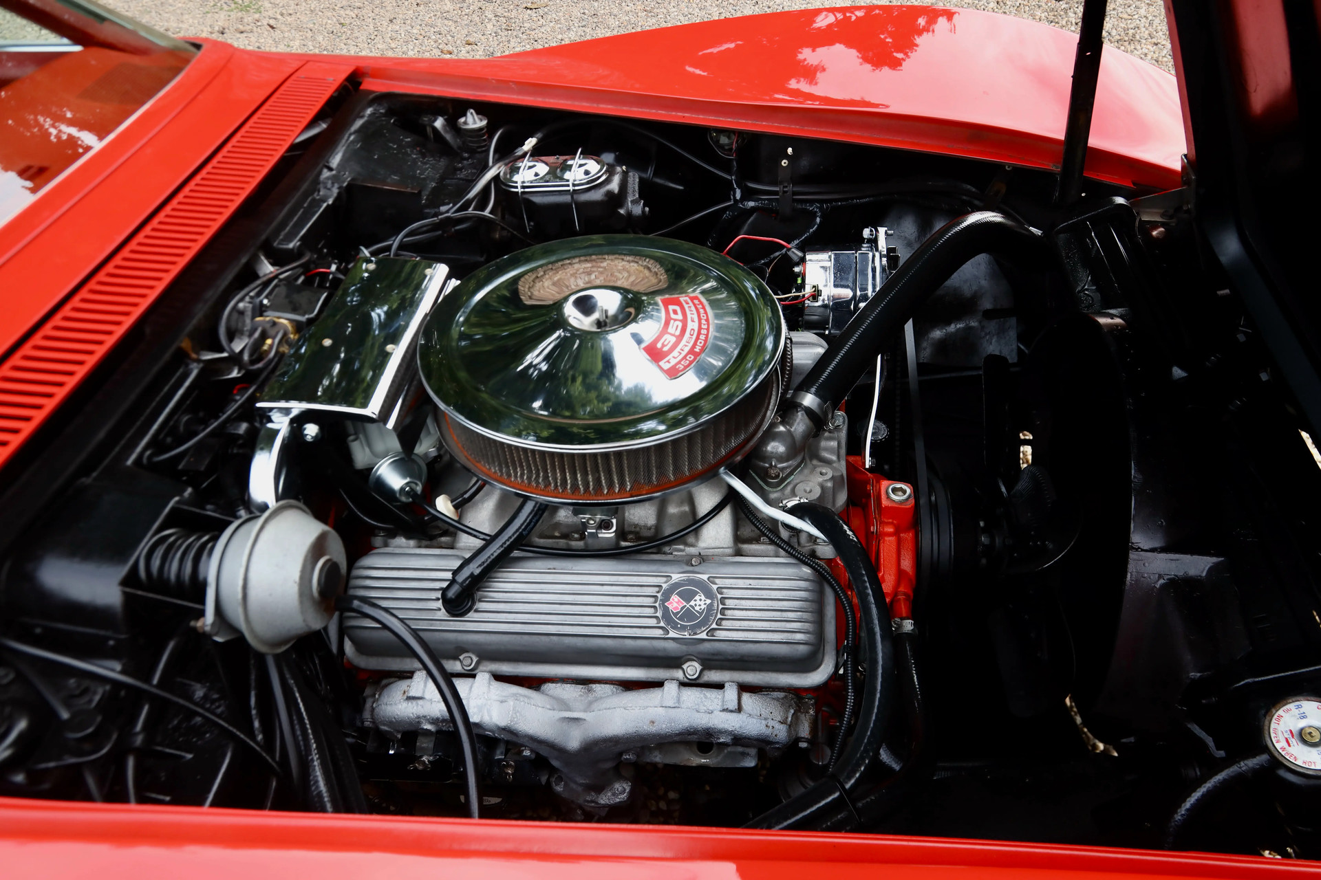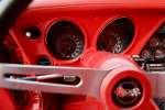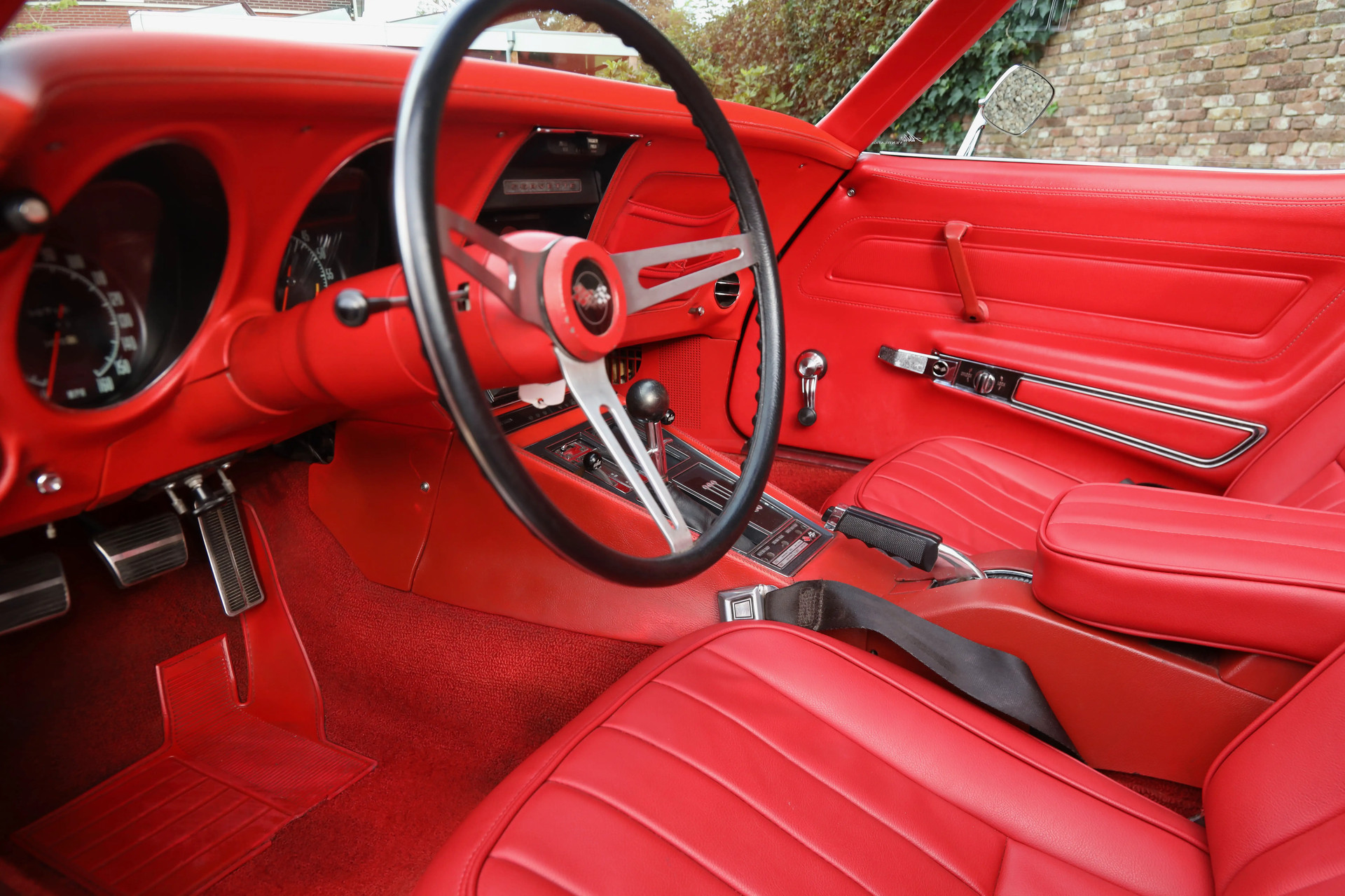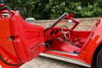 Diese Corvette hat in der Vergangenheit Restaurierungs- und Überholungsarbeiten erfahren und präsentiert sich daher in einem sehr gepflegten Zustand. Die Karosserie ist glatt und die rote Lackierung ausgesprochen sauber. Die Passungen der Karosserieteile sind stimmig, und die Felgen runden den Auftritt dieser Corvette perfekt ab. Werfen Sie auch einen Blick auf unsere ausführliche Fotoreportage auf unserer Website, um einen Eindruck dieses Fahrzeugs zu erhalten.
