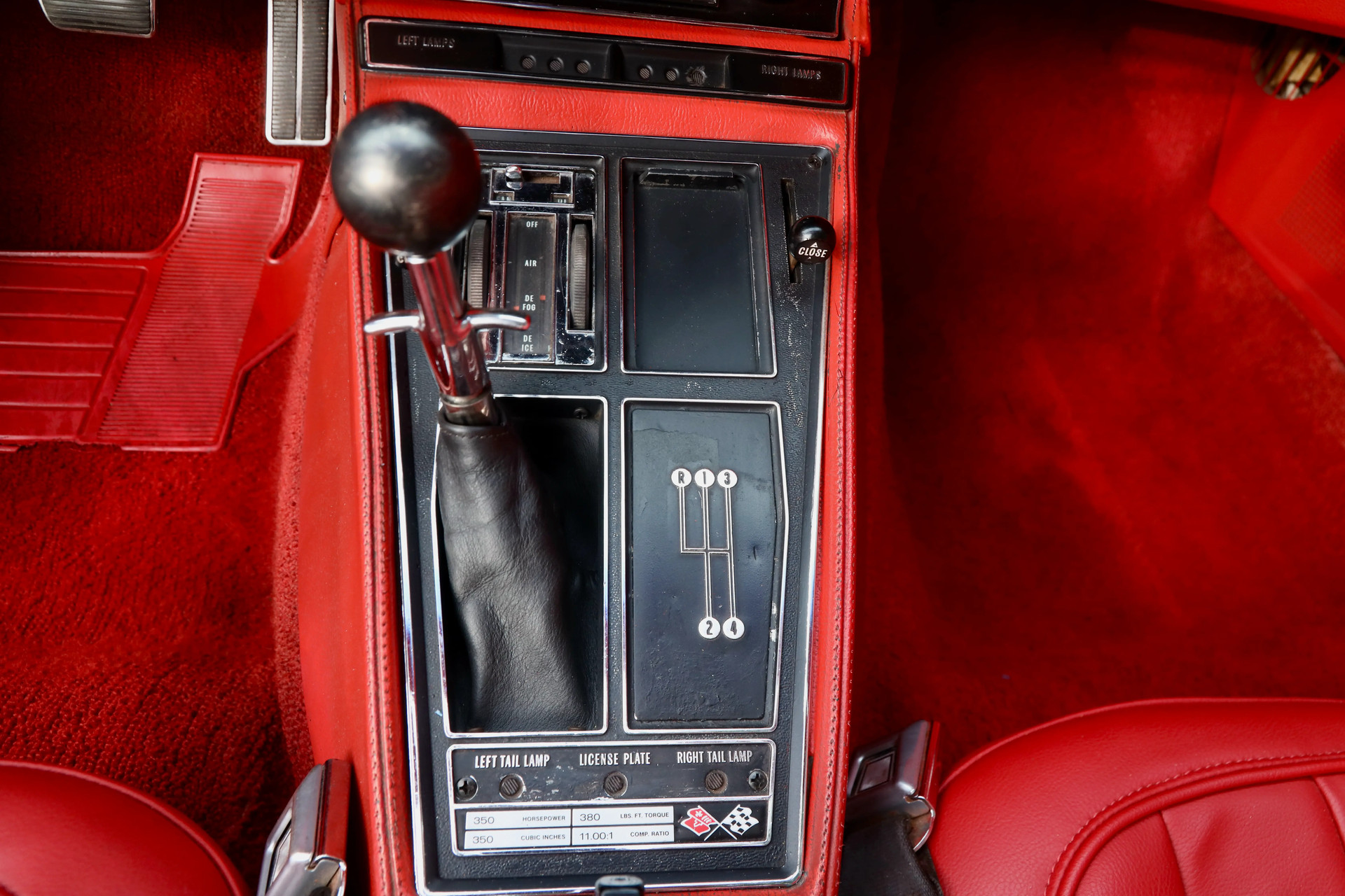 Sous le capot se trouve le puissant L45 350 cubic inch à haut rendement. Ce moteur sonne merveilleusement bien, démarre sans hésitation et délivre un couple impressionnant. Associée à la boîte manuelle à quatre rapports, cette mécanique met pleinement en valeur le caractère sportif de la Corvette. La boîte se manie avec aisance et une fois en route, la tenue de route de cette C3 impressionne.