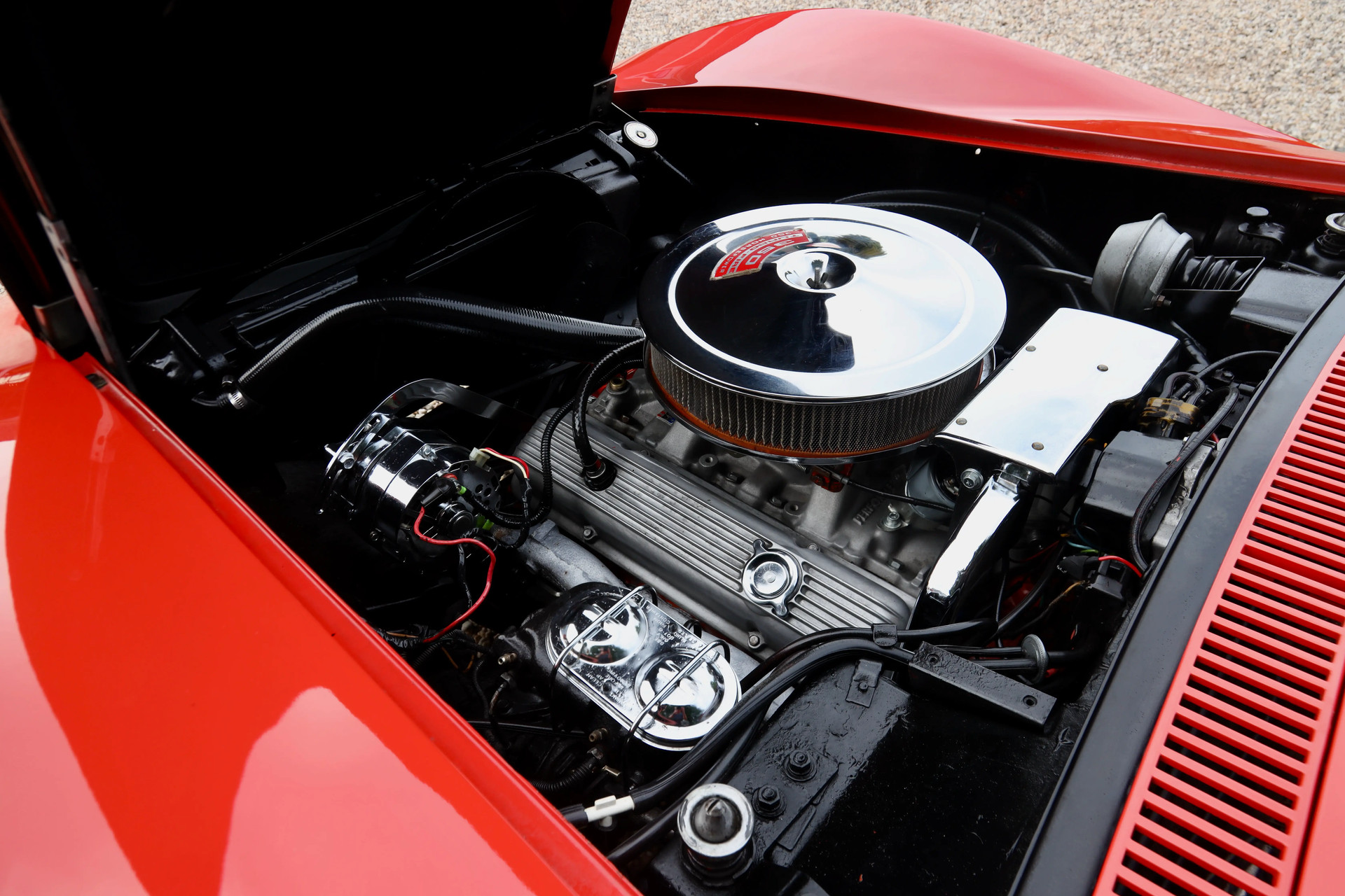 Cette Corvette a bénéficié par le passé de travaux de restauration et de révision, ce qui explique sa présentation très soignée aujourd’hui. La carrosserie est tendue et la peinture rouge en superbe état. Les ajustements des différents panneaux sont précis et les jantes complètent parfaitement son allure. Nous vous invitons à consulter également notre reportage photo détaillé sur notre site pour mieux apprécier cet exemplaire.
