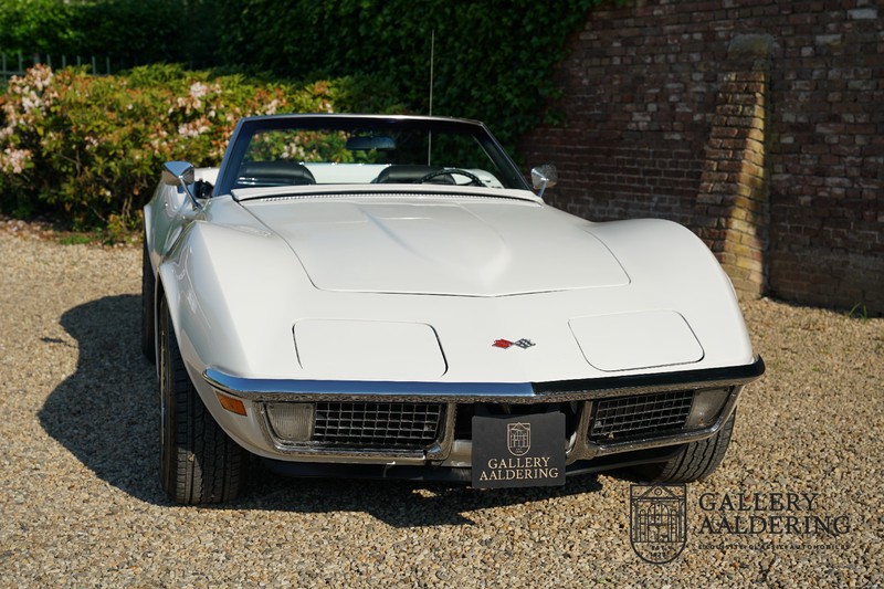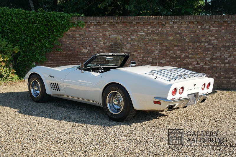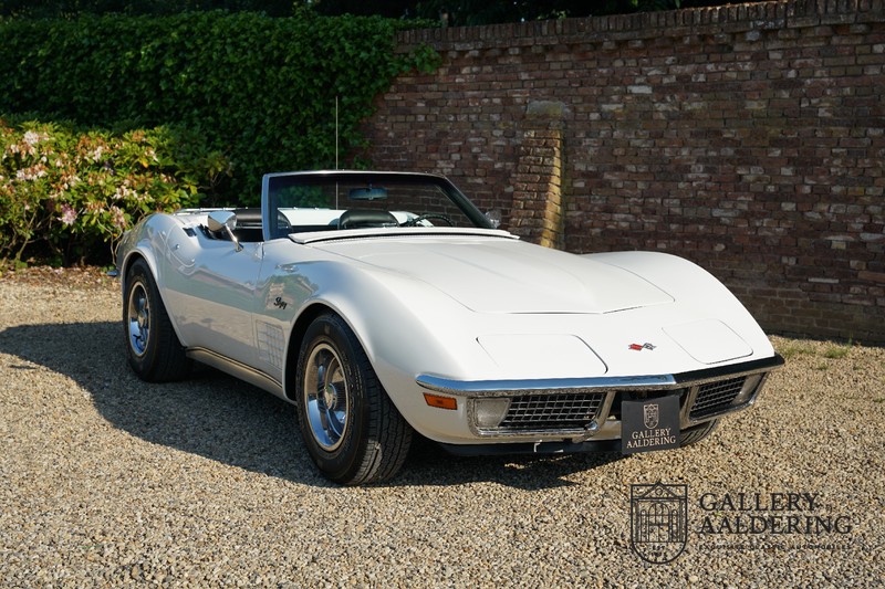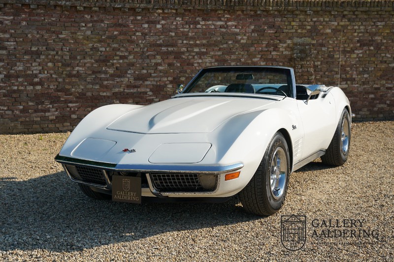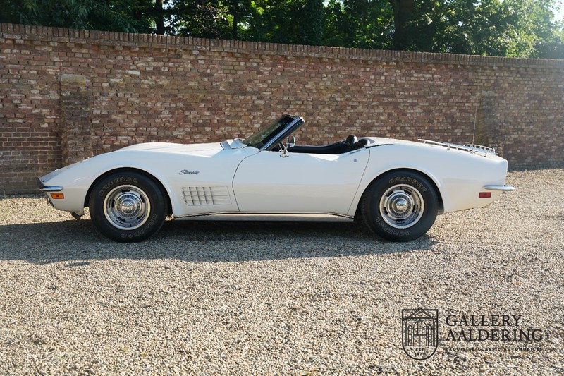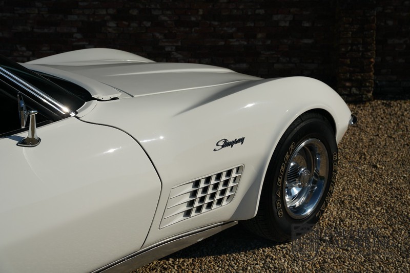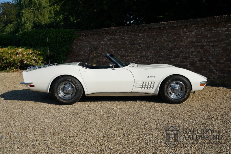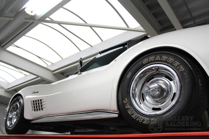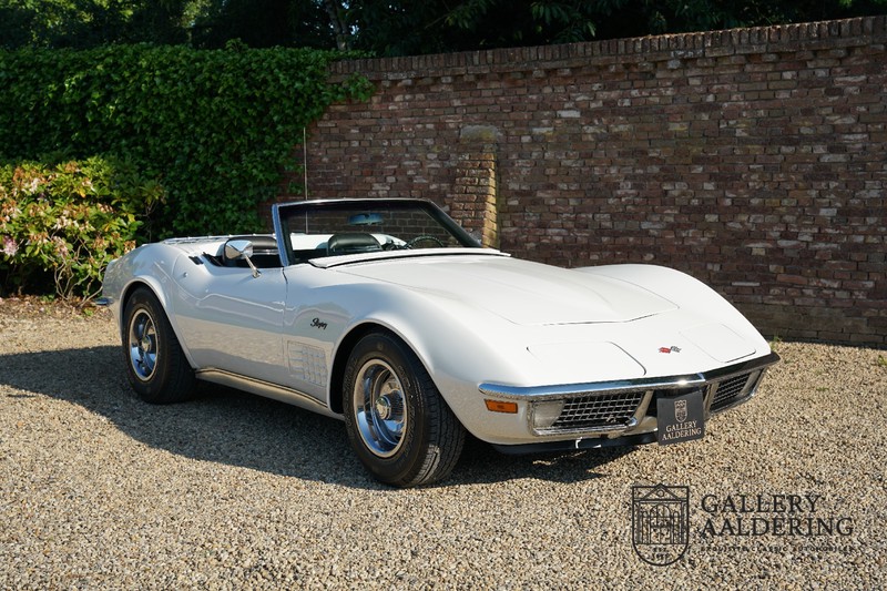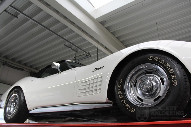 Het betreft hier een prachtige Chevrolet Corvette C3 Stingray Convertible uit 1971. De auto verkeert in hele fraaie en originele conditie. De Corvette is uitgevoerd in een aantrekkelijke kleurstelling met witte lak en een zwart interieur.