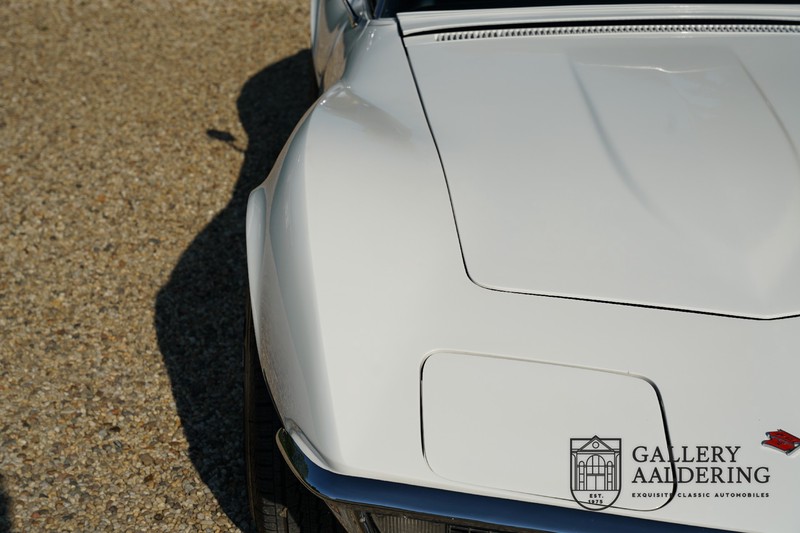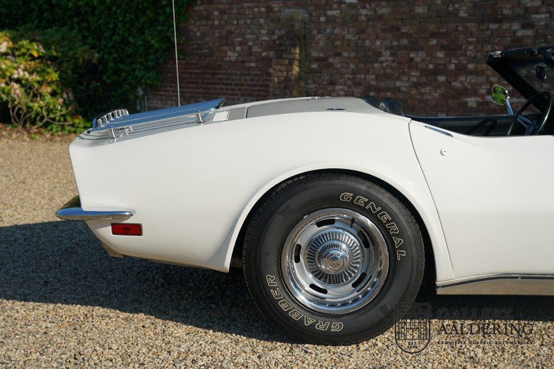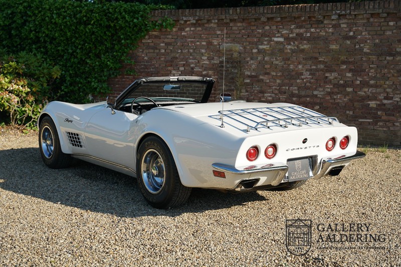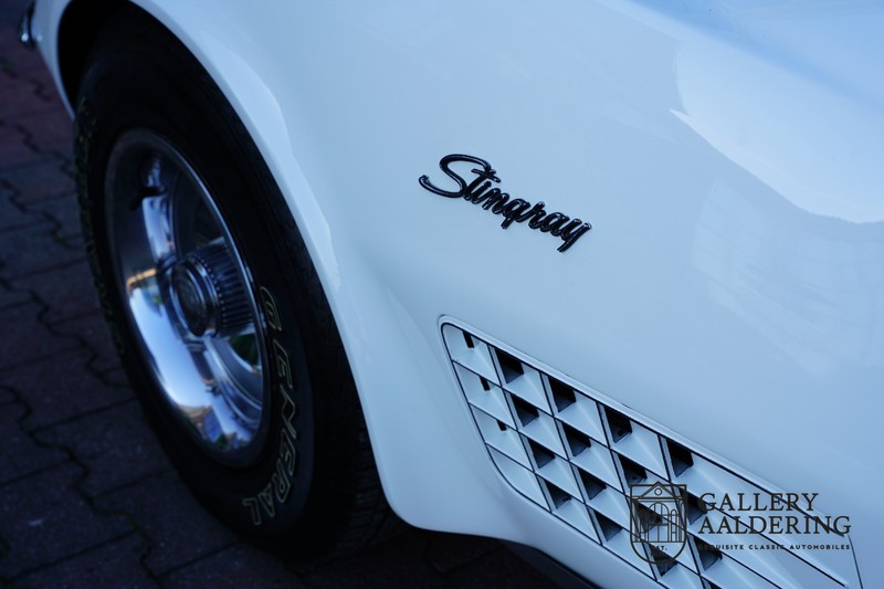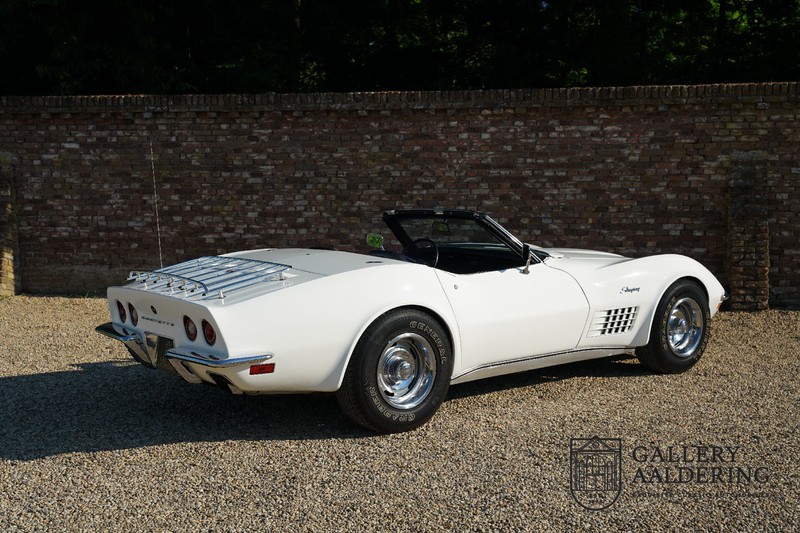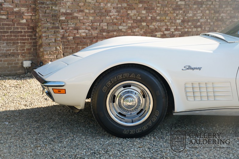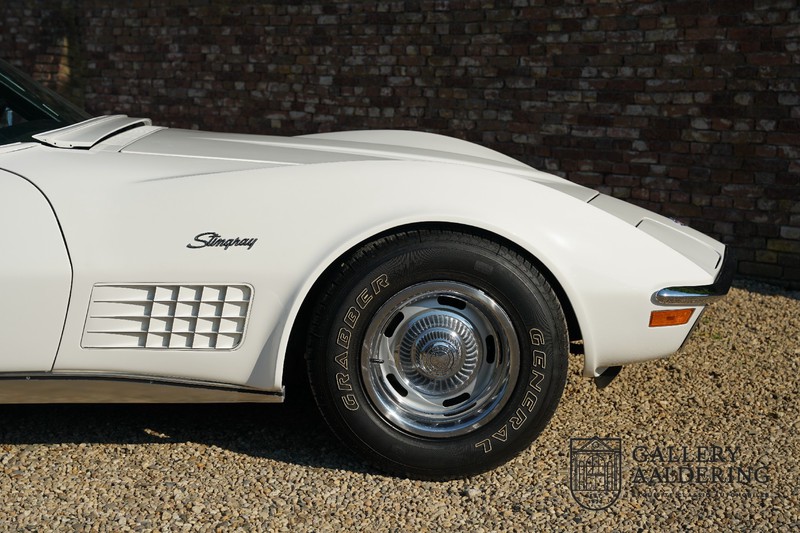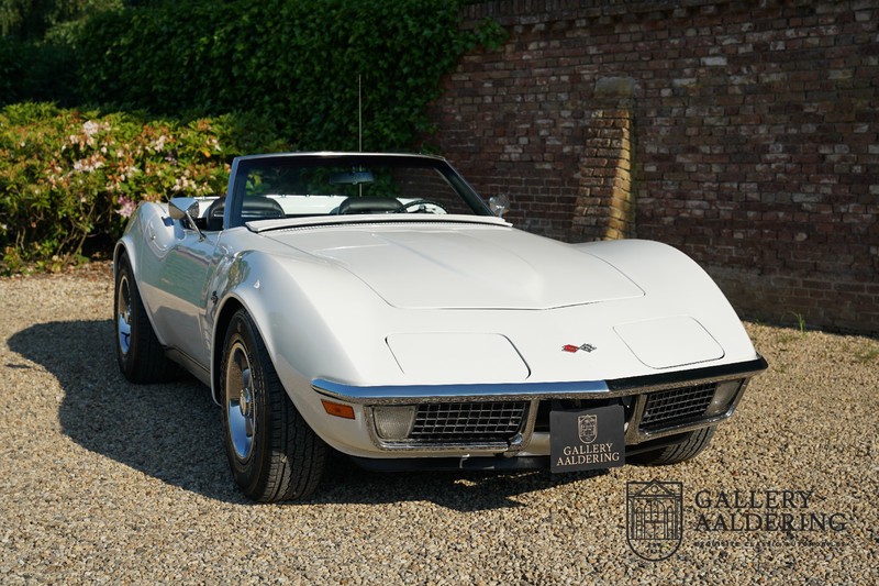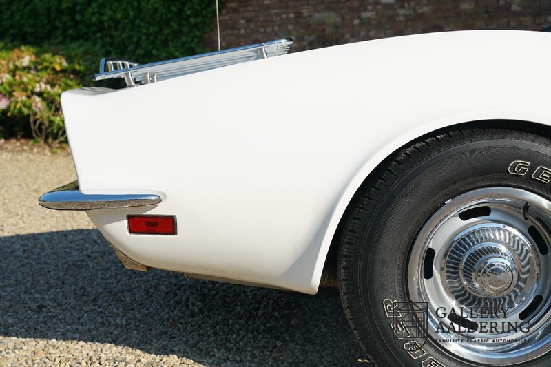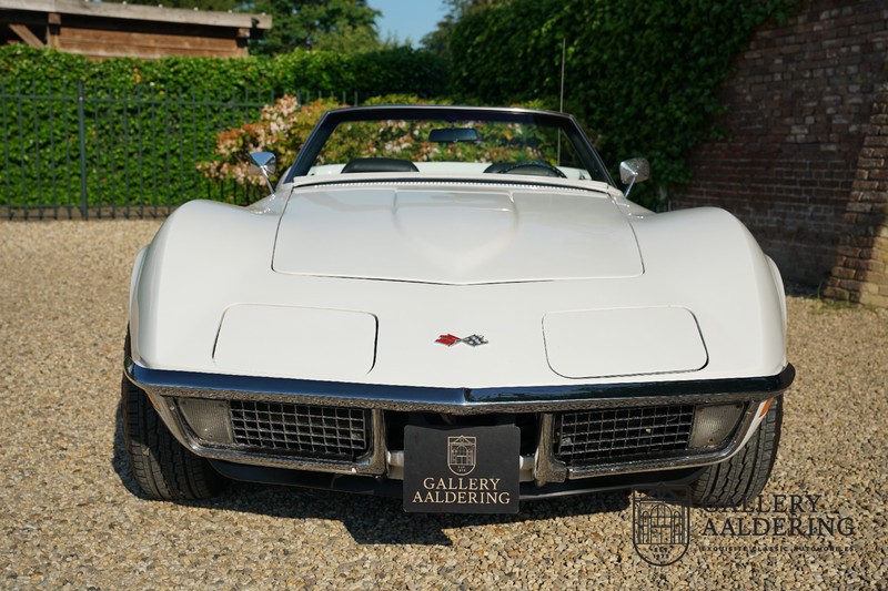 Het betreft hier een prachtige Chevrolet Corvette C3 Stingray Convertible uit 1971. De auto verkeert in hele fraaie en originele conditie. De Corvette is uitgevoerd in een aantrekkelijke kleurstelling met witte lak en een zwart interieur.