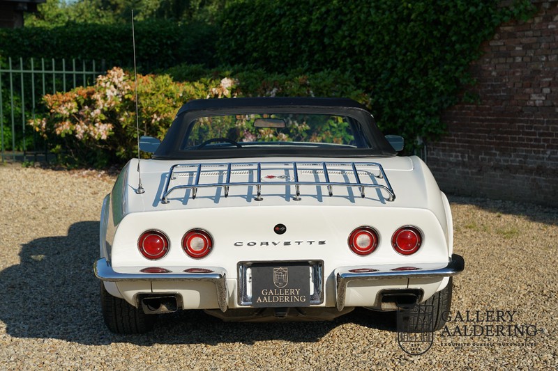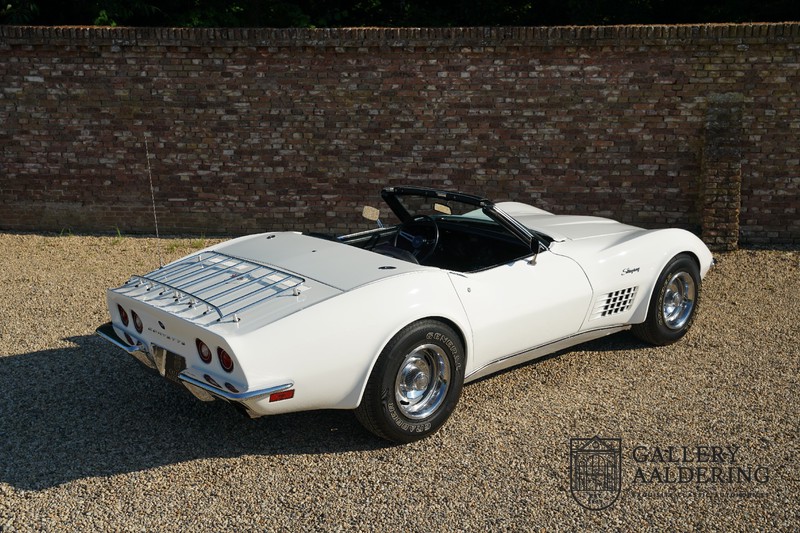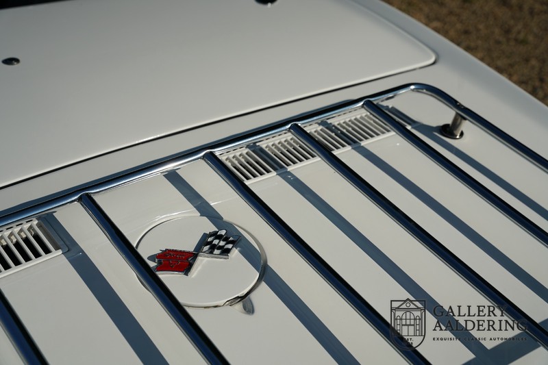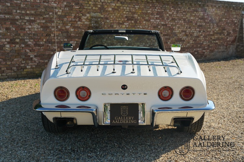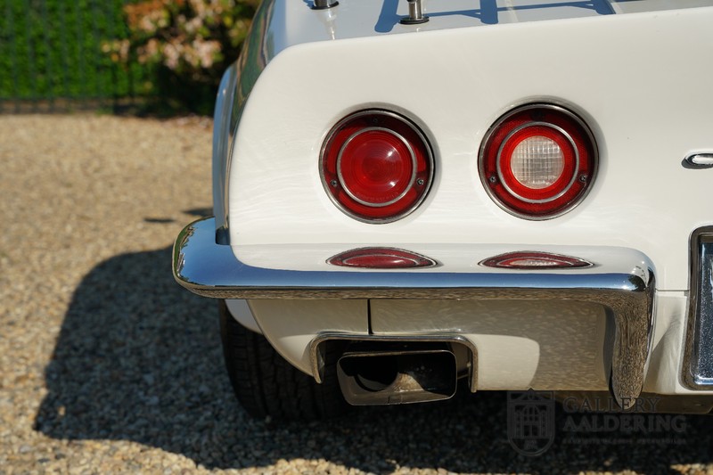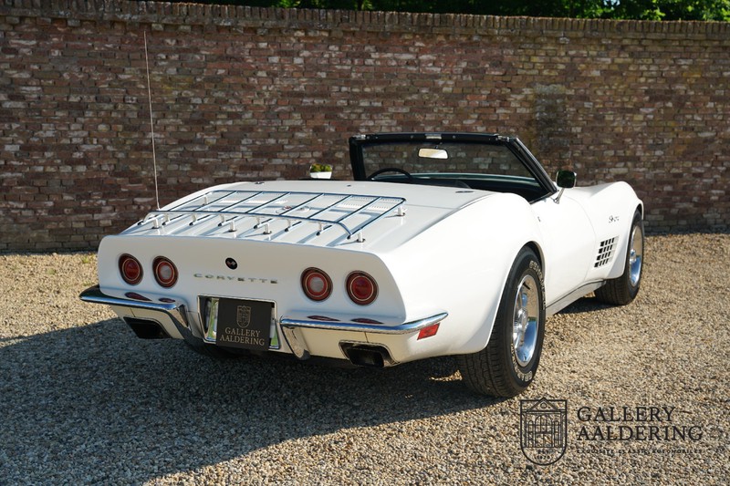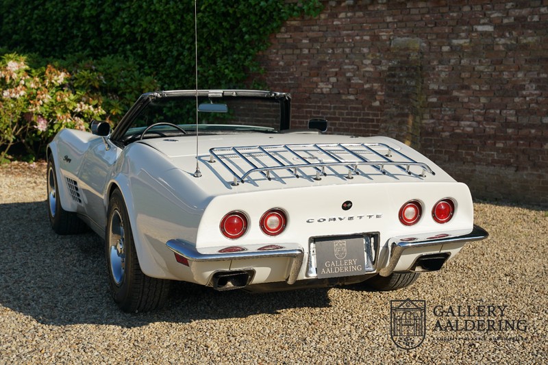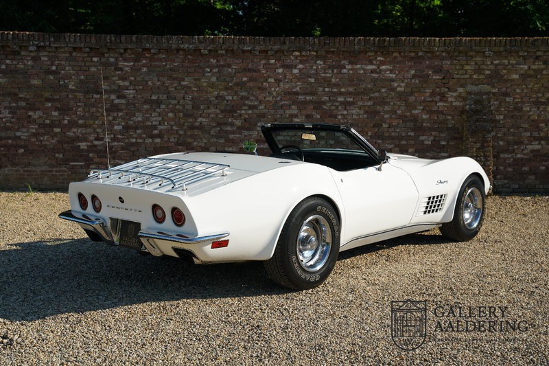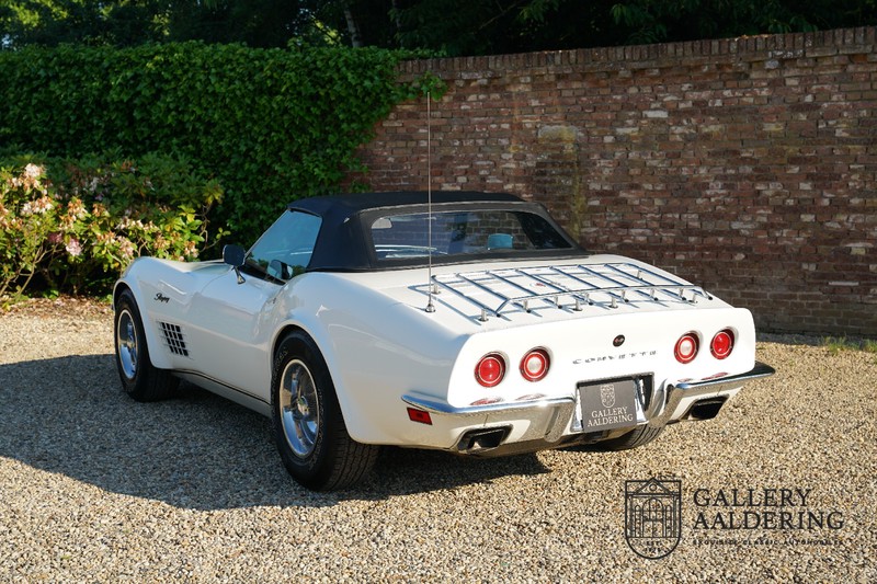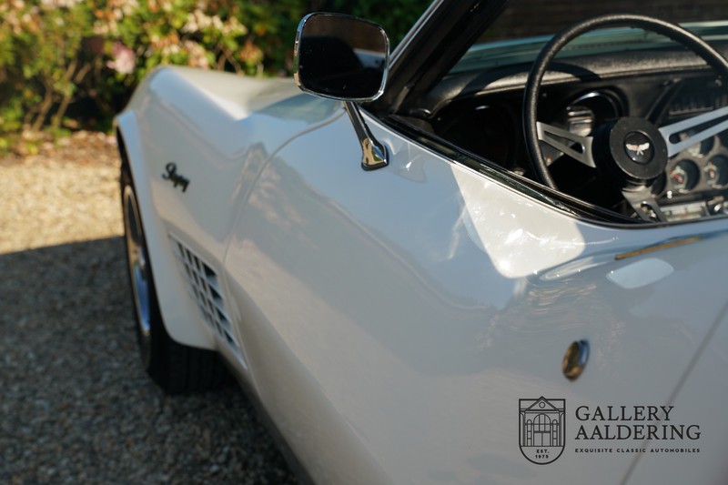 Het betreft hier een prachtige Chevrolet Corvette C3 Stingray Convertible uit 1971. De auto verkeert in hele fraaie en originele conditie. De Corvette is uitgevoerd in een aantrekkelijke kleurstelling met witte lak en een zwart interieur.