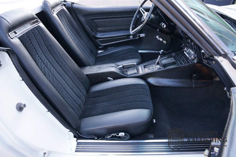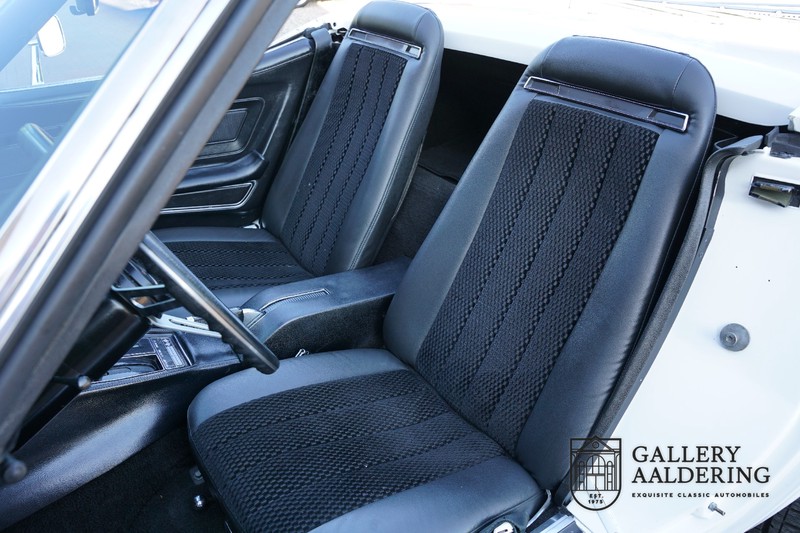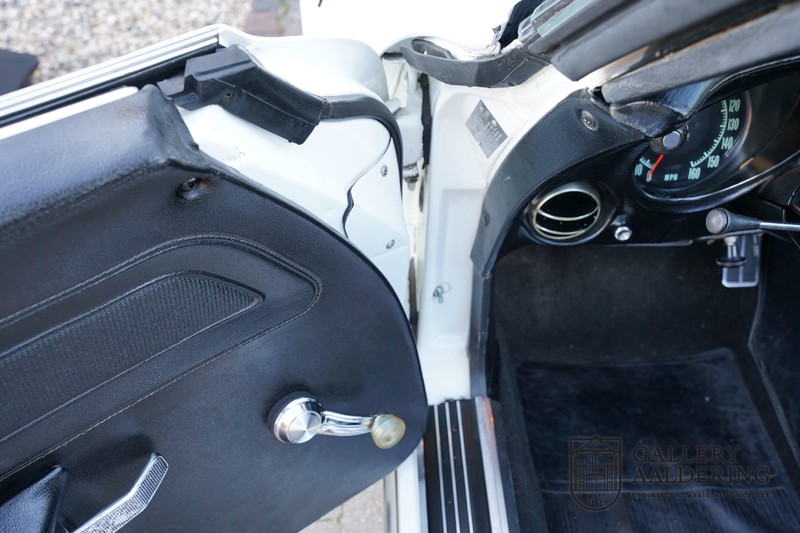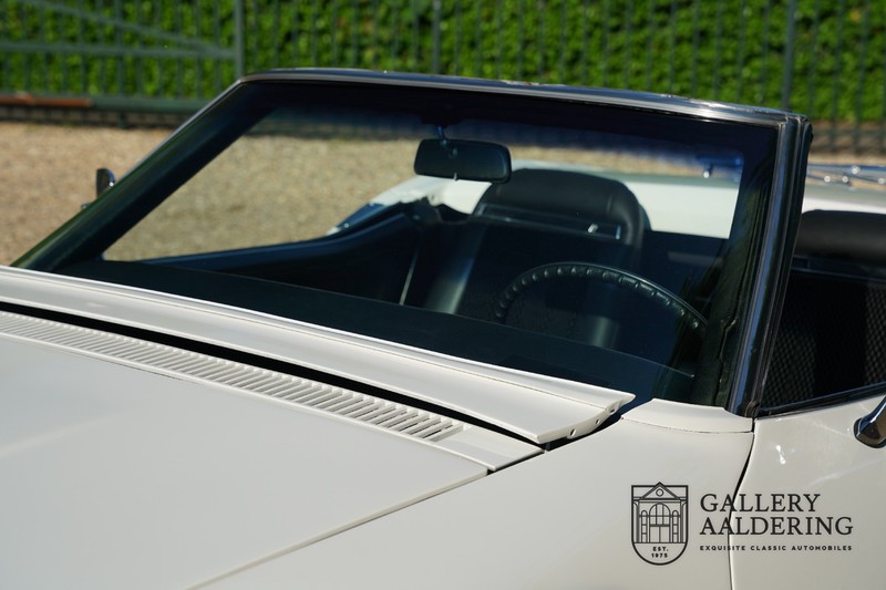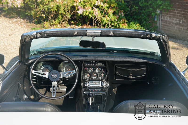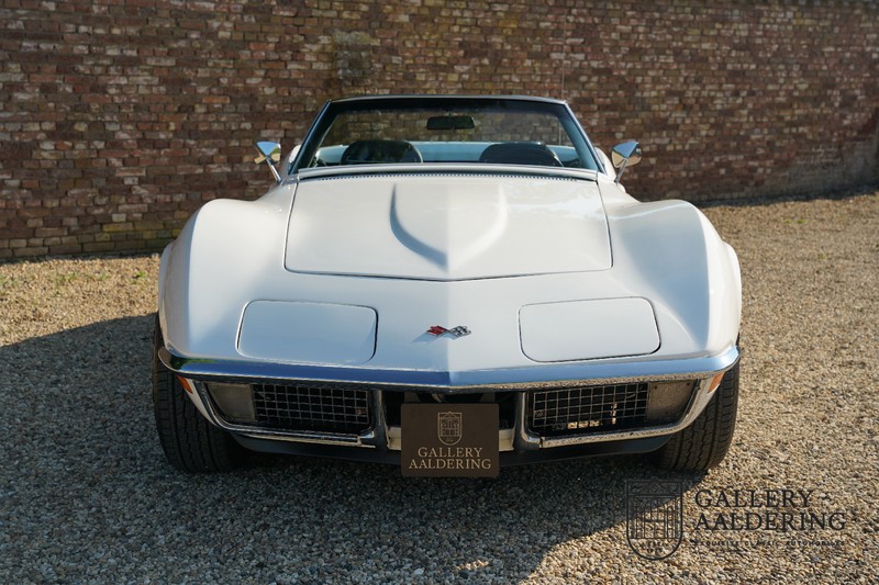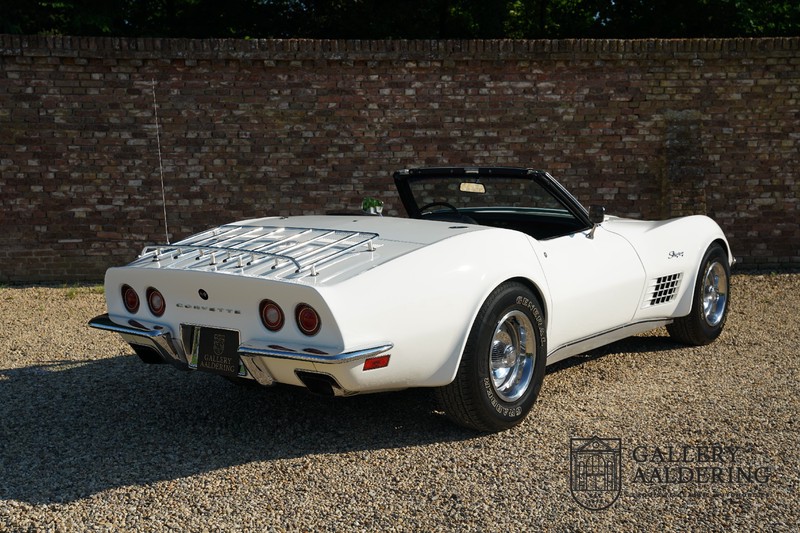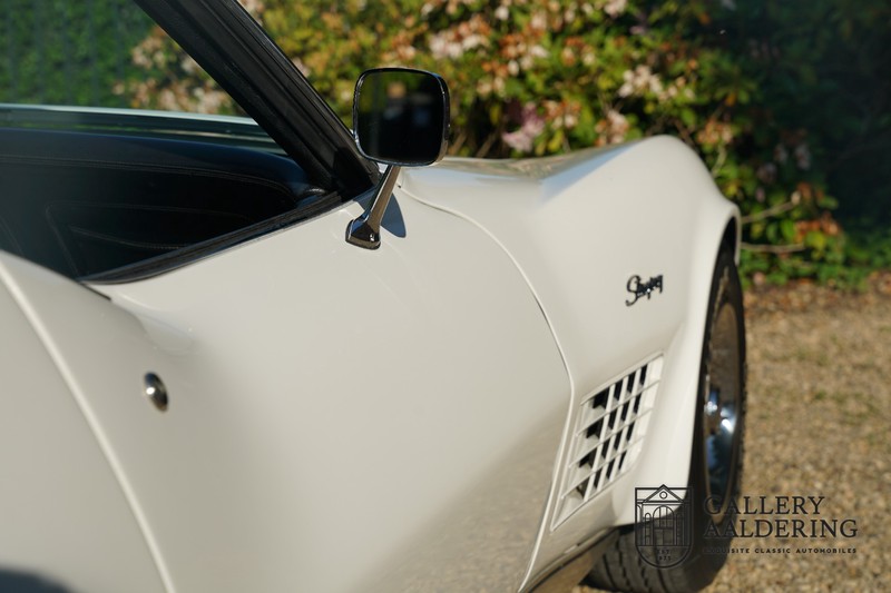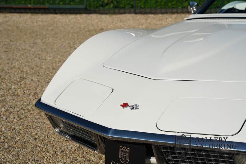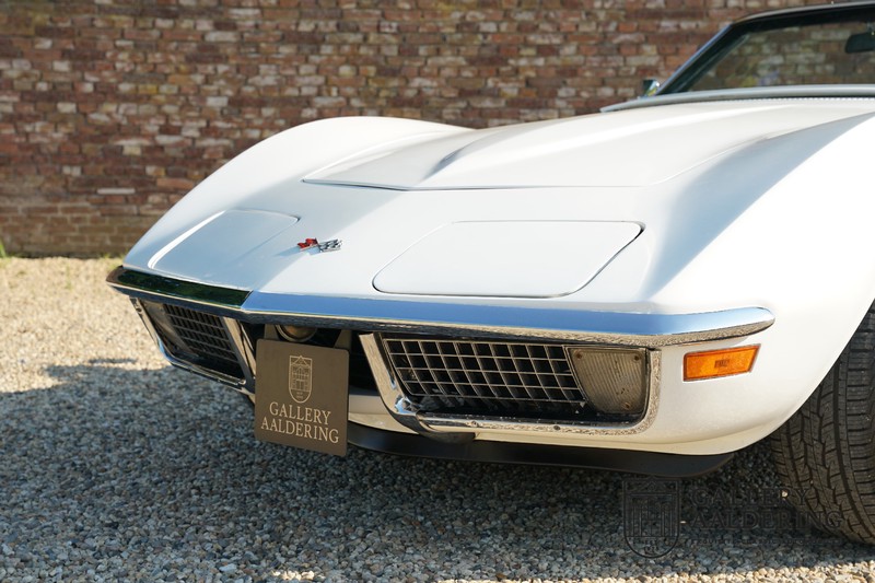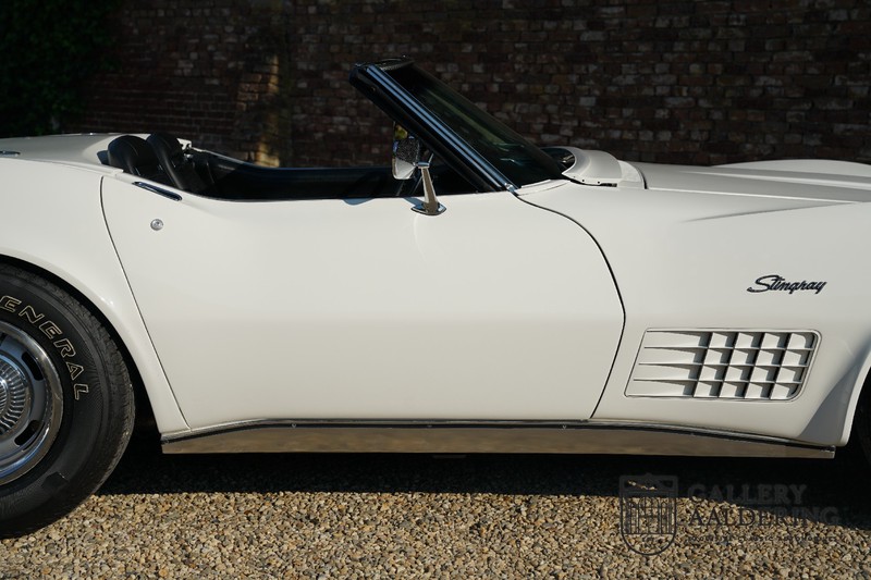 Dieses wunderschöne Chevrolet Corvette C3 Stingray Cabriolet stammt aus dem Jahr 1971. Das Auto befindet sich in einem sehr schönen und originalen Zustand. Die Corvette hat eine gelungene Farbkombination mit einer weißen Aussenfarbe und einem schwarzen Interieur.