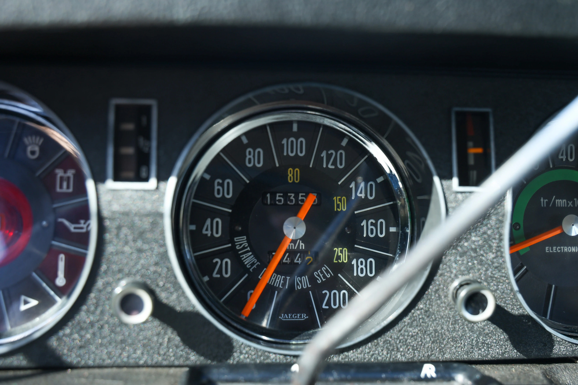 Cette DS23 représente précisément cette dernière phase. Équipée du moteur 2,3 litres et de l’injection électronique Bosch, elle offre un niveau de performance qui permet d’exploiter pleinement le châssis. Souple, stable et parfaitement adaptée aux longues distances, tout en conservant le ressenti de conduite caractéristique de la DS.