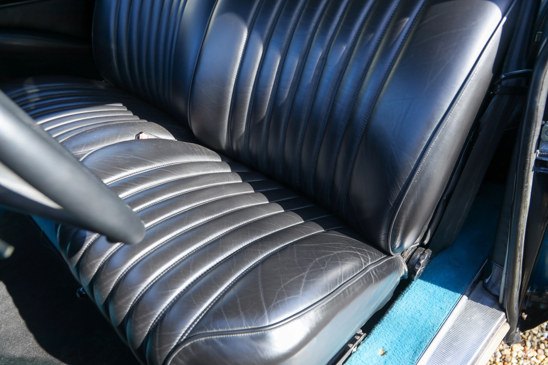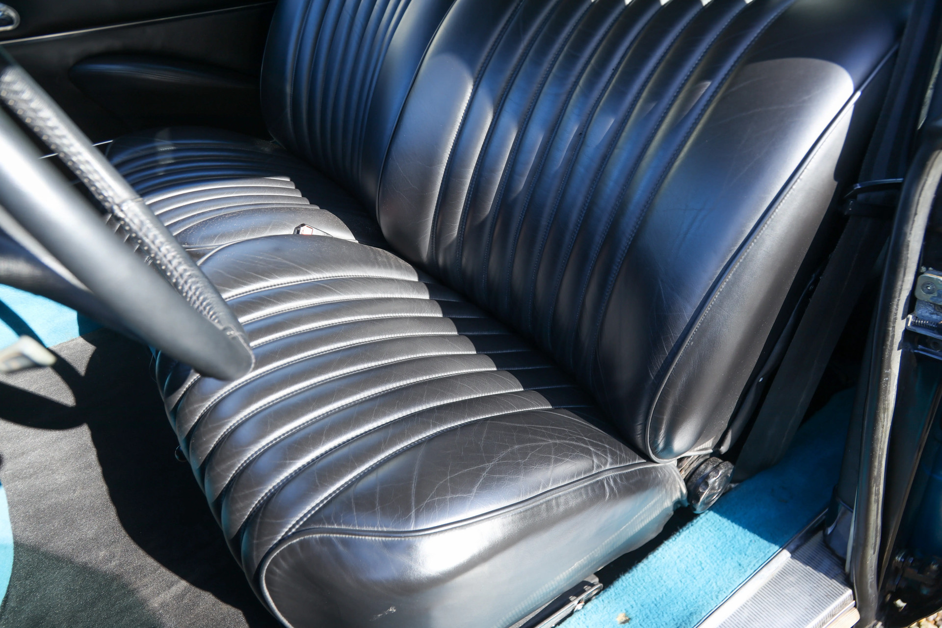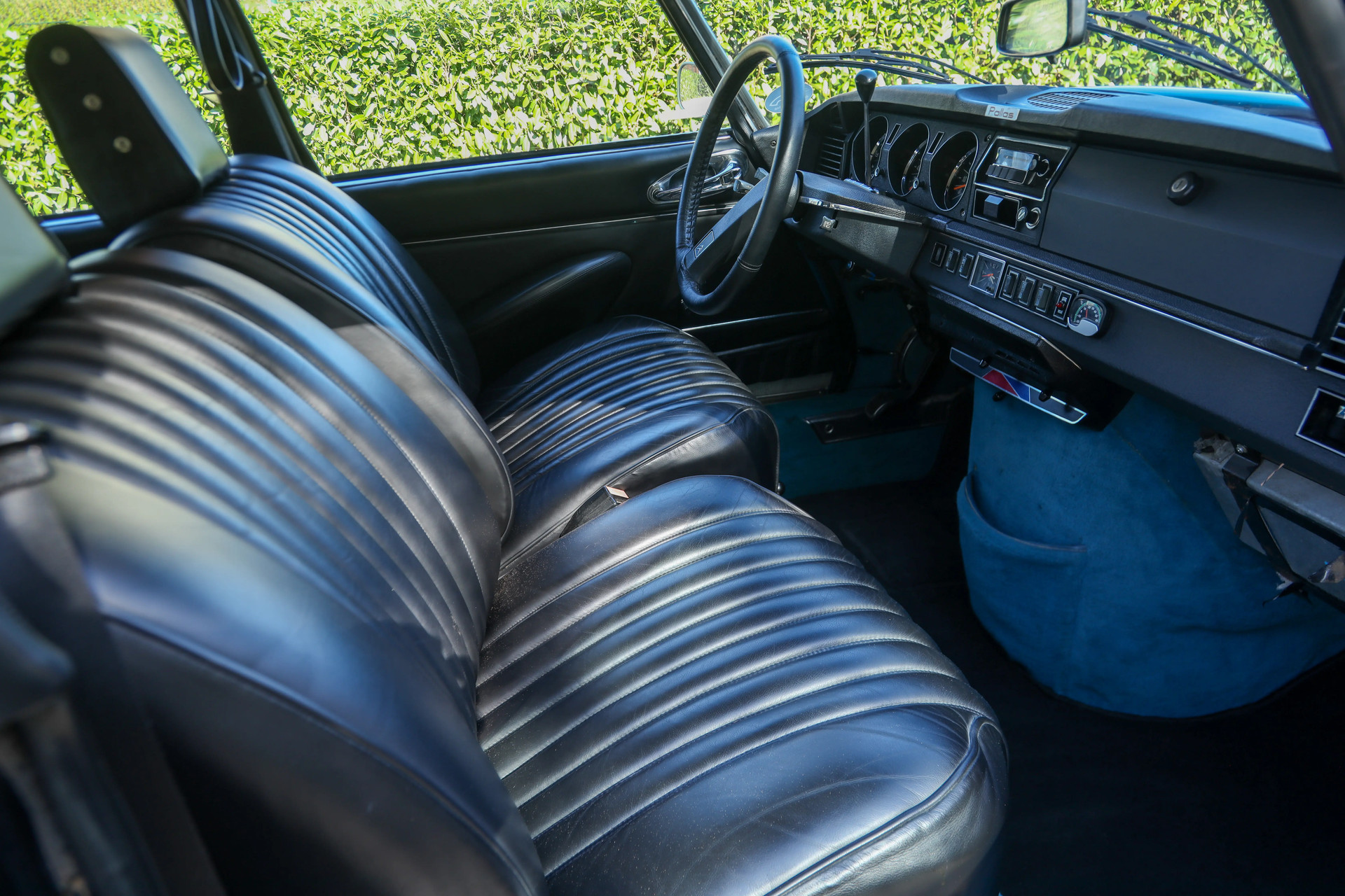 Let’s start with the essentials. This example has recently been reconditioned and serviced, is presented in Bleu Delta with a black leather interior, and comes from a long-term private collection where it was kept as part of a static display. Today, it presents as a neat and well-maintained car, ready to be used and enjoyed.