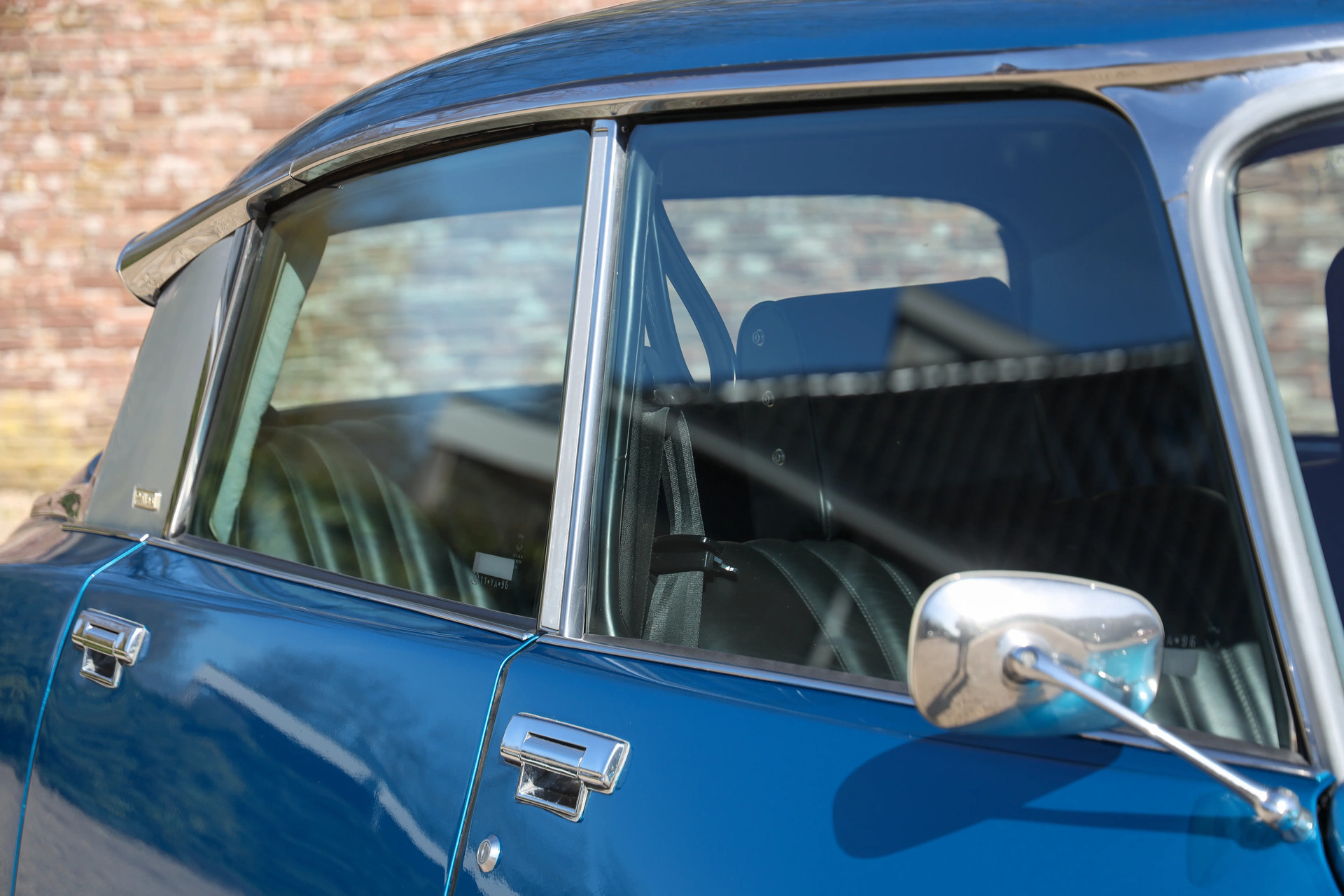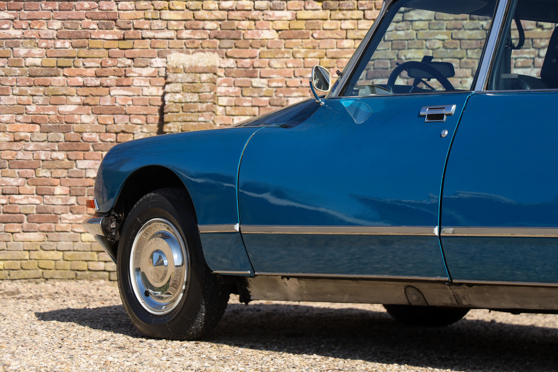 Laten we beginnen met de basis. Dit exemplaar is recent aangepakt en geserviced, uitgevoerd in Bleu Delta met een zwart leren interieur en afkomstig uit een langdurige privécollectie. Vandaag de dag presenteert deze Citroën zich als een nette en goed onderhouden DS, klaar om gebruikt en genoten te worden.