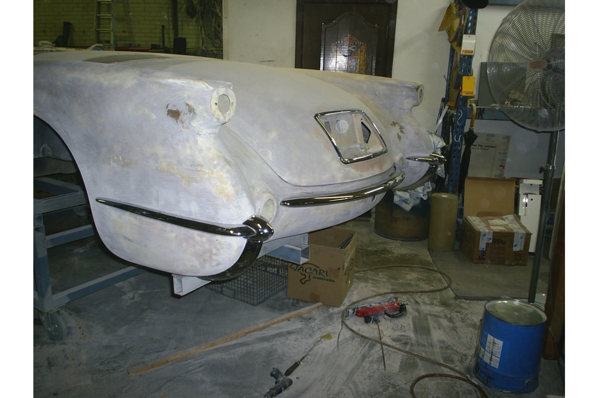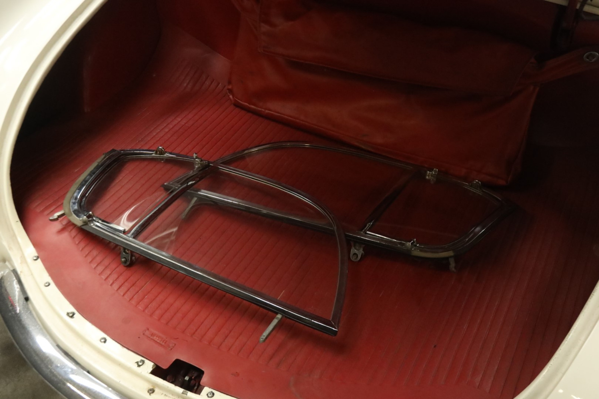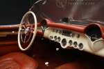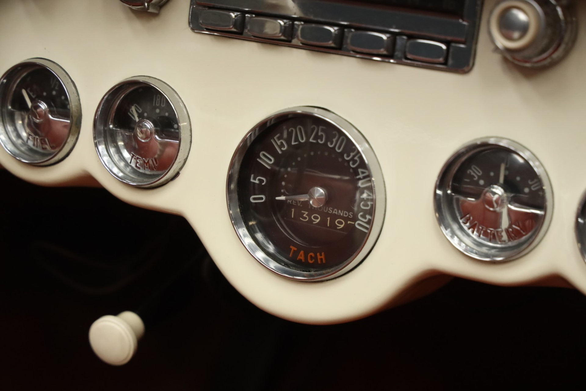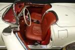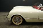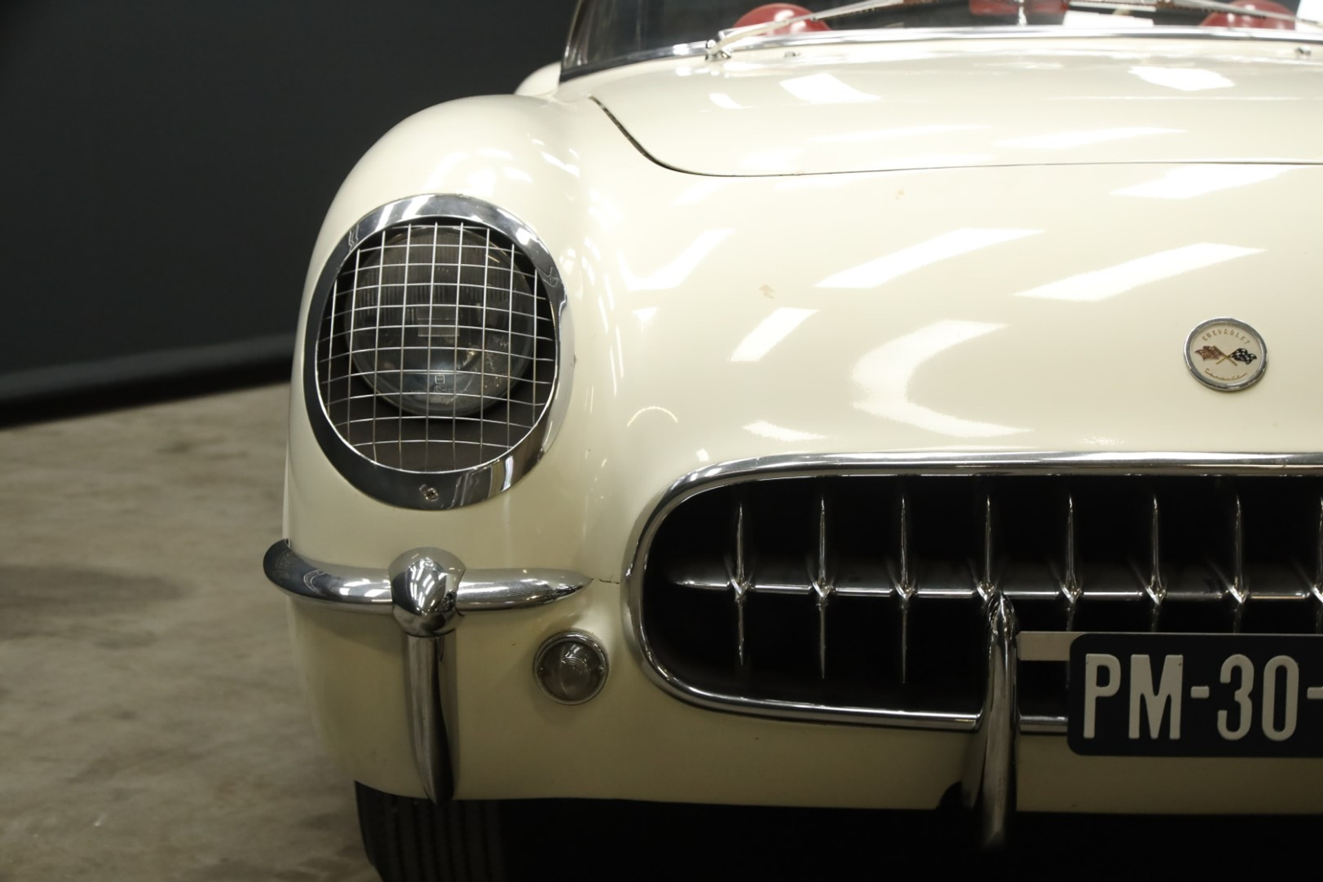 Originally delivered in Nevada, the car underwent a full body-off restoration in the 1990s. It is attractively finished in Polo White with a red interior, a classic colour combination that perfectly highlights the Corvette’s sporting elegance. Although the paintwork can be described as neat, it shows light traces of age and use, adding to its authentic 1950s character.