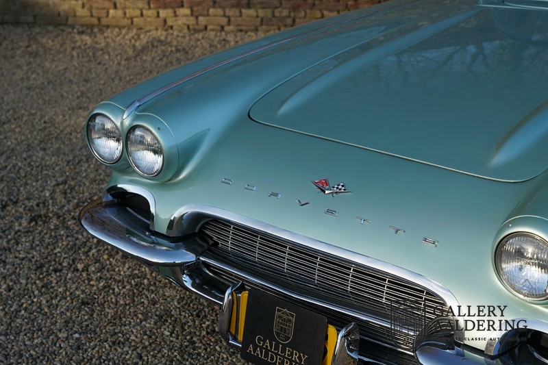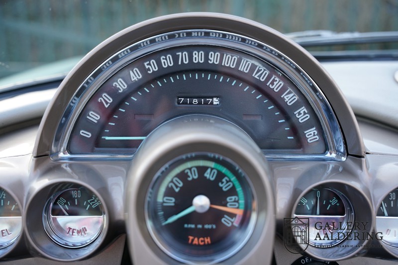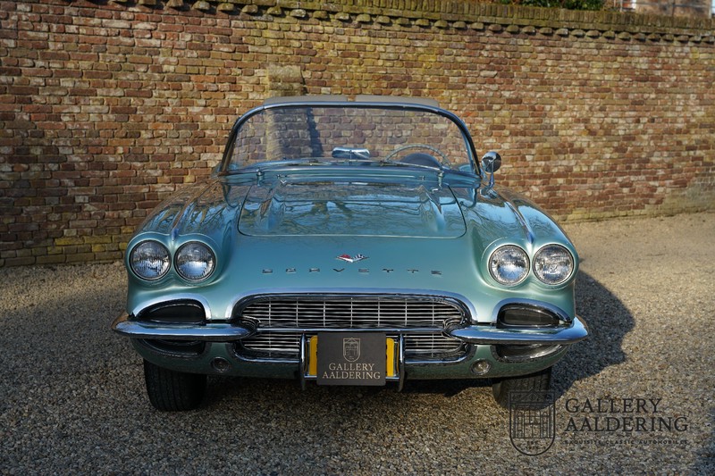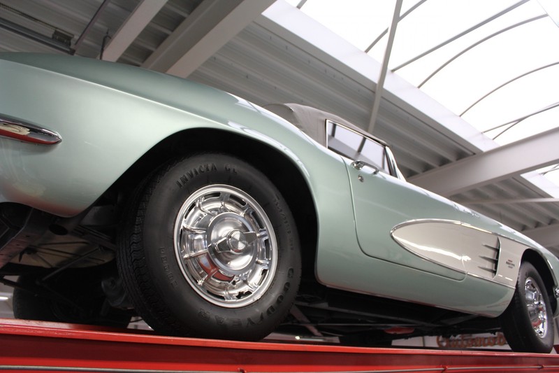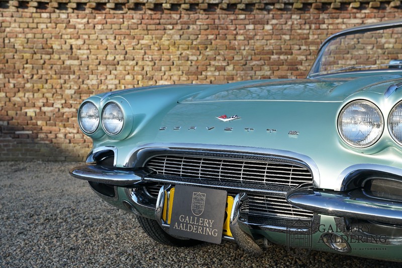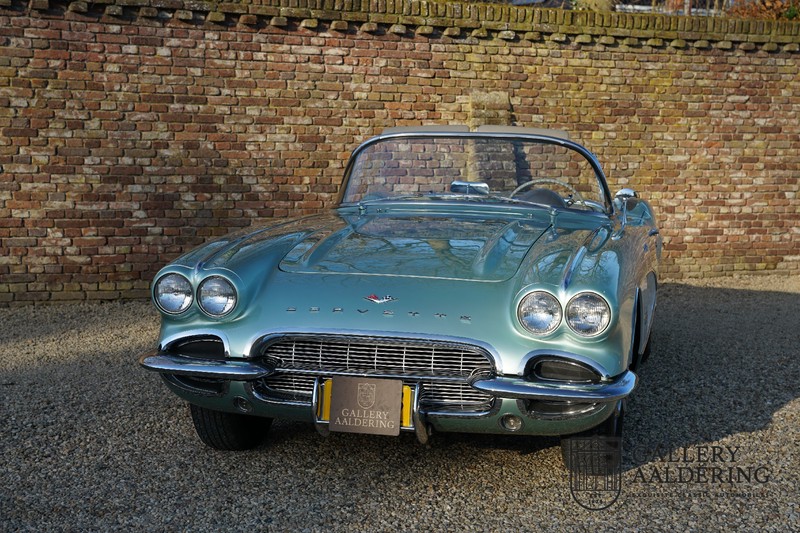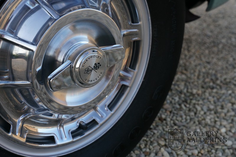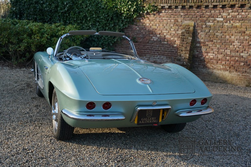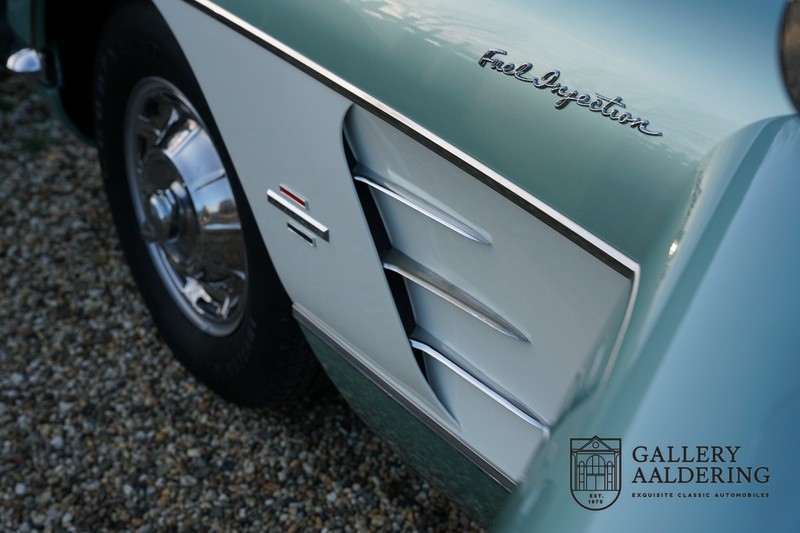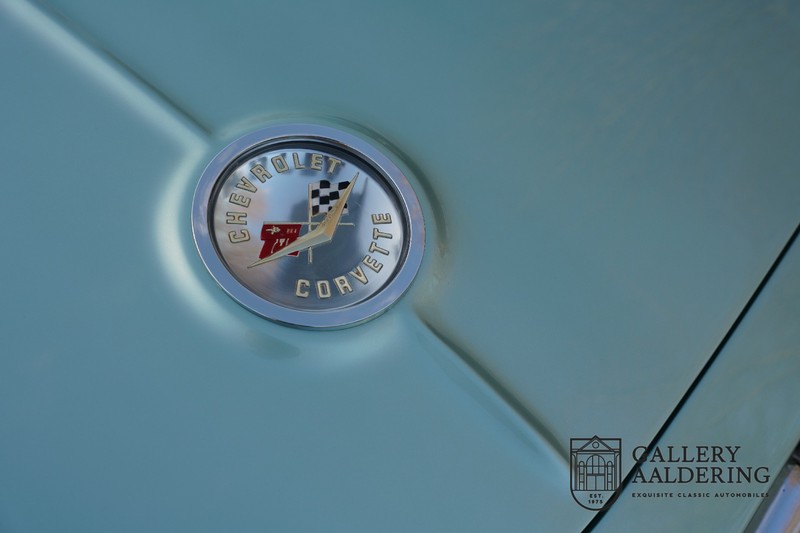We bought the car in Santa Barbara, California in the States. The were a number of things that immediately drew our attention and made sure we added this one to our collection. First of all there is the condition to consider. Good care and the warm Californian climate has preserved this car from the ravages of bad weather. That meant this Corvette never needed to be restored and is in very original condition. That does not mean they scrimped on maintenance. The previous owner spent over$ 26.000 in maintenance with one invoice totalling over $ 15.400. Mechanically the car is in A-1 condition, which becomes immediately obvious once behind the wheel. The brakes work fine and the car holds the road really well. The 283 Ci (4.6 litre) engine has been fitted with a Rochester fuel injector, giving her 315 Ps. This was the top of the range C1 edition, her 315 PS, despite her 60 summers, still making this a seriously fast car. The engine is attached to the rare and very popular manual 4-speed gearbox. Especially the presence of fuel injection is rare. In 1961 Chevrolet produced 10,931 Corvettes of which only 1,462 had the top of the range engine. Other rarities include the heating system and the factory supplied am radio.