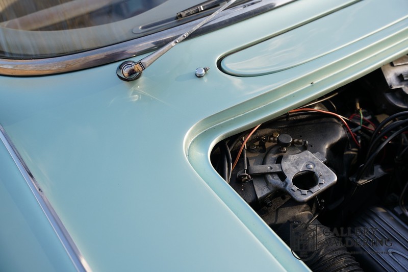 The paint is neat and recently resprayed. The white hood is in good order and shuts neatly. The fully original interior is in good used condition. The seating and carpets have been correctly looked after. Invoices dating back to 1992 and the original owner’s manual have been preserved.