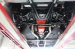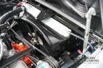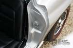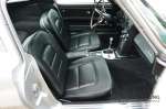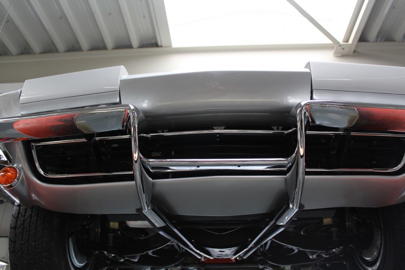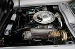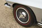 No wonder the bodywork looks great. The brightwork fits perfectly and the fibreglass bodywork is brilliantly aligned. The Silver Pearl finish suits the car’s “space age” image and also happens to be the original finish the car came with. The quality of the paintwork is very good. The paintwork is unblemished and has a lovely deep lustre. The car has the usual Corvette wheels shod in correctly sized good quality tyres. On inspecting the underside of the car we see that the beautifully painted frame is still in fine shape. The exhaust system too ticks all the boxes.