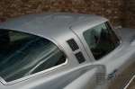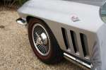 De body van de Corvette ziet er dan ook prachtig uit. De sierlijsten sluiten overal perfect aan en de kunststof carrosserie heeft schitterende passingen. De Silver Pearl lak past niet alleen perfect bij de “space age” uitstraling van de auto, maar is ook de kleur waarmee de auto destijds bij de fabriek is besteld. De lak is destijds zeer goed gespoten. De lak is vrij van gebruikerssporen en heeft een prachtige diepe glans. De auto staat op de gebruikelijke en correcte Corvette wielen die zijn voorzien van goede banden in de correcte maten. Als we aan de onderzijde kijken zien we dat het het frame van de auto nog steeds in prachtige conditie verkeert en tijdens de restauratie vakkundig is gelakt. Ook het uitlaatsysteem verkeert vanzelfsprekend in zeer goede staat.