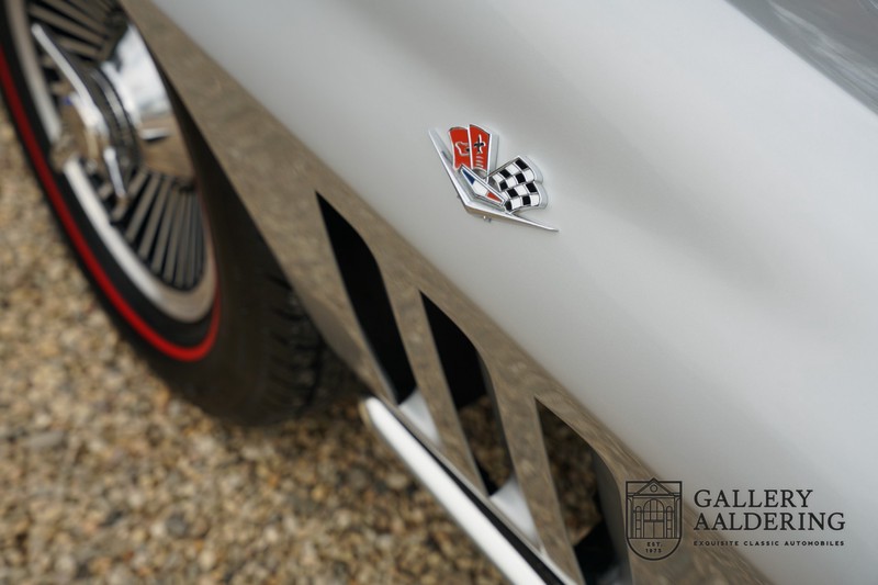 Corvette’s zien we in alle soorten en maten maar een body-off gerestaureerd exemplaar zien we maar zelden. Dit exemplaar is prachtig gerestaureerd in de Verenigde Staten op een wijze zoals we dat maar zelden zien. De auto is letterlijk tot het laatste schroefje uit elkaar geweest en gerestaureerd. Tegelijkertijd werd de techniek volledig gereviseerd. We kunnen dus stellen dat dit exemplaar in een conditie verkeert die zich niet anders laat omschrijven dan beter dan nieuw. Het is een typische werkwijze die we maar zelden zien in de Verenigde Staten. In veel gevallen is het bij een Corvette ook niet direct nodig om een goed eindresultaat te krijgen. Wanneer je als eigenaar voor niets minder dan een perfect resultaat gaat dan ontkom je er niet aan om de auto body-off te restaureren, zoals ook hier is gebeurd. Dat de auto door de eerste eigenaar nieuw is besteld met een handgeschakelde transmissie is de spreekwoordelijke kers op de taart.