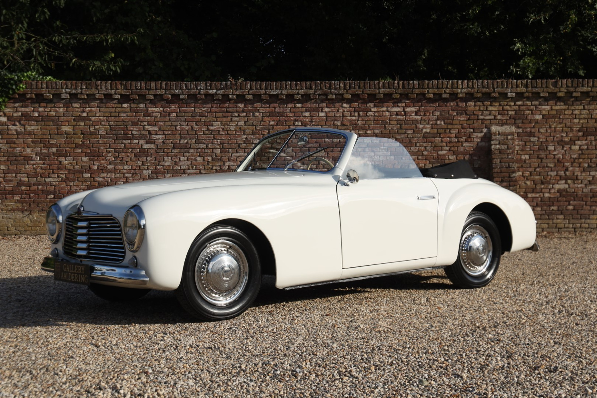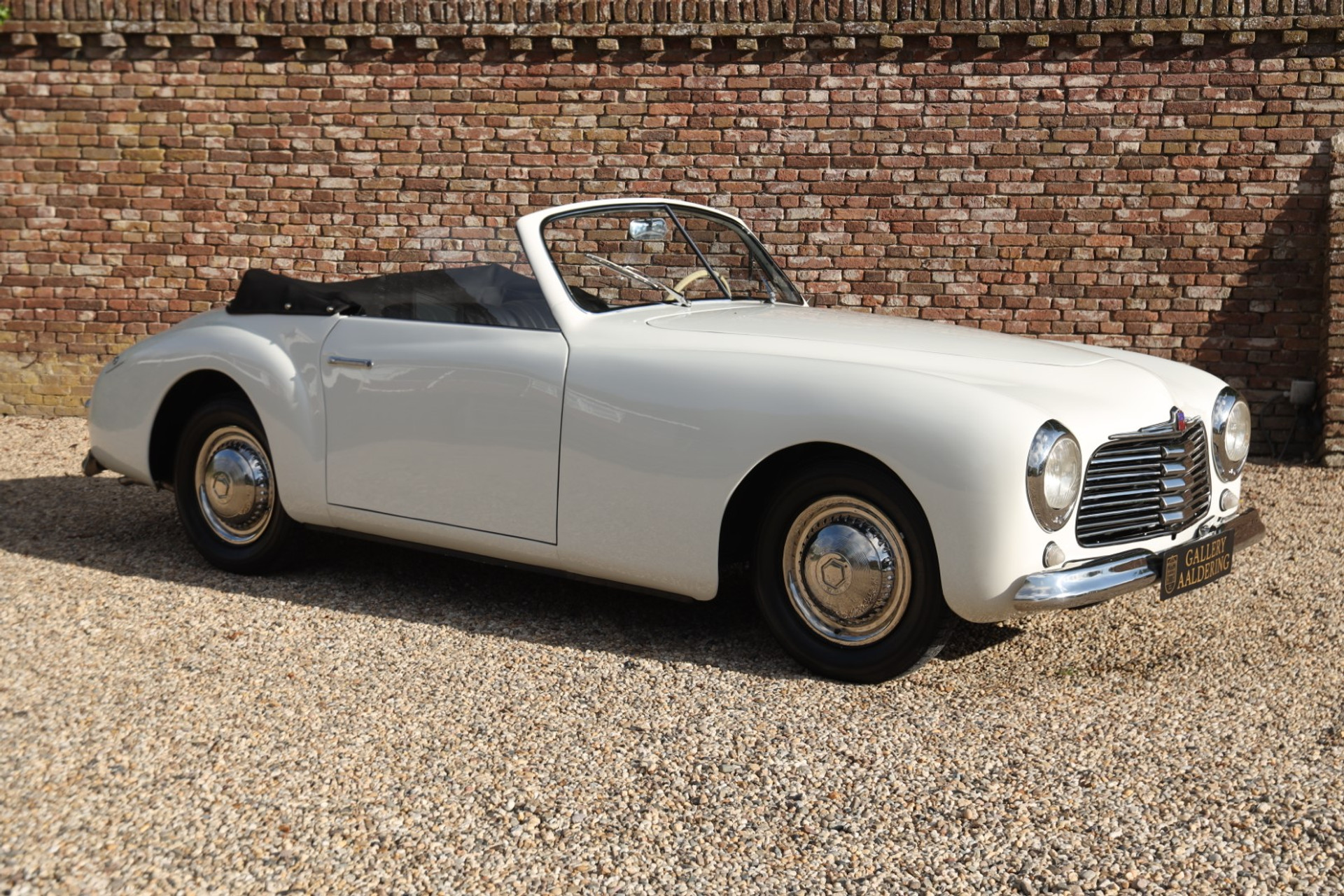 Das Simca 8 Sport Cabriolet von 1950 ist ein außergewöhnlich seltenes und edles Beispiel französischer Automobilbaukunst kombiniert mit italienischem Design. Simca wurde 1934 als französischer Lizenznehmer von Fiat gegründet und erwarb sich schnell einen Ruf für elegante und zuverlässige Autos. Der 8 Sport wurde als exklusives Cabriolet entwickelt, mit seinen eleganten Linien von Pinin Farina und seiner Aluminiumkarosserie von Facel Metallon. Das Ergebnis dieser einzigartigen Zusammenarbeit zwischen Simca, Facel und Stabilimenti Farina verleiht dem Auto einen herausragenden Platz in der Automobilgeschichte der Nachkriegszeit.