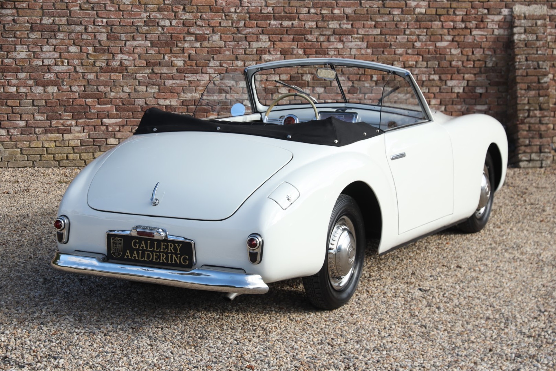 De Simca 8 Sport Cabriolet uit 1950 is een uitzonderlijk zeldzaam en verfijnd voorbeeld van Franse automobielkunst gecombineerd met Italiaans design. Simca, opgericht in 1934 als Franse licentiehouder van Fiat, stond bekend om betrouwbare en elegante wagens. De 8 Sport werd ontwikkeld als exclusieve cabriolet en kreeg zijn verfijnde lijnen van Pinin Farina, terwijl de aluminium carrosserie werd vervaardigd door Facel Metallon. Dit model is het resultaat van een unieke samenwerking tussen Simca, Facel en Stabilimenti Farina, wat de auto een bijzondere positie geeft in de naoorlogse autogeschiedenis.