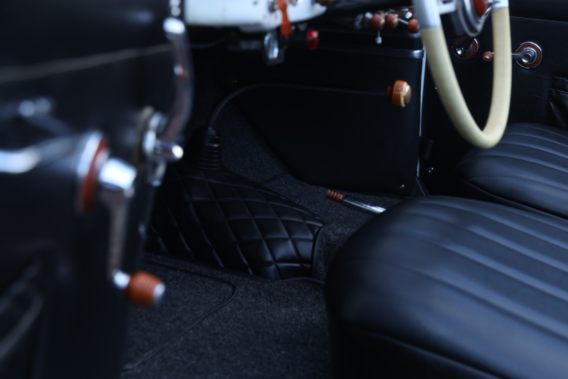 Dit specifieke exemplaar werd in 1993 ontdekt in een schuur en volledig gerestaureerd en opnieuw opgebouwd, inclusief chassis, carrosserie en mechanische onderdelen. Het tijdloze kleurenschema en de aluminium constructie geven de auto een elegante en onderscheidende uitstraling, die direct de aandacht trekt, zowel op de weg als in een verzameling.