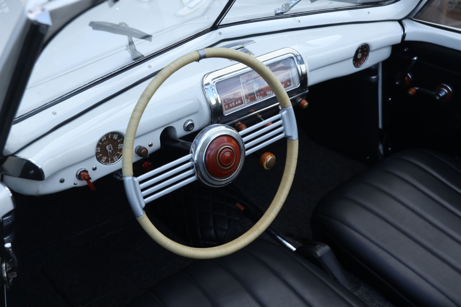 Dieses Simca 8 Sport Cabriolet ist nicht nur ein seltenes und exklusives Modell, sondern auch ein greifbares Beispiel der automobilen Zusammenarbeit zwischen Frankreich und Italien nach dem Krieg. Es bietet Sammlern die einmalige Gelegenheit, ein ikonisches Cabriolet zu erwerben, das Stil, Eleganz und historische Bedeutung in einem außergewöhnlichen Paket vereint.