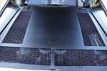 Der Innenraum ist in einem bemerkenswert gepflegten Zustand, was bei einem DeLorean nicht ganz selbstverständlich ist. Die schwarzen Sitzbezüge sind in einem sehr gepflegten Zustand und waren auch 1981 die einzige verfügbare Farbe, später folgten hellgraue Bezüge. Auch der Rest des Innenraums sieht ordentlich aus. Die flache, breite Instrumententafel ist voll funktionsfähig, das gilt auch für die Bedienelemente und elektrische Elemente wie die Fensterheber.