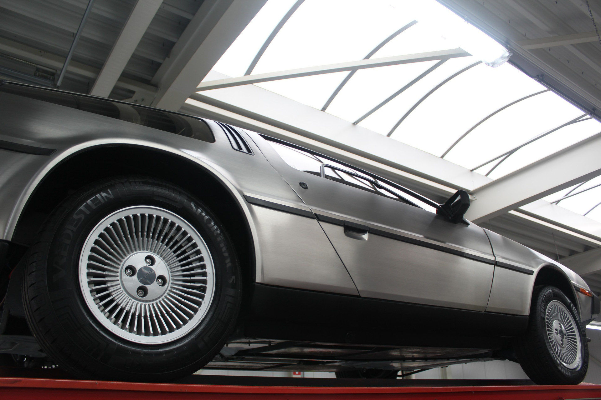 De auto ziet er prachtig uit. De carrosserie werd ontworpen door Giorgetto Giugiaro en is een prachtig stuk design. De wijze waarop de auto is gebouwd is een al even groot meesterwerk de basis vormt een Y-vormig chassis dat was geïnspireerd op de Lotus Esprit. Daaromheen zit een fibreglass constructie waarop de rvs-carrosserie werd gemonteerd. Een prachtige manier om een auto te bouwen. Het geborstelde aluminium exterieur geeft de DeLorean een prachtig en futuristisch uiterlijk en is bij deze DMC-12 zeer strak.