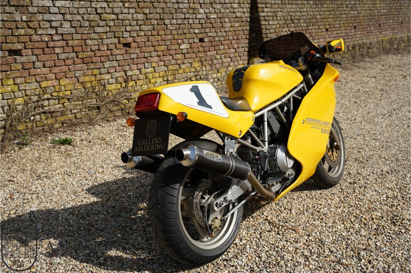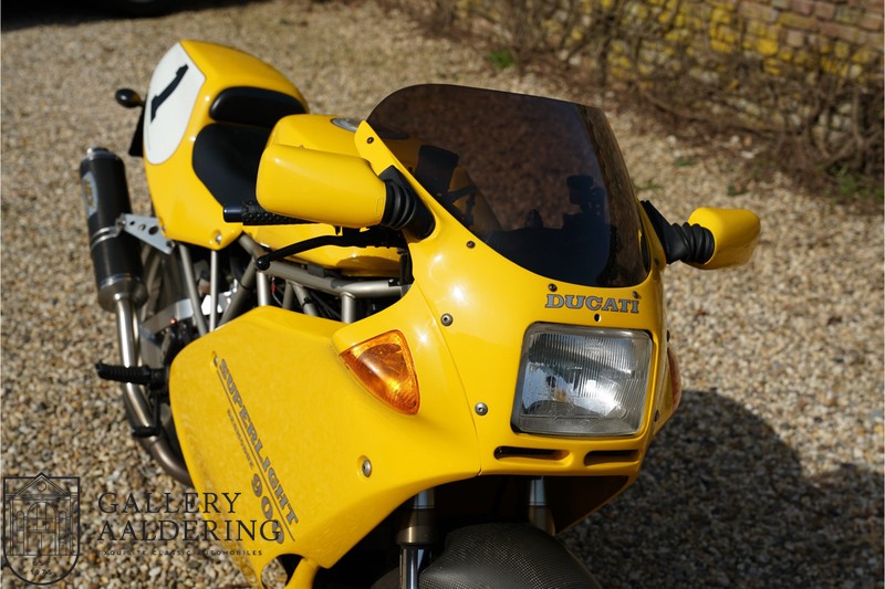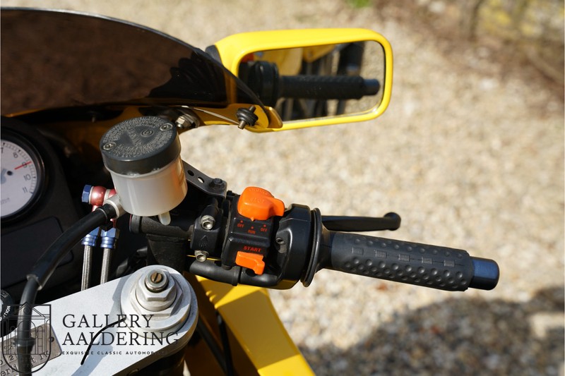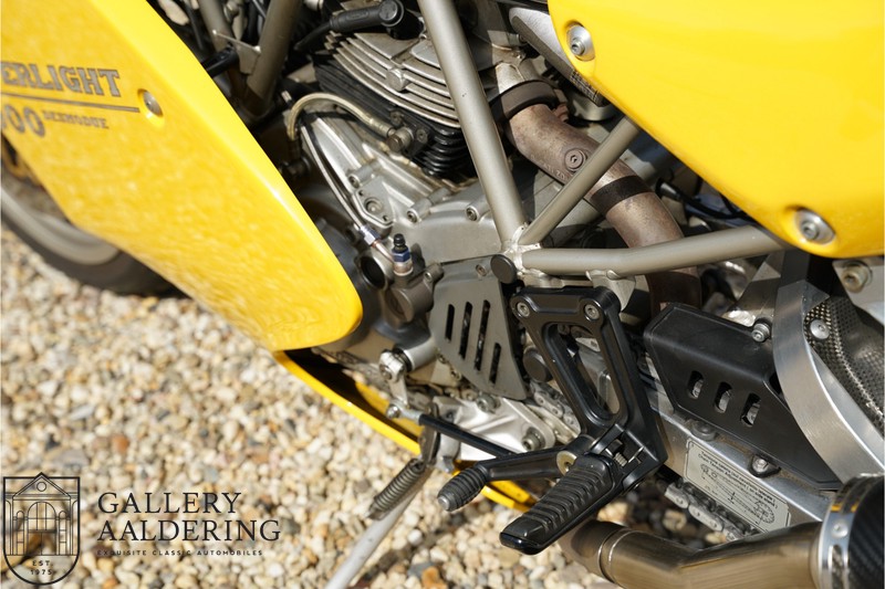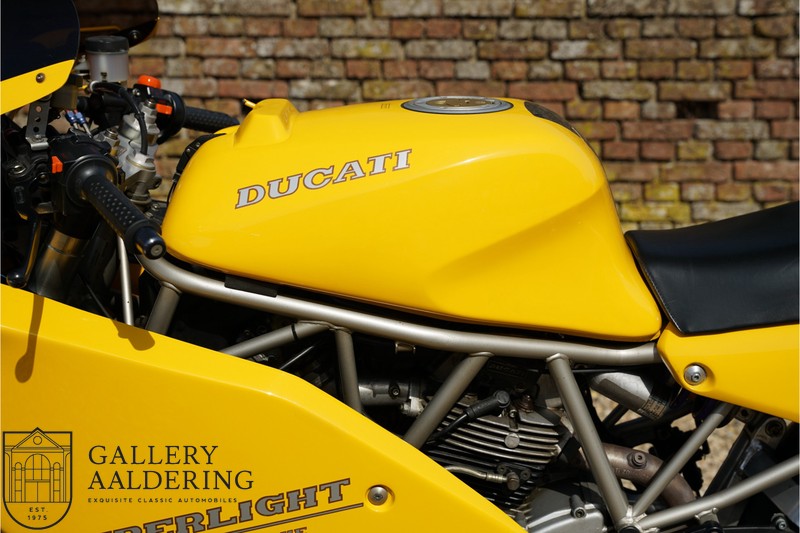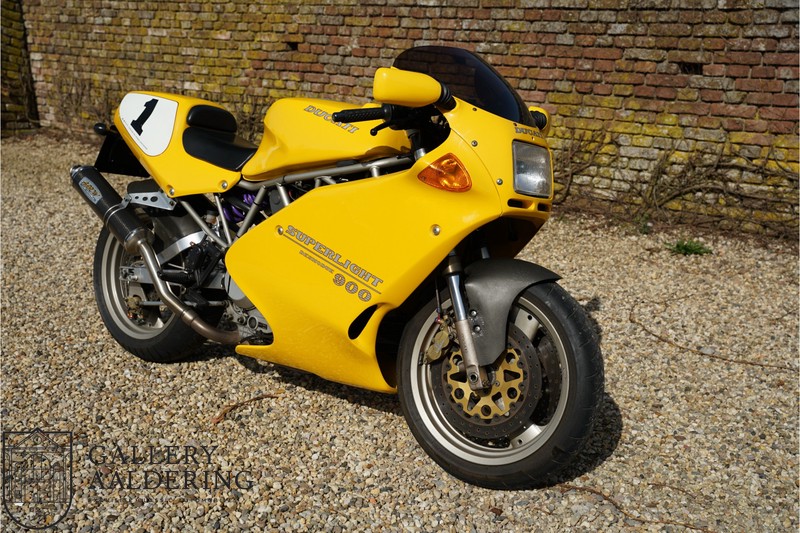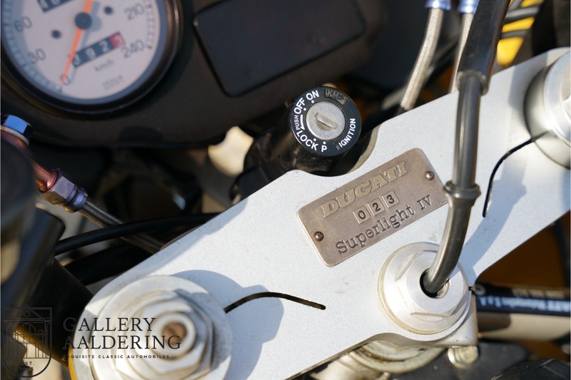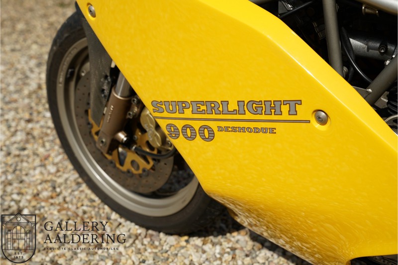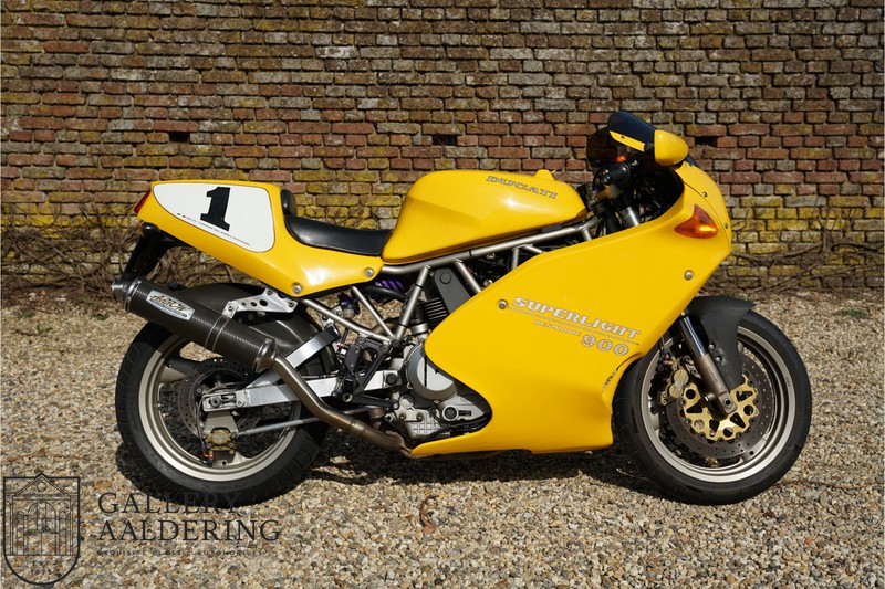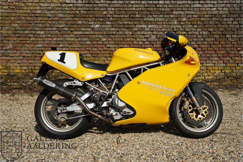 We have a wonderful 1995 Ducati 900 Superlight. The bike has run 48,162 km and belonged to an enthusiast. The bike has been very well maintained, it looks and is mechanically in top shape. At its heart is a 900 cc 90 degrees V-Twin developing 78 Ps at 7,000 revs delivered through a dry clutch six-speed. The characteristic Ducati sound in this case is enhanced by an Arrow racing exhaust system. Furthermore the bike has white-face Veglia gauges, carbon mudguards and Brembo brakes. This is a wonderfully presented Ducati 900 Superlight. Gallery Aaldering is Europe’s leading Classic Cars specialist since 1975! Always 400 Classic and Sportscars in stock, please visit www.gallery-aaldering.com for the current stock list (all offered cars are available in our showroom) and further information. We are located near the German border, 95 km from Düsseldorf and 90 km from Amsterdam. So easy traveling by plane, train, taxi and car. Transport and worldwide shipping can be arranged. No duties/import costs within Europe. We buy, sell and provide consignment sales (selling on behalf of the owner). We can arrange/provide registration/papers for our German (H-Kennzeichen, TÜV, Fahrzeugbrief, Wertgutachten usw.) and Benelux customers. Gallery Aaldering, Arnhemsestraat 47, 6971 AP Brummen, The Netherlands. Tel: 0031-575-564055. Quality, experience and transparency is what sets us apart. We look forward to welcoming you in our showroom