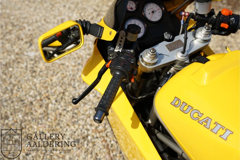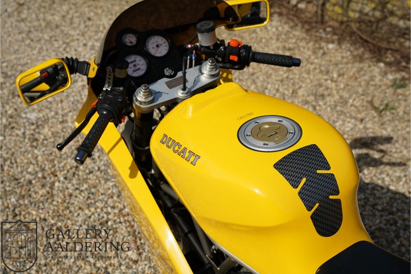 We have a wonderful 1995 Ducati 900 Superlight. The bike has run 48,162 km and belonged to an enthusiast. The bike has been very well maintained, it looks and is mechanically in top shape. At its heart is a 900 cc 90 degrees V-Twin developing 78 Ps at 7,000 revs delivered through a dry clutch six-speed. The characteristic Ducati sound in this case is enhanced by an Arrow racing exhaust system. Furthermore the bike has white-face Veglia gauges, carbon mudguards and Brembo brakes. This is a wonderfully presented Ducati 900 Superlight. Die Gallery Aaldering in den Niederlanden existiert seit 1975 und ist Marktführer in Europa im Bereich von klassischen Fahzreugen. Es sind immer 400 klassische Fahzreuge und Sportwagen auf Vorrat. Bitte besuchen Sie unsere Website www.gallery-aaldering.com für den aktuellen Vorrat und weitere Informationen. Alle gezeigte Fahrzeuge sind zu besichtingen in unseren Ausstellungsräumen. Wir haben unseren Sitz unweit der deutschen Grenze, 95 Km Entfernung von Düsseldorf und 90 Km Entfernung von Amsterdam, gut erreichbar mit dem Zug, Auto, Taxi und Flugzeug. Transport und Versand weltweit kann versorgt werden, innerhalb von Europa fallen keine Importsteuern oder Zollkosten an. Unsere Kerntätigkeiten sind Ankauf, Verkauf und Konsignationverkauf. (im Auftrag vom Kunde) Wir versorgen alle Zulassungsunterlagen (H-Kennzeichen, Fahrzeugbrief, Wertgutachten usw.) für unsere deutsche- und Beneluxkunden. Bei uns können Sie auch leasen oder finanzieren! Unser Leasingpartner bietet maßgeschneiderte Lösungen für private und gewerbliche Kunden. Gallery Aaldering, Arnhemsestraat 47, 6971 AP Brummen in den Niederlanden. T. 0031-575-564055 Qualität, Erfahrung und Transparenz sind unsere besondere Merkmale! Wir freuen und auf Ihren Besuch.