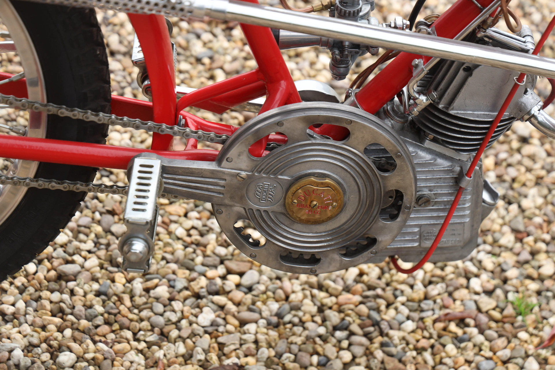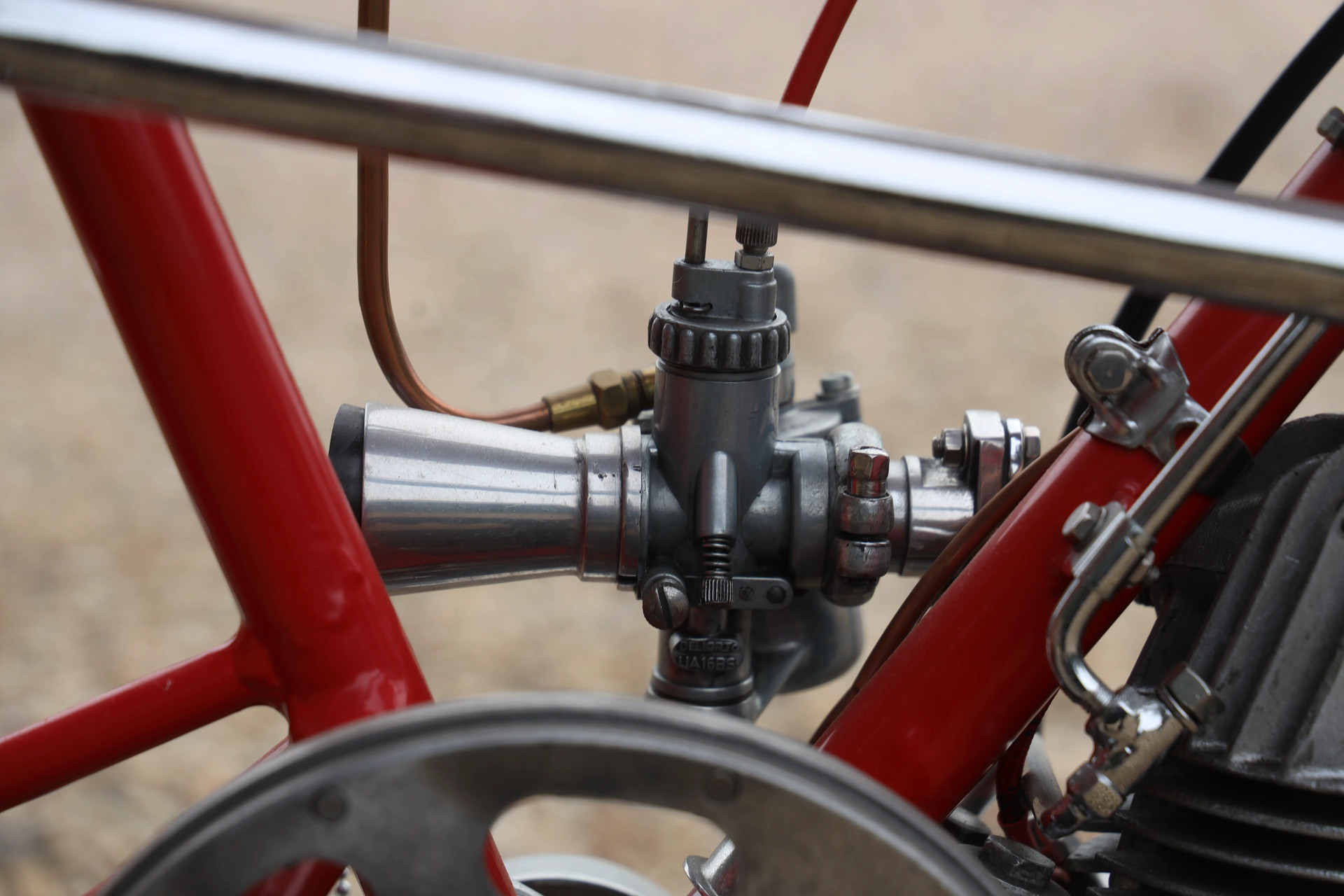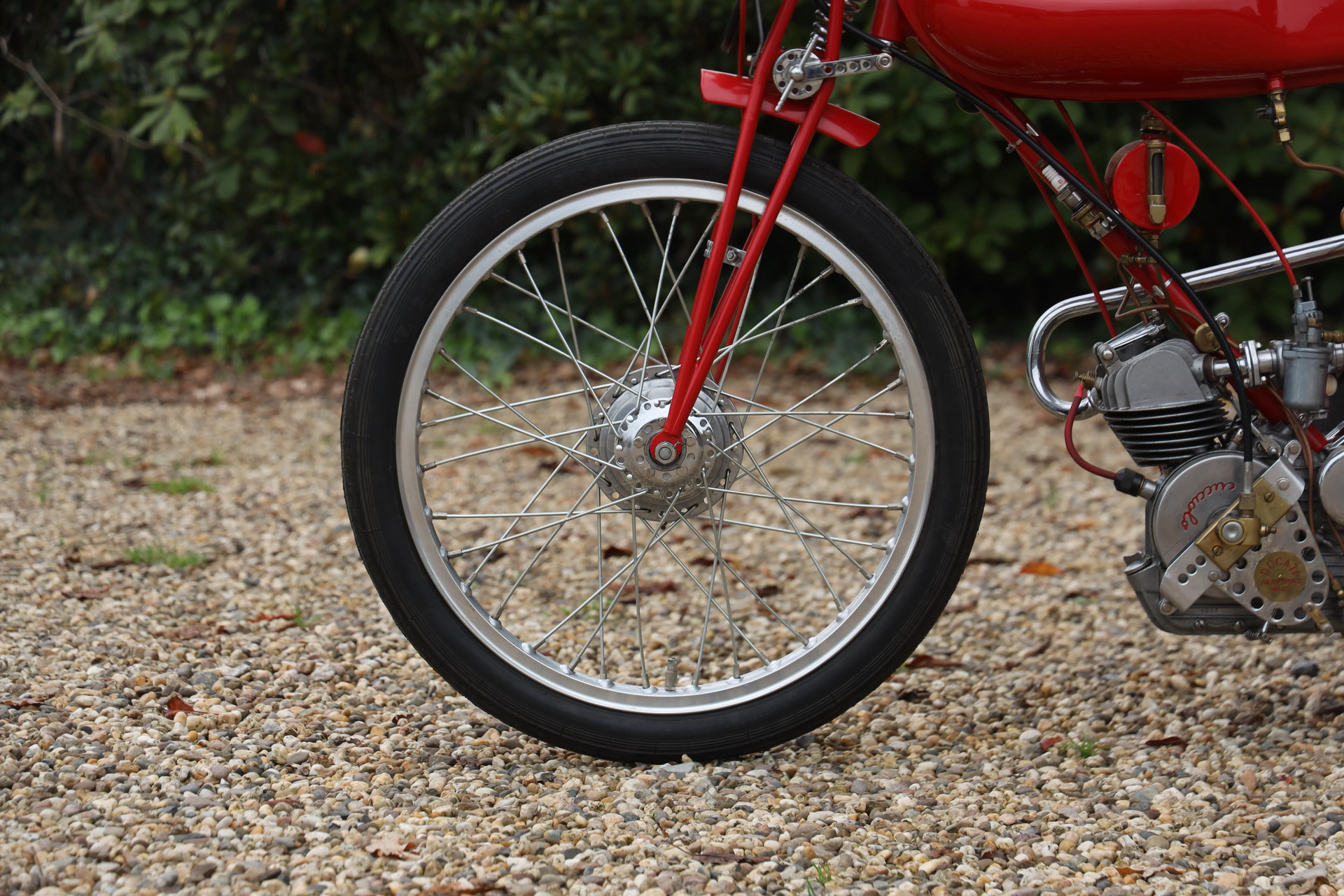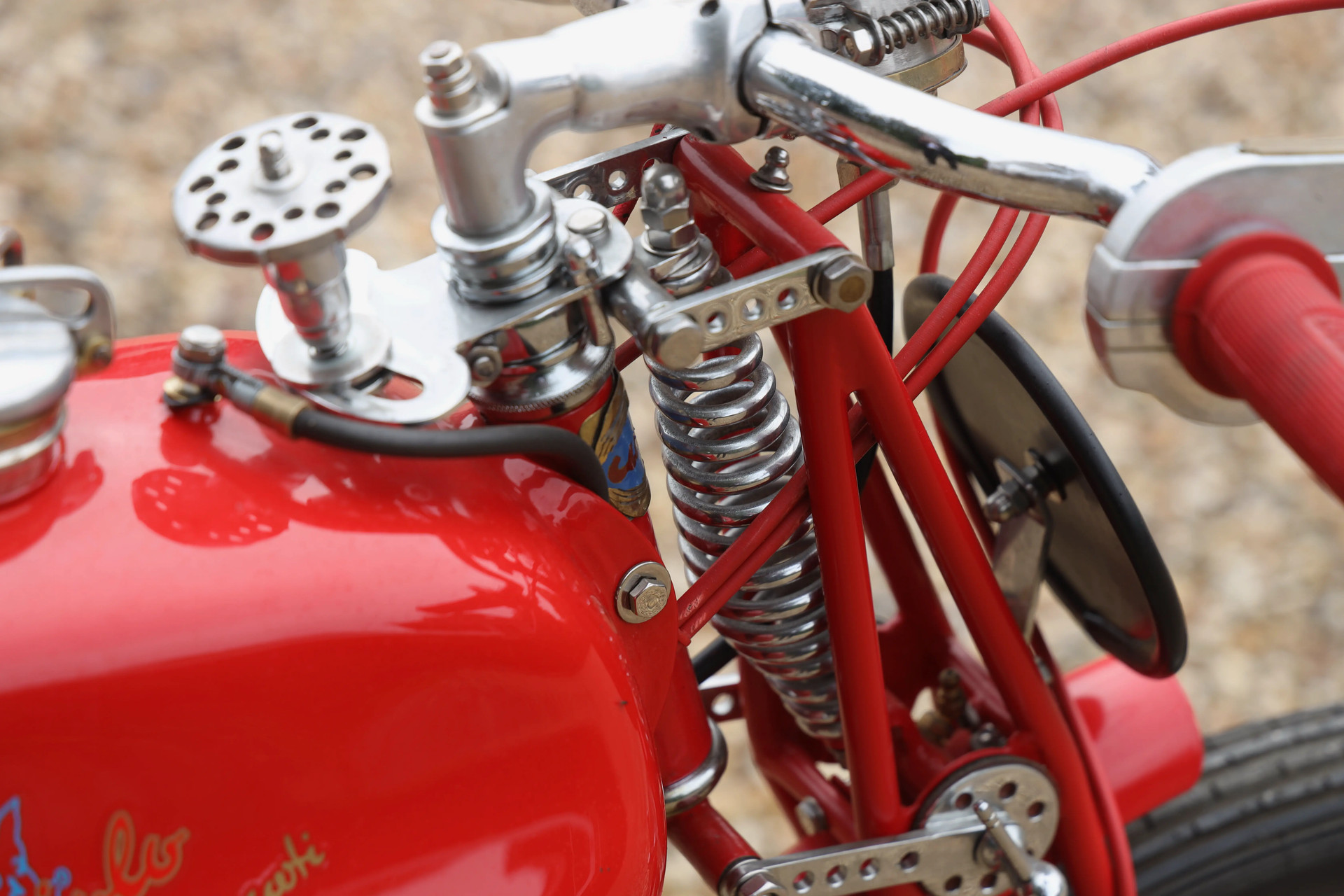 The Ducati Cucciolo T2 “Corsa” you see here is among the finest examples of the T2 series. With an early 201-series engine number, it represents a rare transitional model between the basic bicycle-motor hybrids and Ducati’s first true motorcycles.