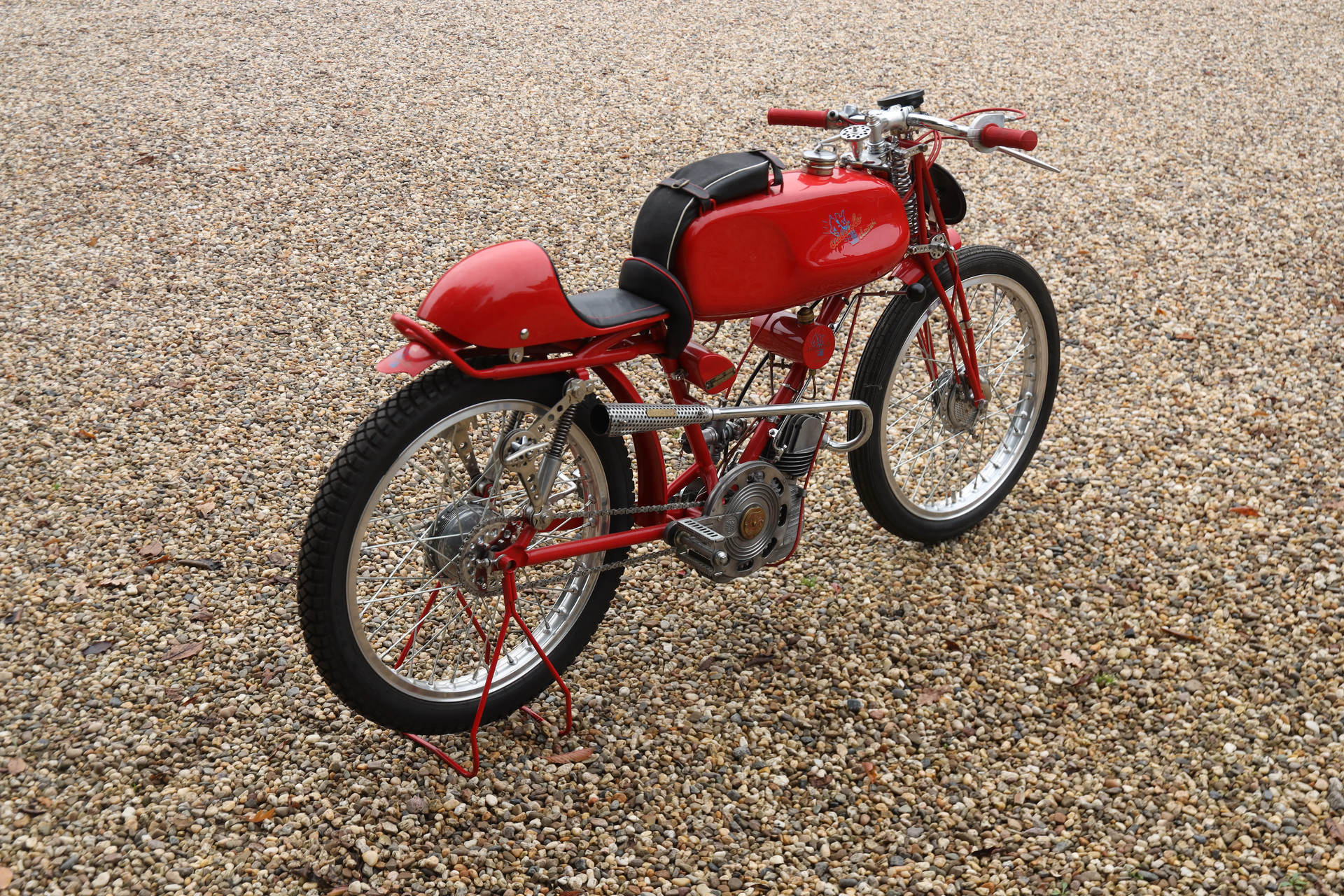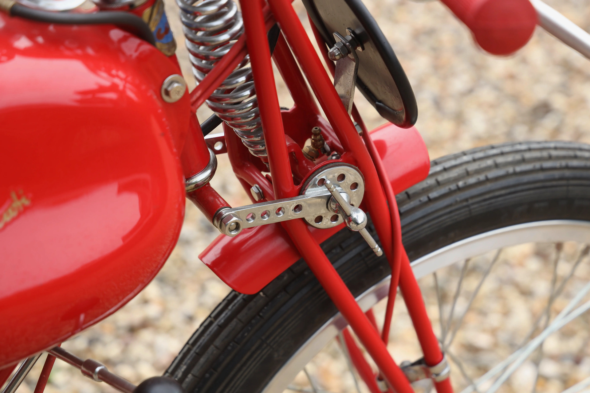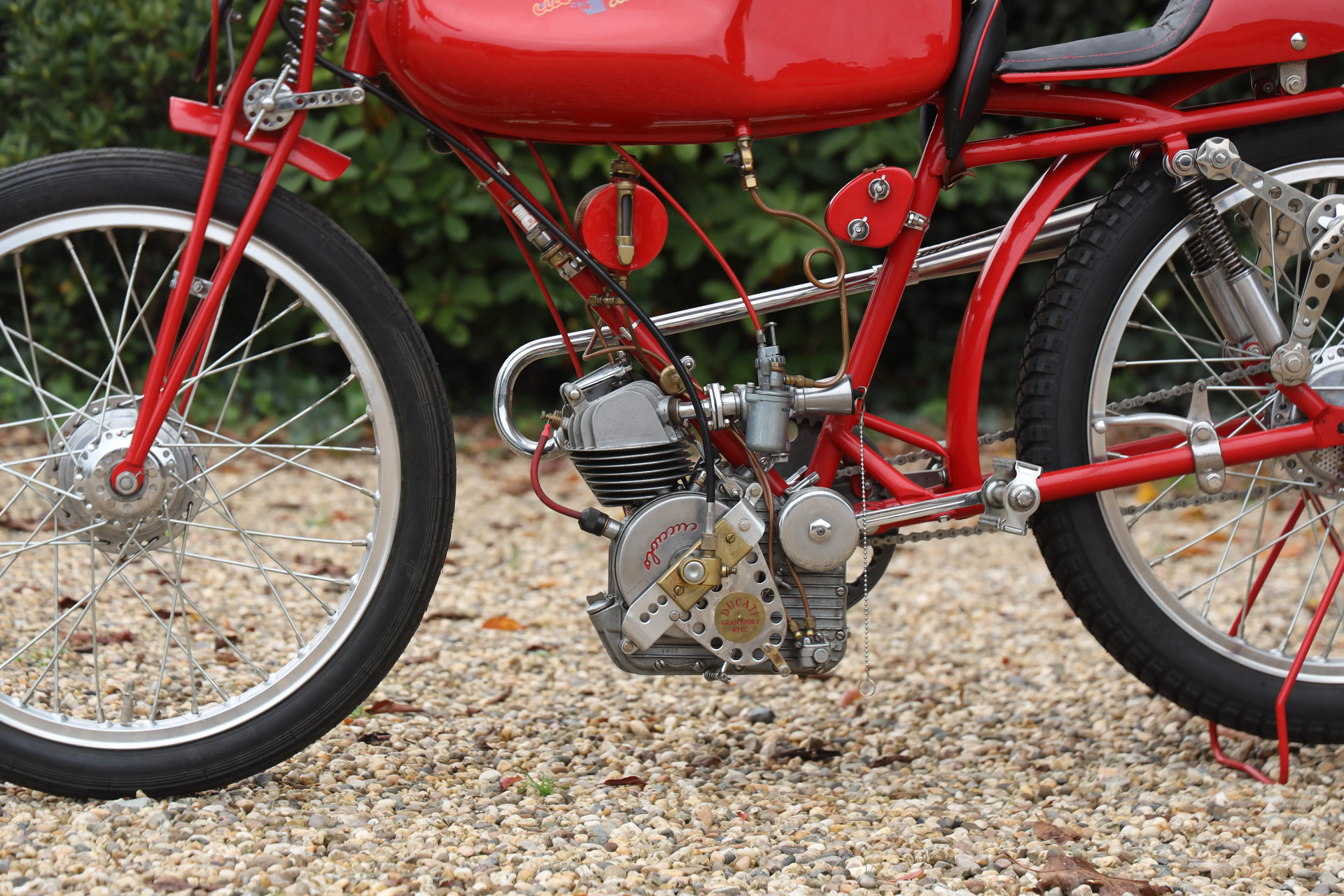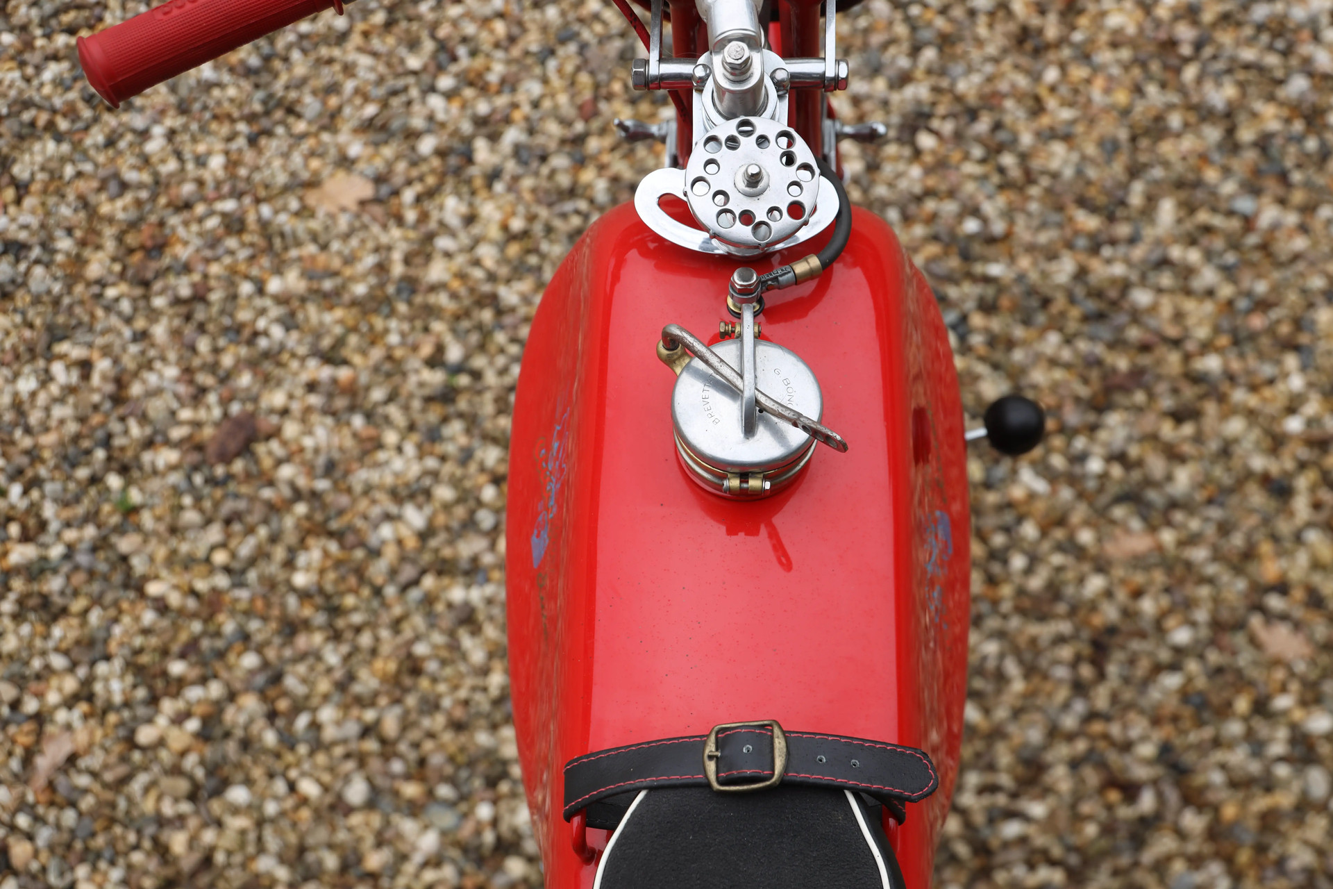 The Ducati Cucciolo T2 “Corsa” you see here is among the finest examples of the T2 series. With an early 201-series engine number, it represents a rare transitional model between the basic bicycle-motor hybrids and Ducati’s first true motorcycles.