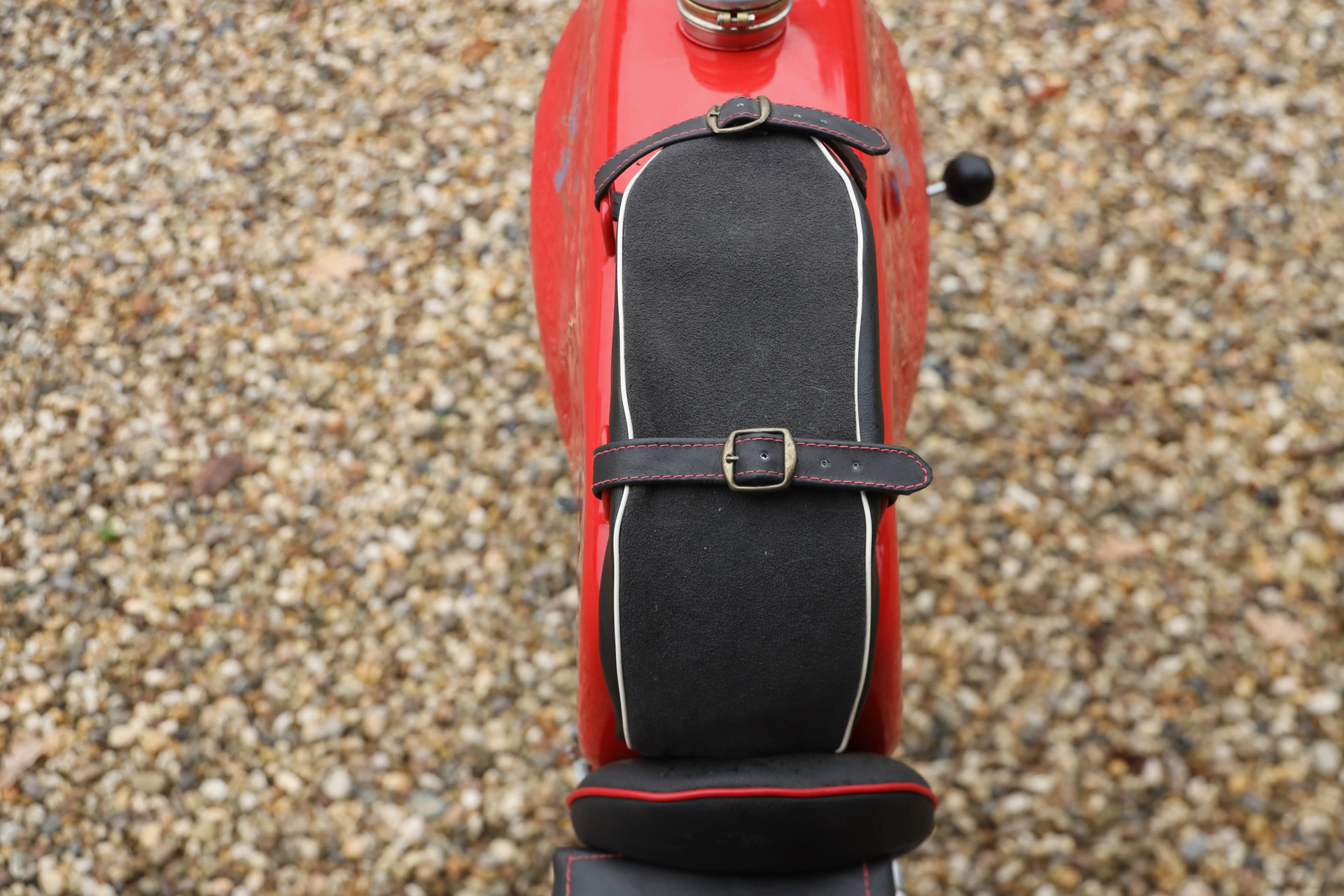 Die hier präsentierte Ducati Cucciolo T2 „Corsa“ gehört zu den schönsten Kreationen innerhalb der T2-Serie. Mit einer frühen Motornummer aus der 201-Reihe handelt es sich zudem um ein seltenes Exemplar, das die Übergangsphase zwischen den einfachen Fahrrad-Motor-Kombinationen und den ersten echten Ducati-Motorrädern markiert.