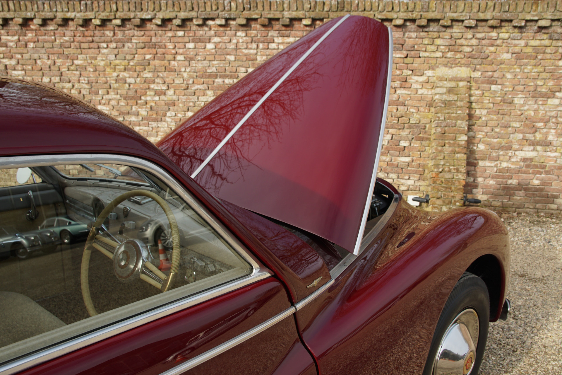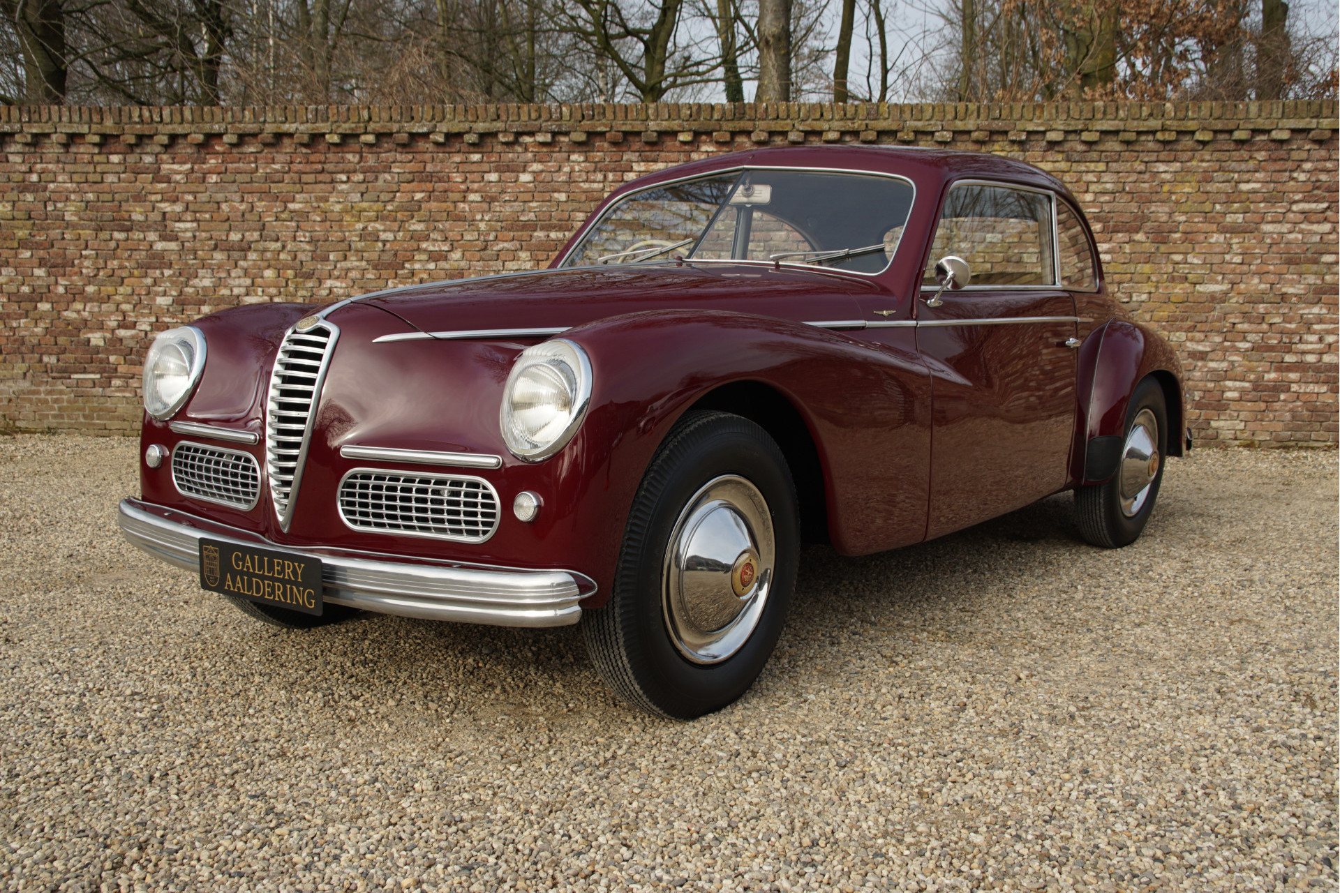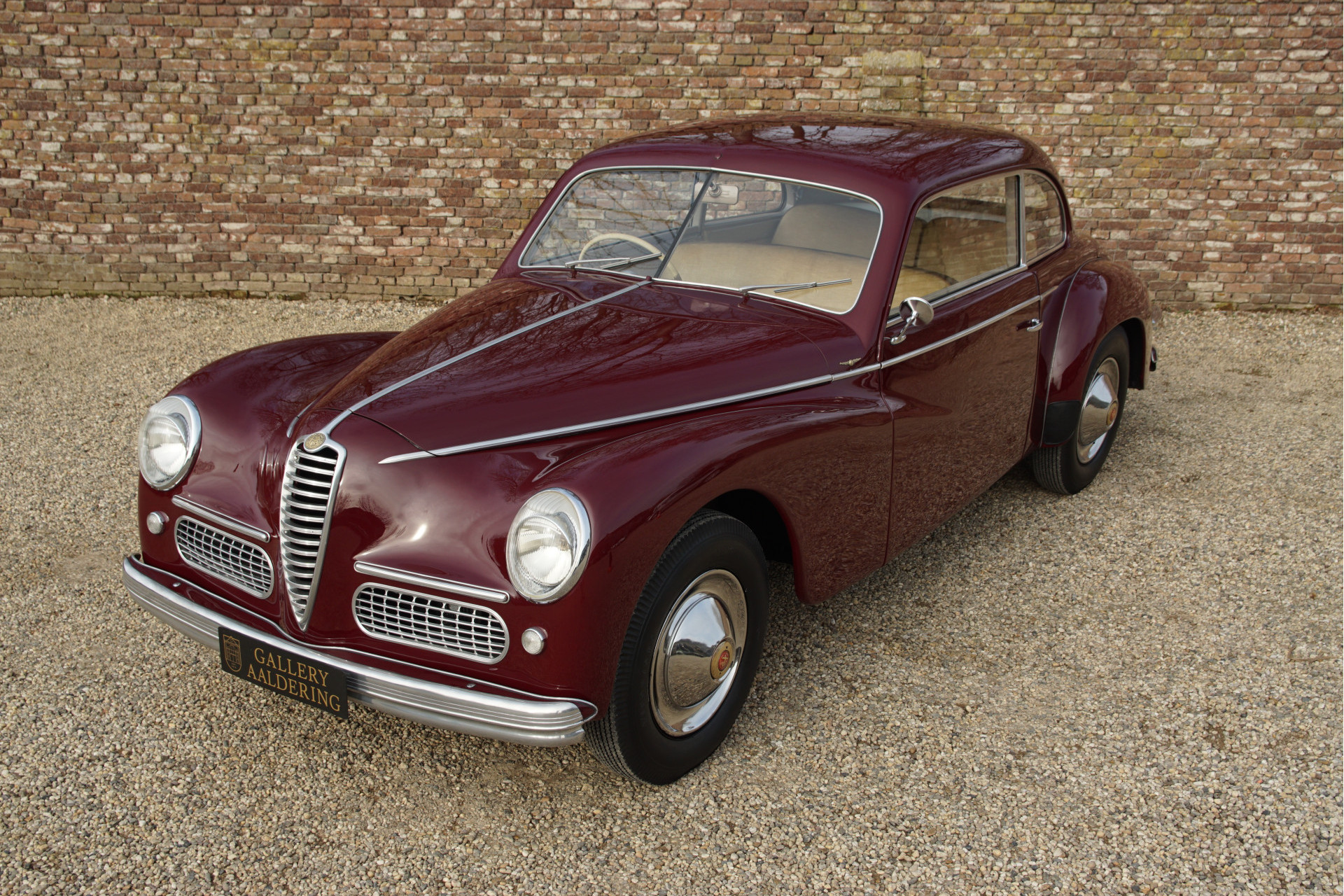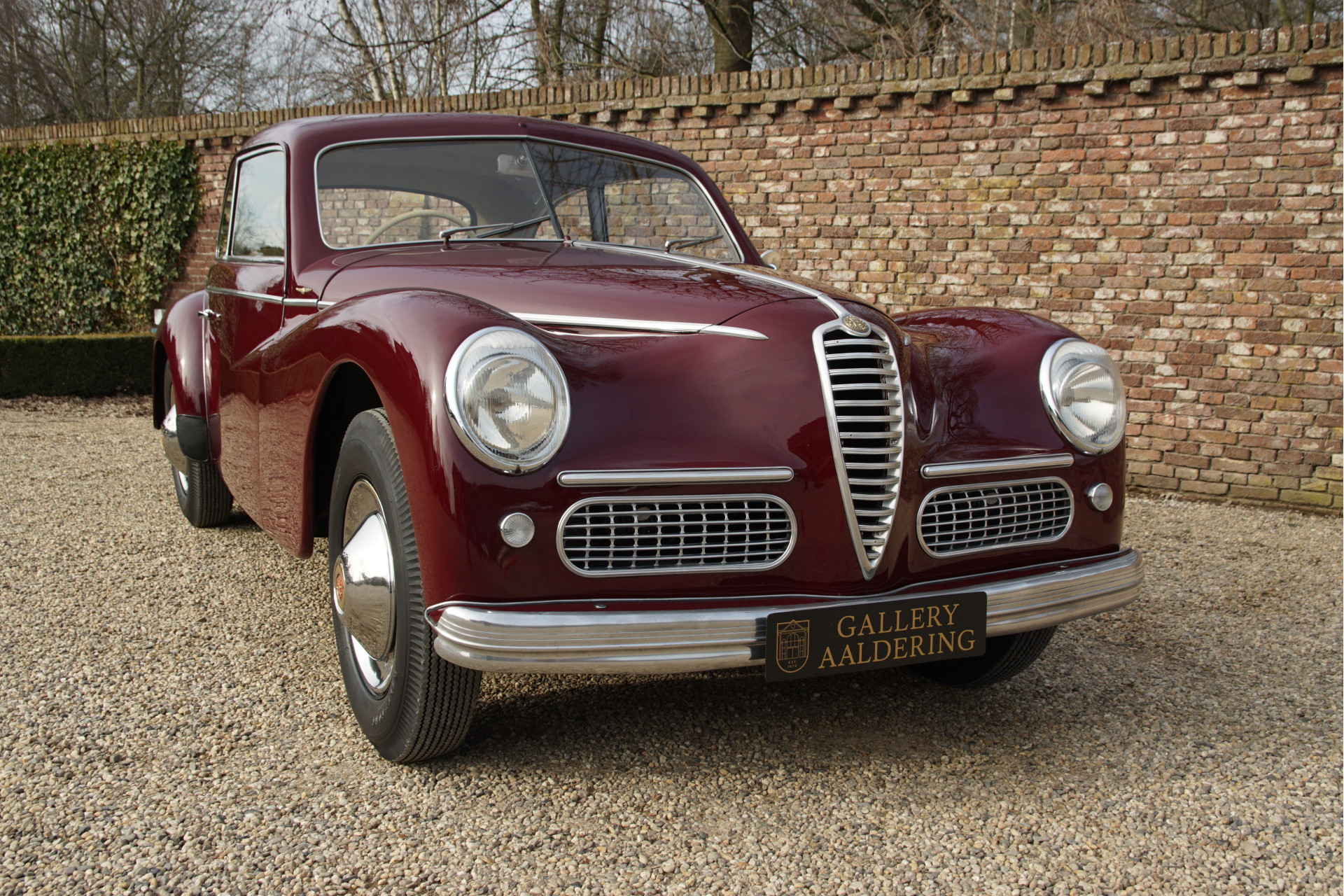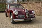 Estamos más que complacidos de haber agregado este fantástico Alfa Romeo Español6C 2500 SS 'Super Sport' Gran Turismo Serie 3 para nuestra colección. Alfa Romeo entregó este coche a su primer propietario en Lugarno, Italia, el 21 de julio de 1953. Es una de las 119 versiones de 3 carburadores que se fabricaron, de las que solo se sabe que sobrevivieron 18 en todo el mundo. Entró en el registro oficial en 1993 después de 25 años de búsqueda, lo que da una idea de su rareza. La hermosa carrocería esculpida tiene un aura magnífica y elegante. Si a la mezcla le sumamos velocidad y sofisticación, no es de extrañar. En su momento, ¡este Alfa se consideró el mejor! Los paneles de carrocería rectos encajan bien. La parte inferior, totalmente en buen estado, no tiene formación de óxido. El revestimiento interior, que da una sensación de autenticidad, está en muy buenas condiciones. Ha conservado su motor 2500 original con números coincidentes que lleva un certificado Alfa completo. ¡Esta es una oportunidad única de adquirir un Alfa legendario de la serie 6C!