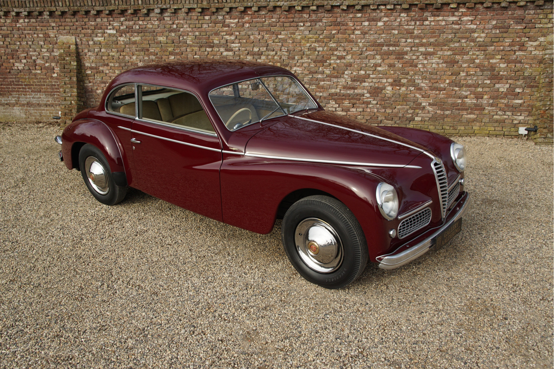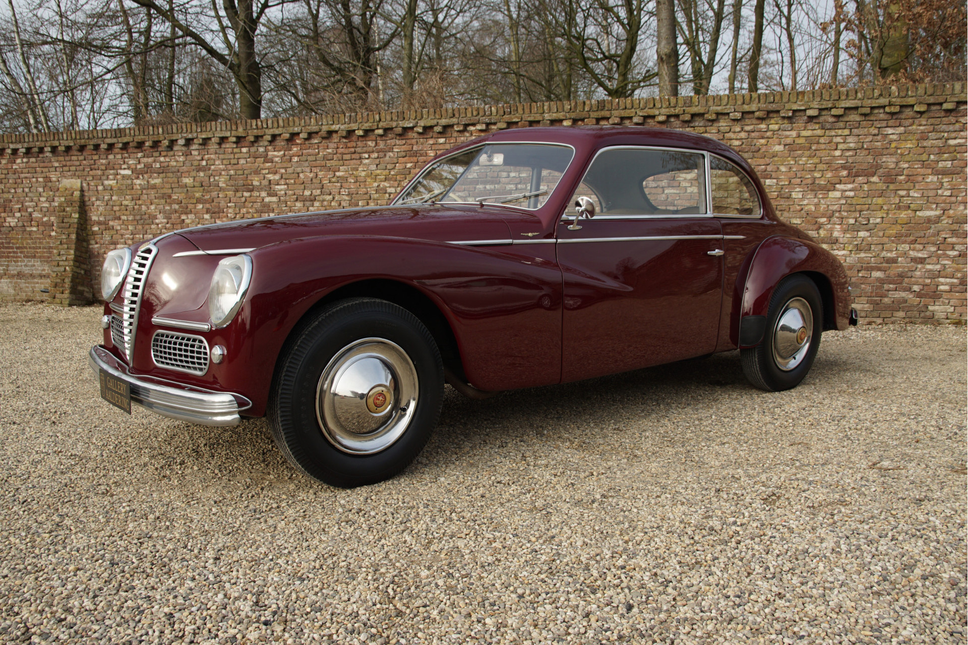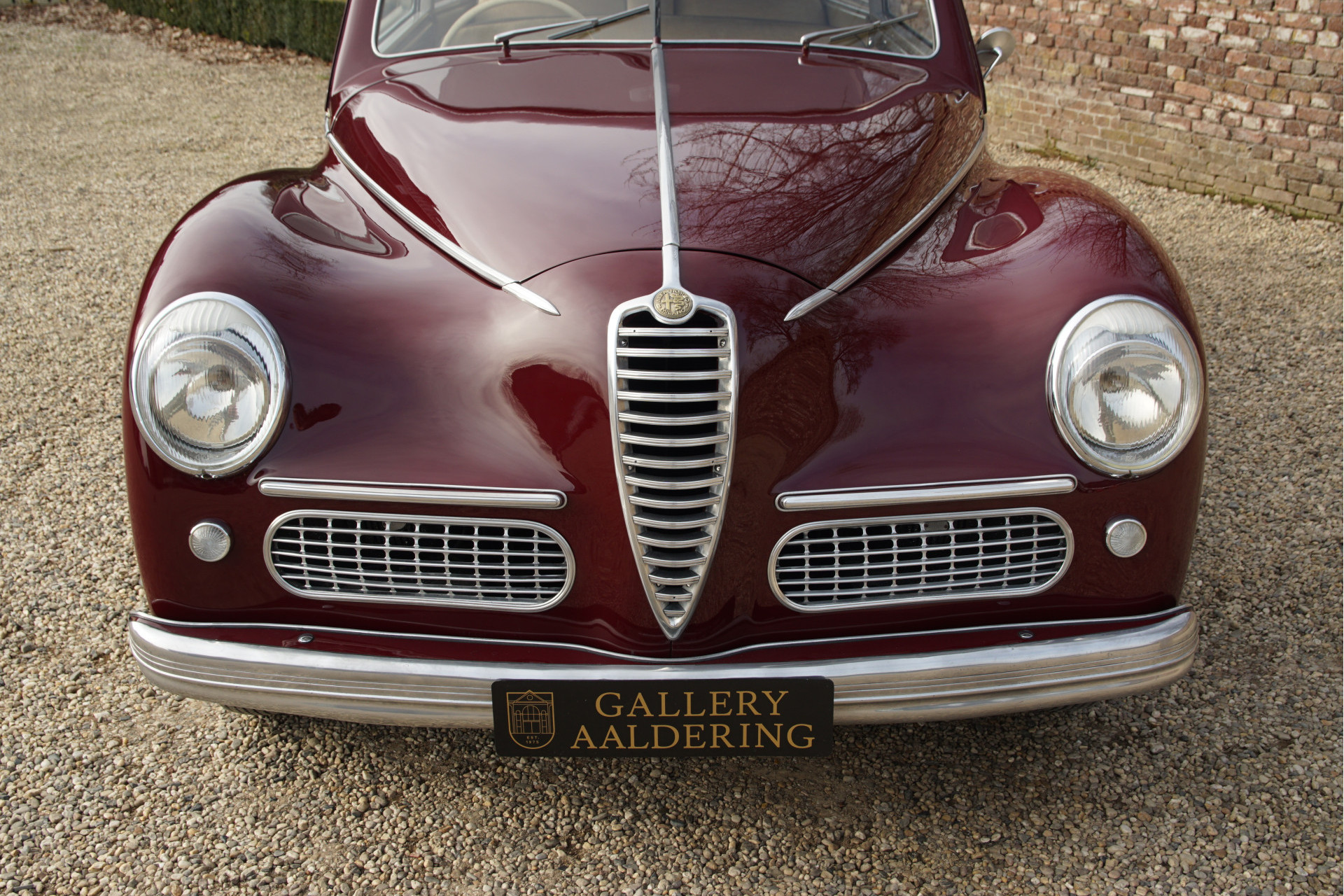 Estamos más que complacidos de haber agregado este fantástico Alfa Romeo Español6C 2500 SS 'Super Sport' Gran Turismo Serie 3 para nuestra colección. Alfa Romeo entregó este coche a su primer propietario en Lugarno, Italia, el 21 de julio de 1953. Es una de las 119 versiones de 3 carburadores que se fabricaron, de las que solo se sabe que sobrevivieron 18 en todo el mundo. Entró en el registro oficial en 1993 después de 25 años de búsqueda, lo que da una idea de su rareza. La hermosa carrocería esculpida tiene un aura magnífica y elegante. Si a la mezcla le sumamos velocidad y sofisticación, no es de extrañar. En su momento, ¡este Alfa se consideró el mejor! Los paneles de carrocería rectos encajan bien. La parte inferior, totalmente en buen estado, no tiene formación de óxido. El revestimiento interior, que da una sensación de autenticidad, está en muy buenas condiciones. Ha conservado su motor 2500 original con números coincidentes que lleva un certificado Alfa completo. ¡Esta es una oportunidad única de adquirir un Alfa legendario de la serie 6C!