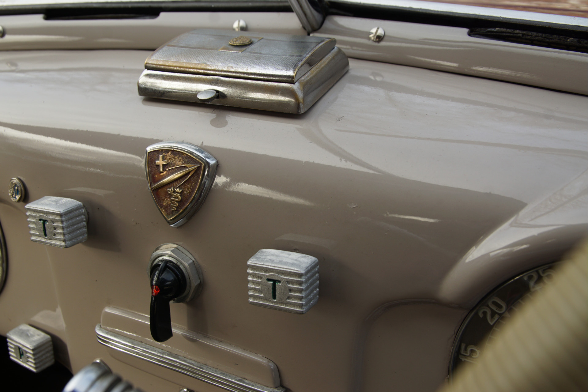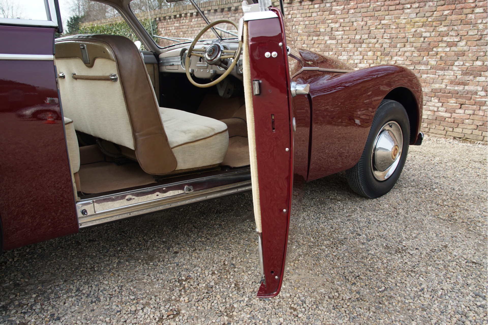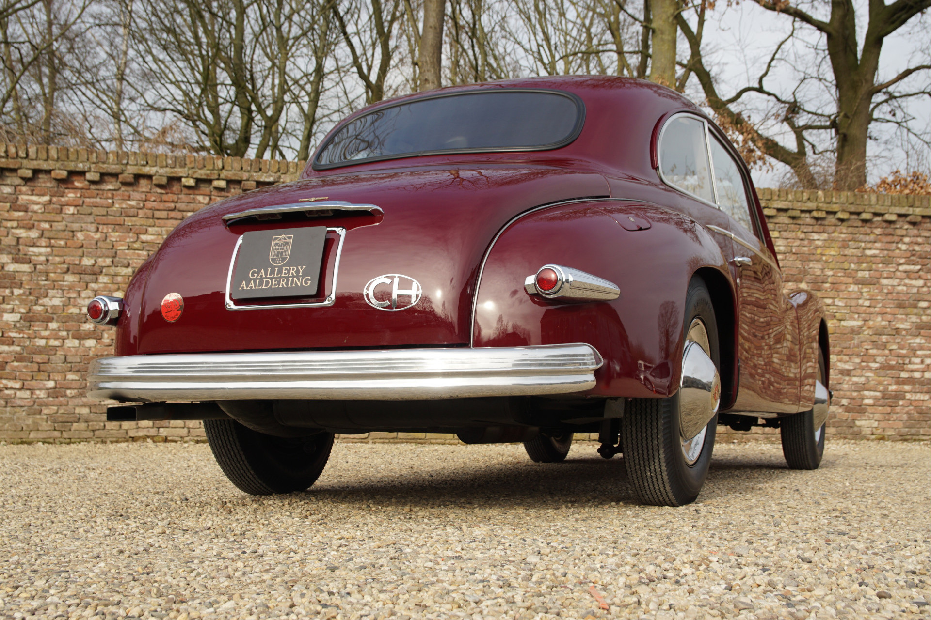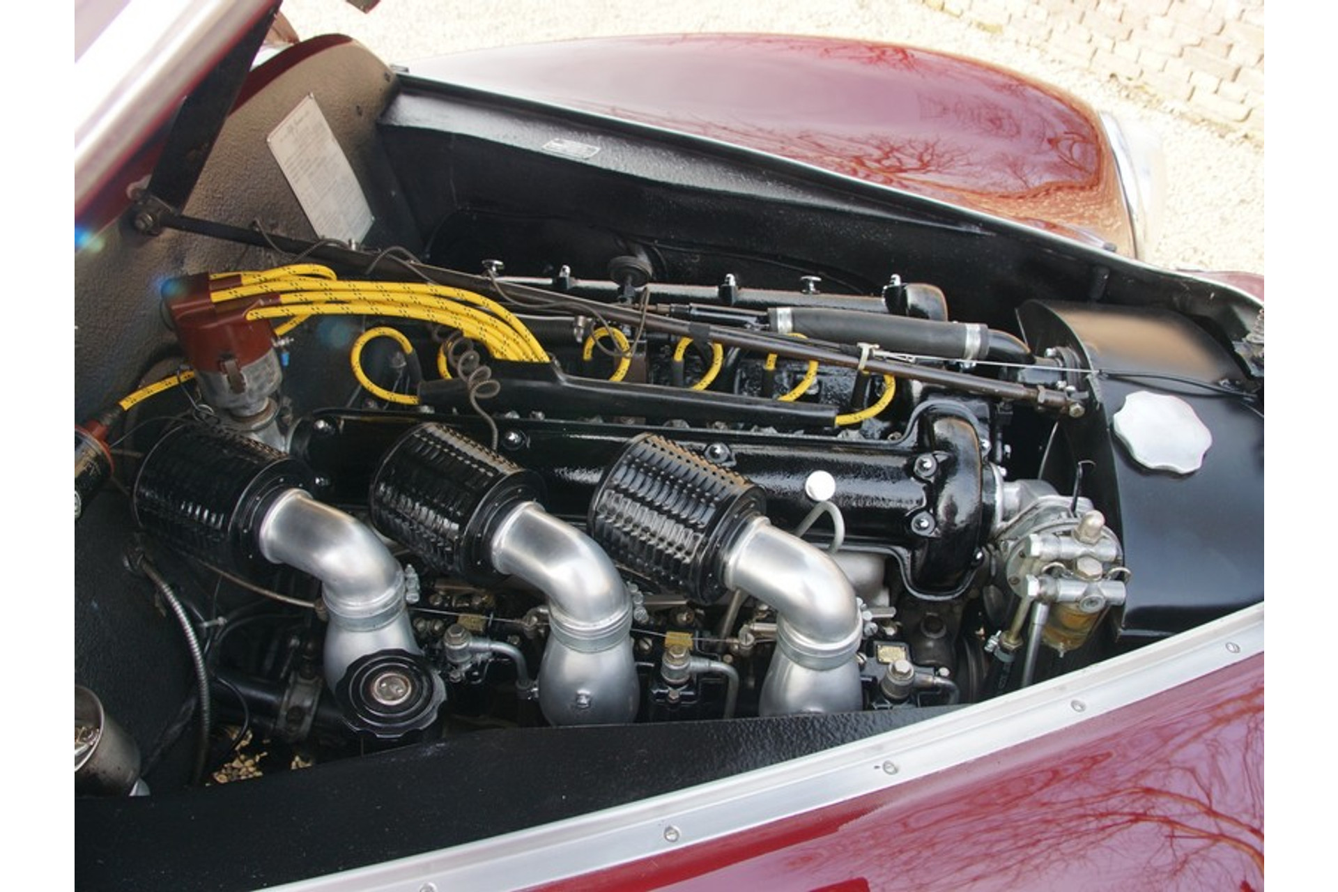 Estamos más que complacidos de haber agregado este fantástico Alfa Romeo Español6C 2500 SS 'Super Sport' Gran Turismo Serie 3 para nuestra colección. Alfa Romeo entregó este coche a su primer propietario en Lugarno, Italia, el 21 de julio de 1953. Es una de las 119 versiones de 3 carburadores que se fabricaron, de las que solo se sabe que sobrevivieron 18 en todo el mundo. Entró en el registro oficial en 1993 después de 25 años de búsqueda, lo que da una idea de su rareza. La hermosa carrocería esculpida tiene un aura magnífica y elegante. Si a la mezcla le sumamos velocidad y sofisticación, no es de extrañar. En su momento, ¡este Alfa se consideró el mejor! Los paneles de carrocería rectos encajan bien. La parte inferior, totalmente en buen estado, no tiene formación de óxido. El revestimiento interior, que da una sensación de autenticidad, está en muy buenas condiciones. Ha conservado su motor 2500 original con números coincidentes que lleva un certificado Alfa completo. ¡Esta es una oportunidad única de adquirir un Alfa legendario de la serie 6C!