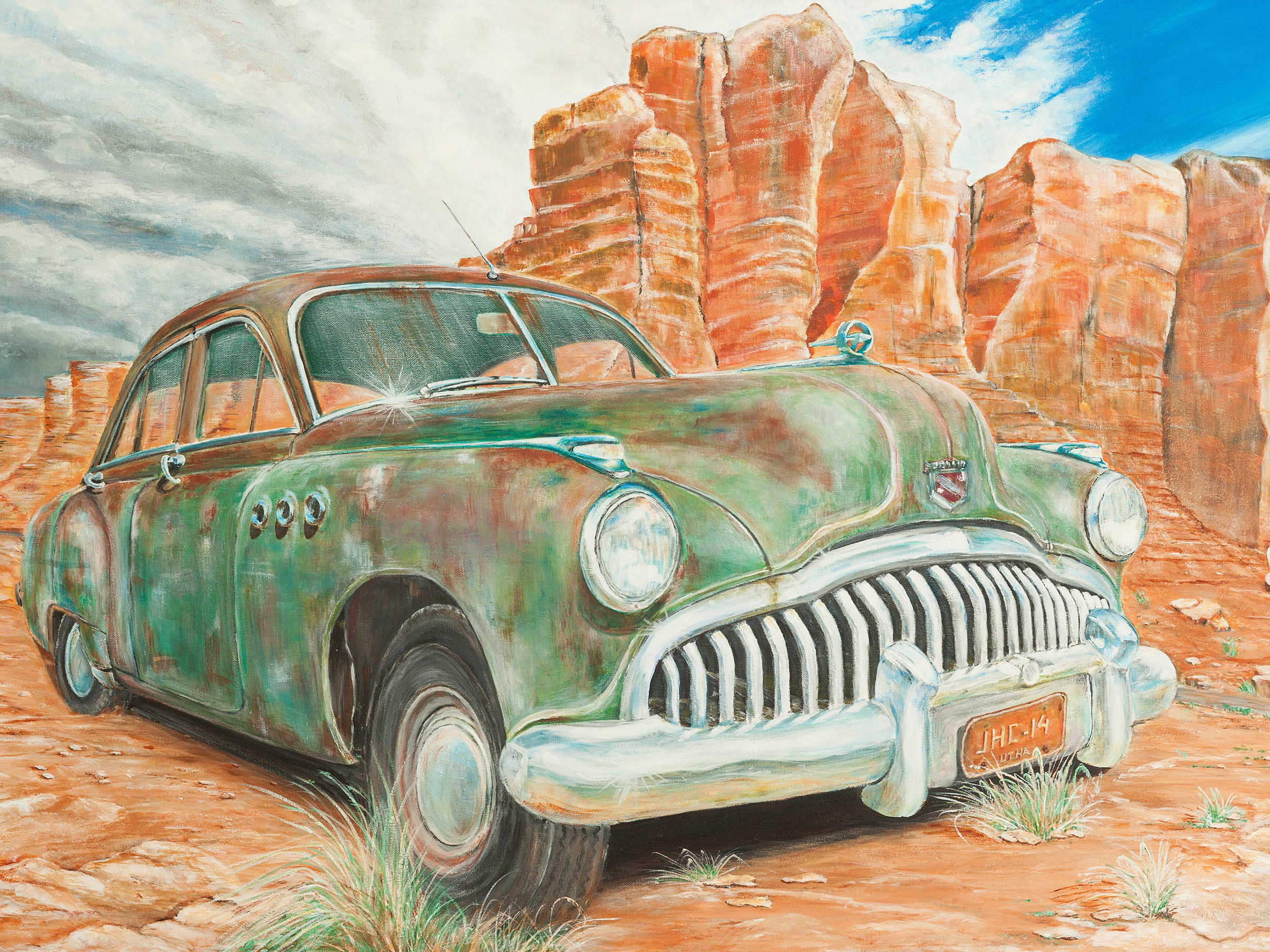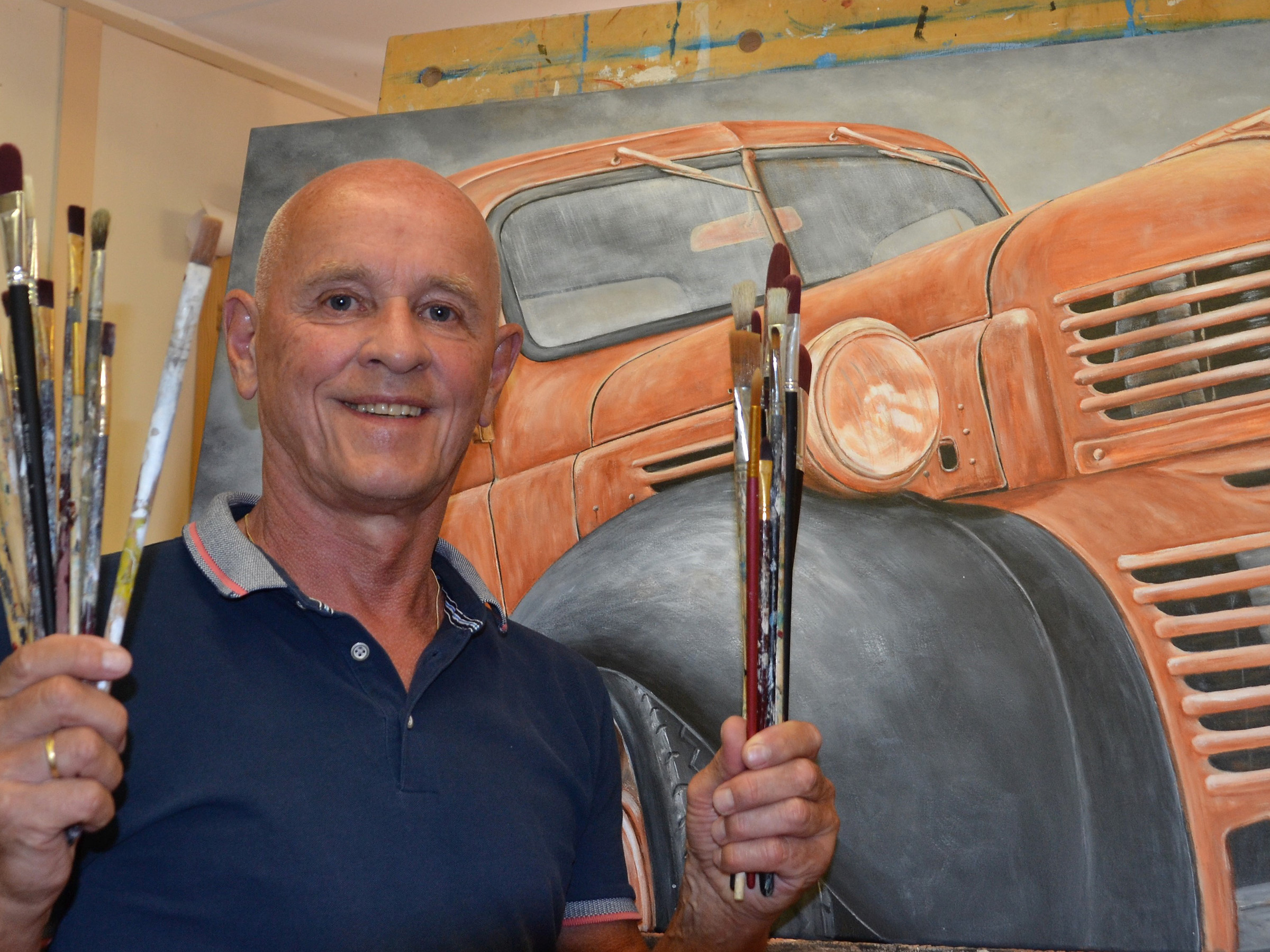 In 2013 dwingt een nekhernia hem om wat minder fysiek aan het werk te gaan. Het tekenen wordt weer opgepakt maar daarnaast is hij vooral veel gaan schilderen. Hij wordt gegrepen om met kleuren aan de slag te gaan, volgt een aantal schildercursussen en ontwikkelt zich snel. Zijn inspiratie haalt hij uit de reizen die hij heeft gemaakt in de Verenigde Staten. De uitgestrekte natuur en vooral de klassieke auto’s uit de jaren ̓40 – ̓50 doen zijn enthousiasme voor het schilderen toenemen. Deze roestbakken hebben dan misschien veel van hun glans verloren, maar voor hem blijken ze een grote inspiratiebron. De titels van de werken refereren vaak aan de fases waar hij zelf doorheen moest. Elk schilderij is als het ware een AUTObiografie.
