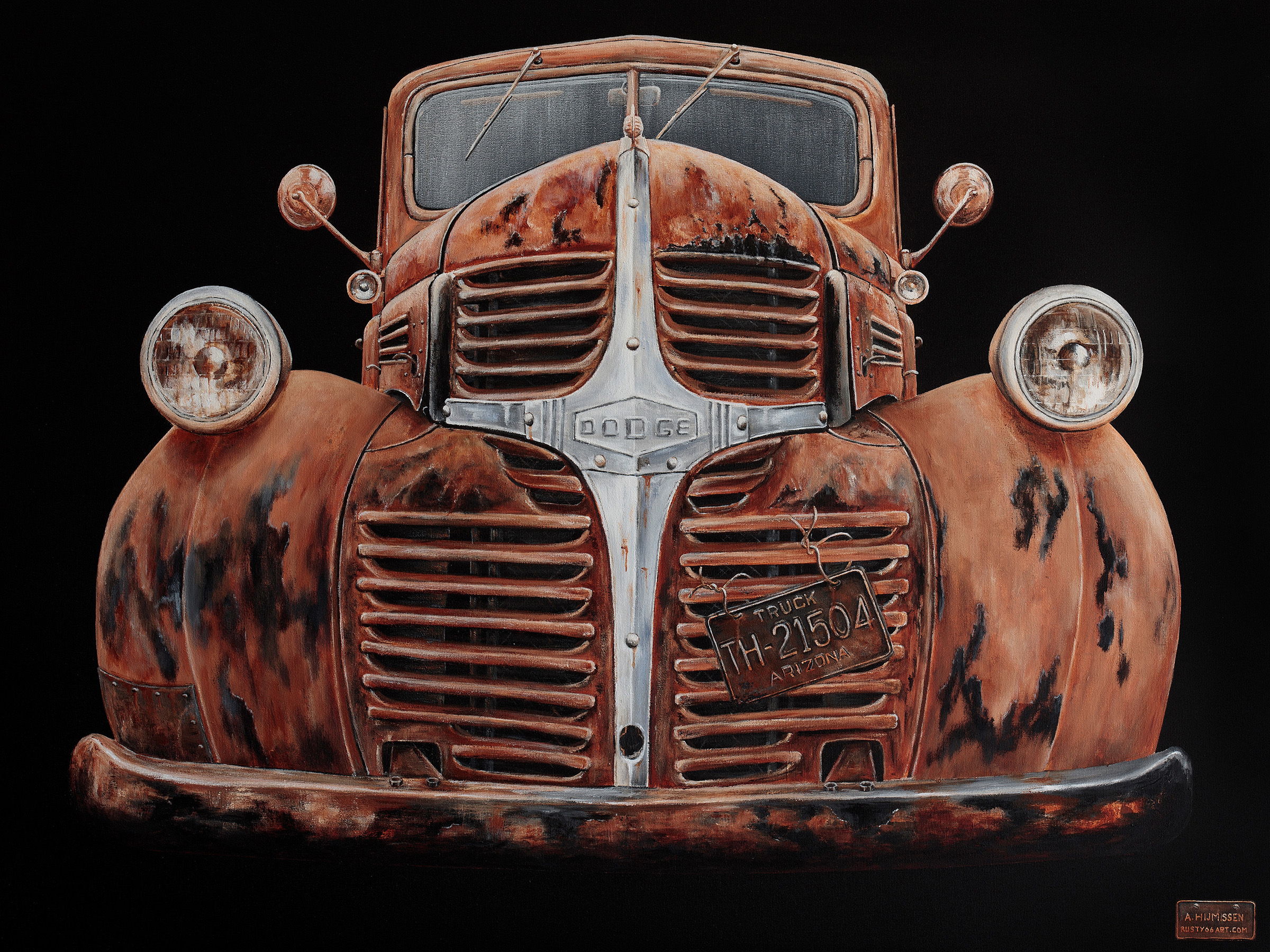 Tot en met 27 maart exposeert Aalt Hijmissen uit Ermelo bij Gallery Aaldering. Het thema van zijn expositie is Still Shining. Het betreft een groot aantal schilderijen van veelal klassieke Amerikaanse auto’s uit de jaren ̓40 – ̓50. Geen mooie opgepoetste glanzende bolides, wat de titel doet vermoeden, maar vooral veel oldtimers met een historie, een verhaal en vooral veel roest!