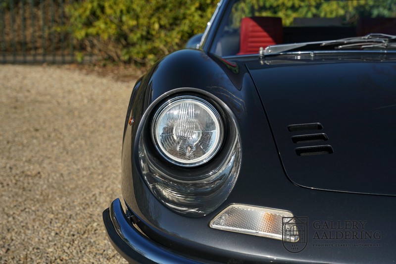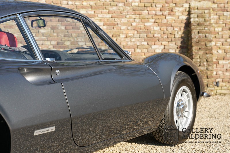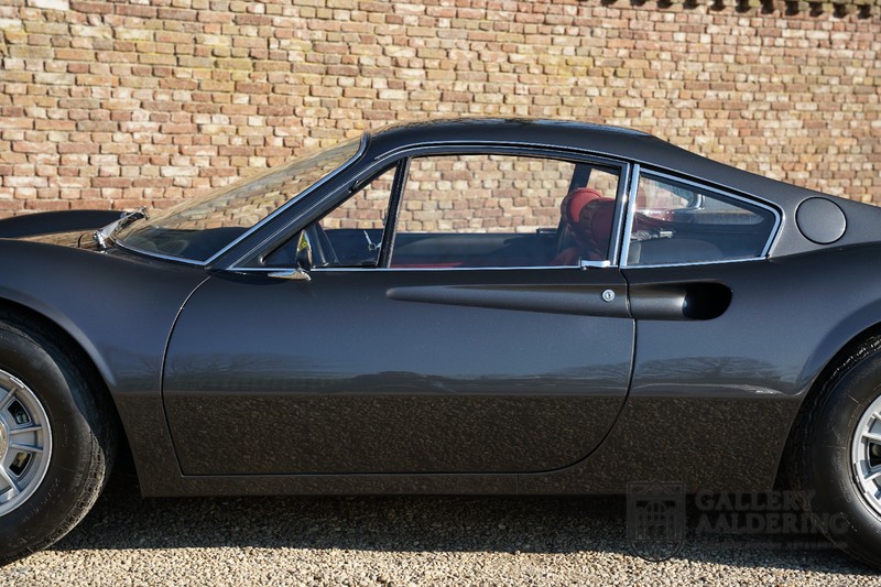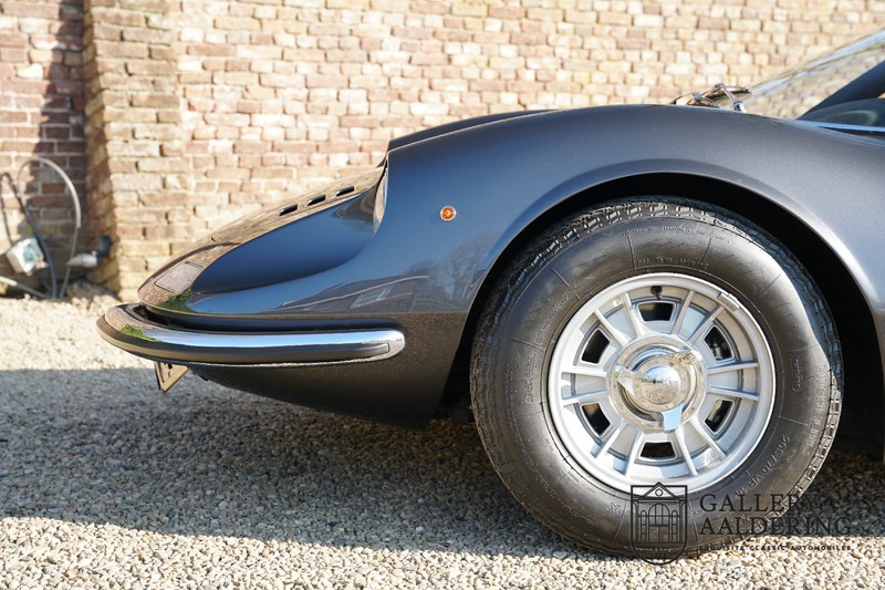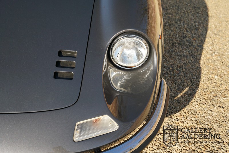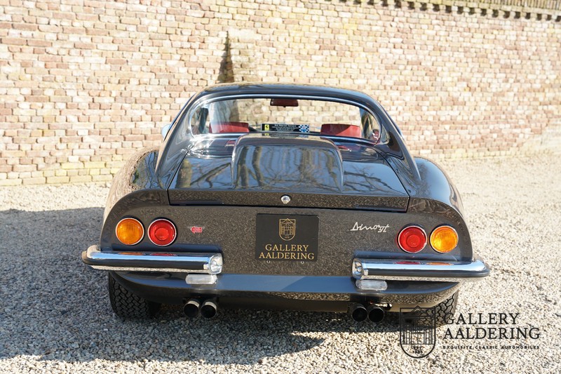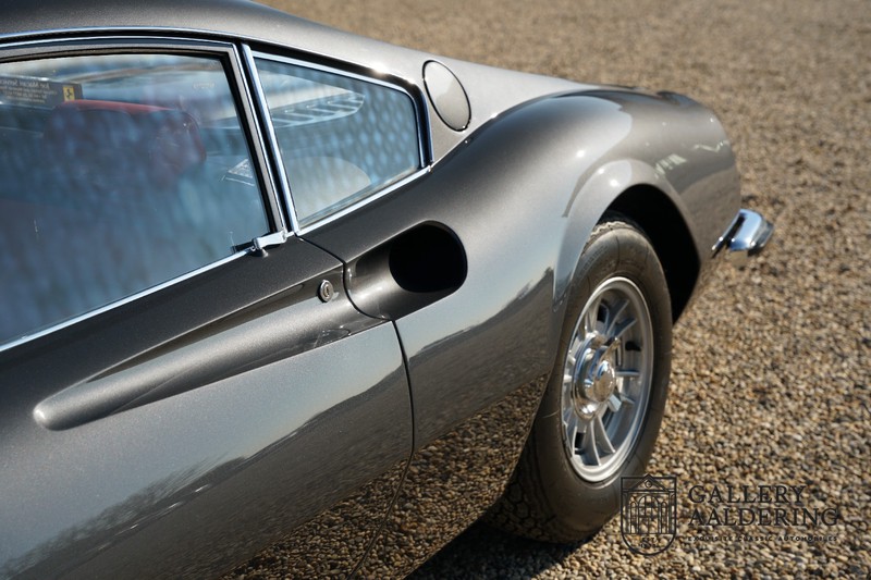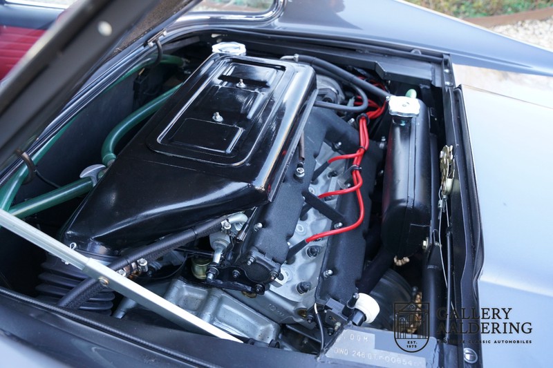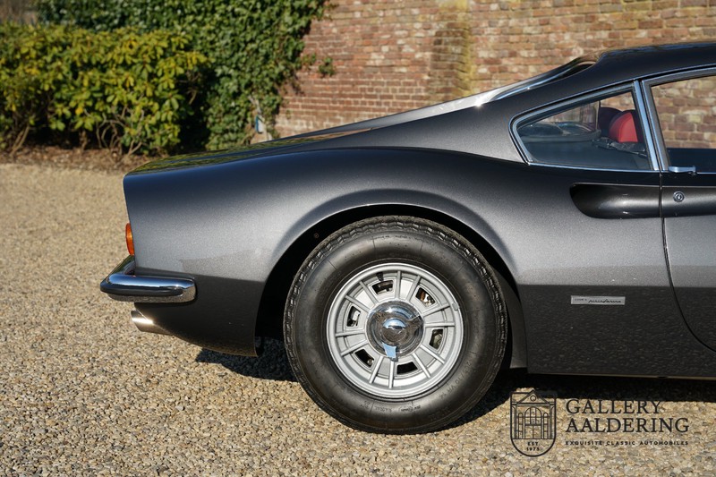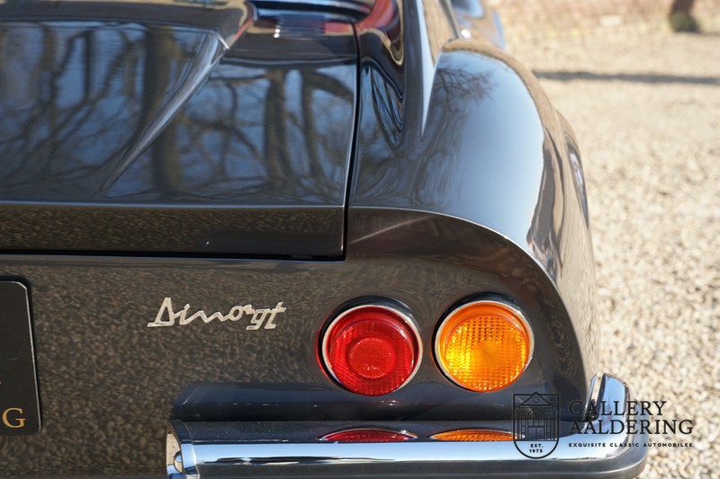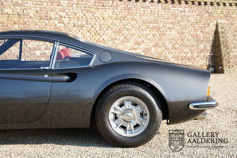 Het betreft hier een prachtige Ferrari Dino 246 GT uit 1970. De auto is in het verleden volledig gerestaureerd door de Britse Ferrari specialist Joe Macari. De auto is volledig teruggebracht tot blank metaal en ziet er dan ook nog steeds prachtig uit. De kwaliteit van de werkzaamheden spat er nog immer vanaf. De restauratiewerkzaamheden zijn prachtig gedocumenteerd middels een fotoserie en een uitgebreide ordner met informatie omtrent de auto. Het betreft hier een vroege L-Series auto met de welbekende 206 GT styling features, waaronder aluminium deuren en een aluminium motorkap. In totaal bouwde Ferrari maar 357 auto’s in deze serie. Deze Dino is nieuw geleverd in Europa en voorzien van elektrisch bedienbare ramen. De kosten voor de restauratie bedroegen destijds meer dan 150.000 Britse ponden. Deze auto is al eens toegelaten tot het uiterst prestigieuze Salon Privé event.