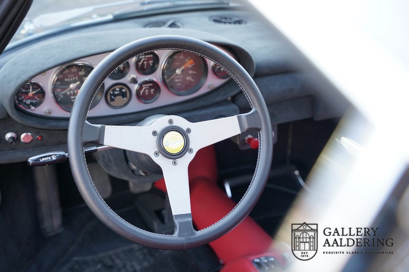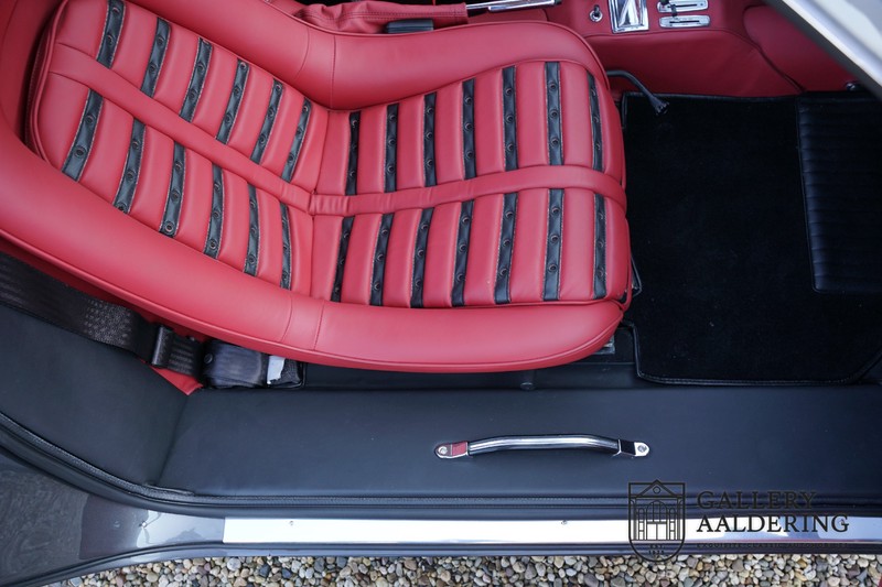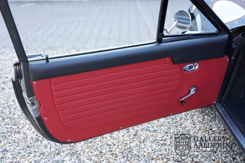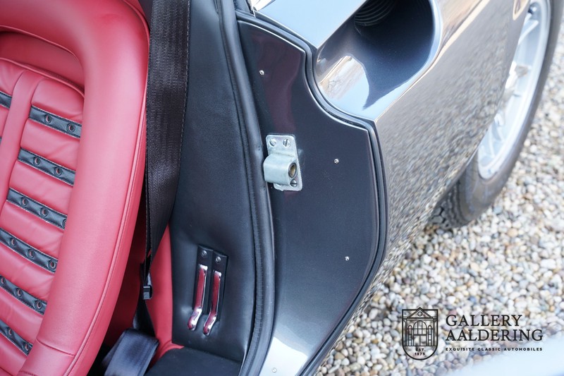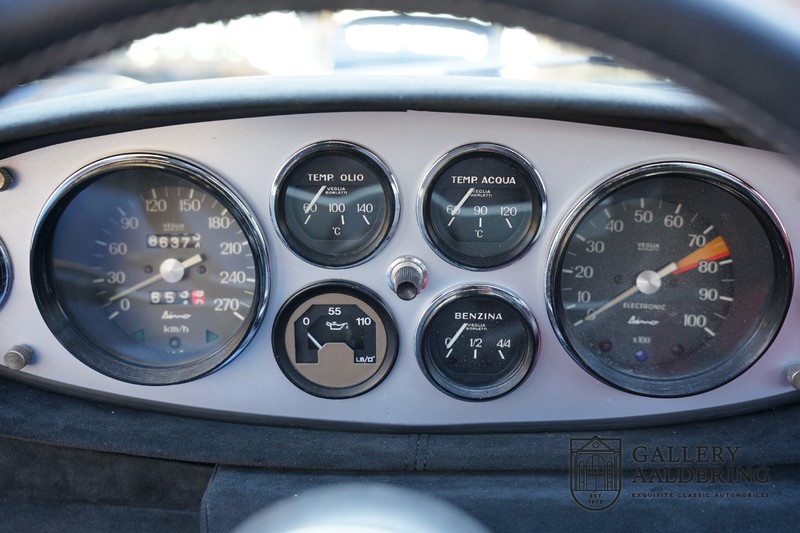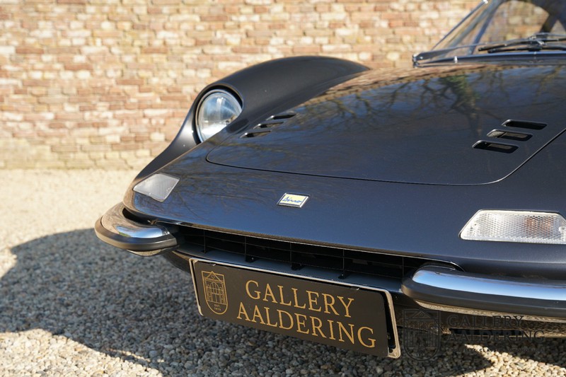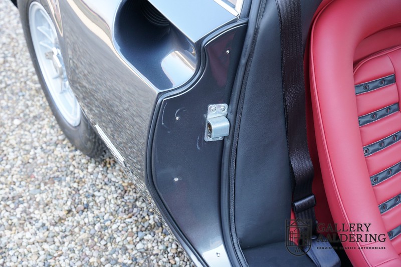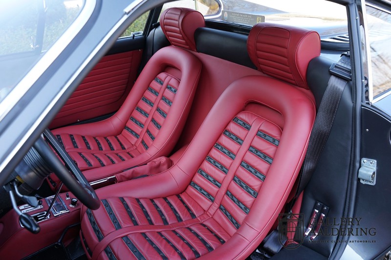 Die Karosserie sieht immer noch wunderschön aus. Obwohl die Restaurierung vor einigen Jahren durchgeführt wurde, ist der Zustand des Autos immer noch sehr gut. Die Karosserie sieht wunderschön gepflegt aus, sie hat dünnes Blech und korrekte Passungen. Das Auto wurde während der Restaurierung komplett neu lackiert in der schönen Anthrazit-Metallic-Farbe, die es noch heute trägt. Die Arbeiten wurden seinerzeit sehr gut durchgeführt und der Lack ist nahezu komplett frei von Gebrauchsspuren. Das Fahrzeug hat seine originale Cromodora-Räder, umgeben von guten Michelin-Reifen in den richtigen Größen. Auch Teile wie die Scheinwerfer und die verchromten Zierleisten sind alle in sehr gutem Zustand.