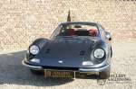 Dies ist ein wunderschöner Ferrari Dino 246 GT aus dem Jahr 1970. Das Auto wurde schon mal vom britischen Ferrari-Spezialisten Joe Macari vollständig restauriert. Die Karosserie wurde komplett bis auf blankes Metall reduziert und sieht dementsprechend immer noch wunderschön aus. Die Qualität der Arbeiten bei der Restaurierung war hervorragend. Die Restaurierungsarbeiten sind durch eine Fotoserie und eine umfangreiche Mappe mit Informationen zum Auto sehr gut dokumentiert. Es handelt sich um ein frühes Exemplar der L-Serie mit den bekannten Designmerkmalen des 206 GT, einschließlich Aluminiumtüren und einer Aluminiumhaube. Insgesamt baute Ferrari in dieser Serie nur 357 Autos. Dieser Dino wurde neu in Europa ausgeliefert und mit elektrisch betriebenen Fenstern ausgestattet. Die Restaurierungskosten betrugen damals über 150.000 Britische Pfund. Dieses Auto wurde bereits für die hoch angesehene Veranstaltung Salon Privé zugelassen.
