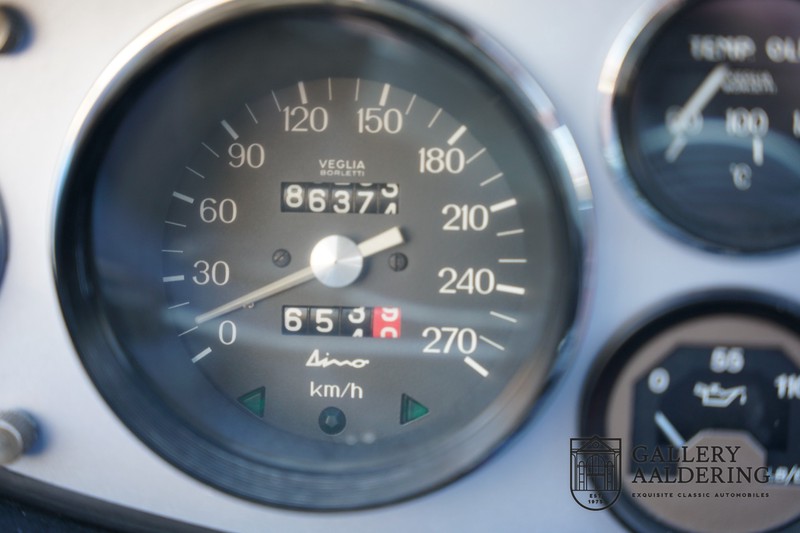 with new parts. In other words a pure quality refit, resulting in a Dino with impeccable manners. The good running engine develops plenty of mid-range pulling power. The precise action of the gearbox has the right kind of gear ratio that is well-suited to the car’s sporty character. The manner in which engine and gearbox are placed contributes in no small way to the car’s driving pleasure. The engine is situated straight behind the rear divider. You will surely want to experience the incredible feeling one gets when accelerating through the revs and the Webers suck in all that petrol and air. It is quite incredible to think that automotive perfection was achieved at such an early stage.