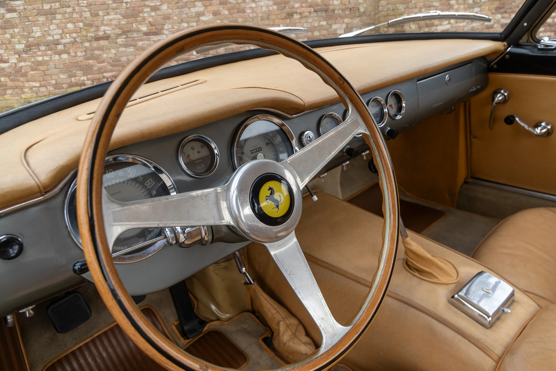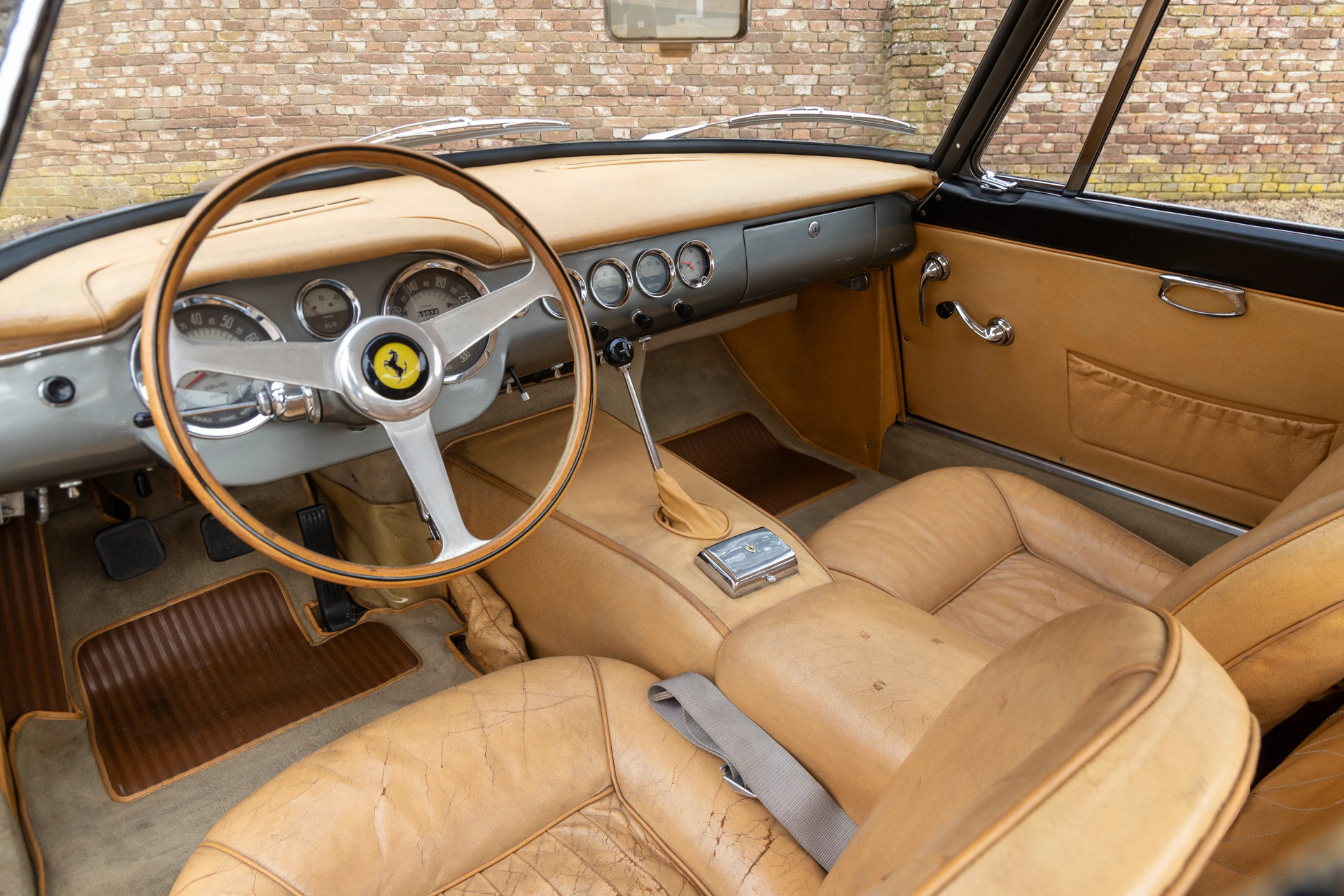 The car remains unrestored. Remarkably original. Its Grigio Metallizzato paint carries its age with quiet dignity, while the beige leather interior tells its story without revision or embellishment. Everything you see belongs to this Ferrari. Everything you feel is authentic. Sitting in a legendary Ferrari is always special — sitting in an unrestored 250 GT SWB is something that almost never happens. This is patina at its finest — the right patina. We are genuinely captivated by this Ferrari and find it endlessly fascinating.