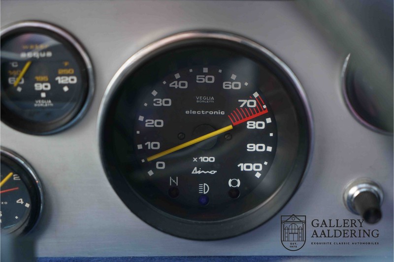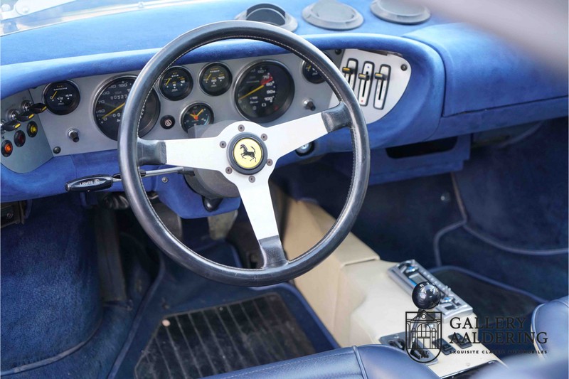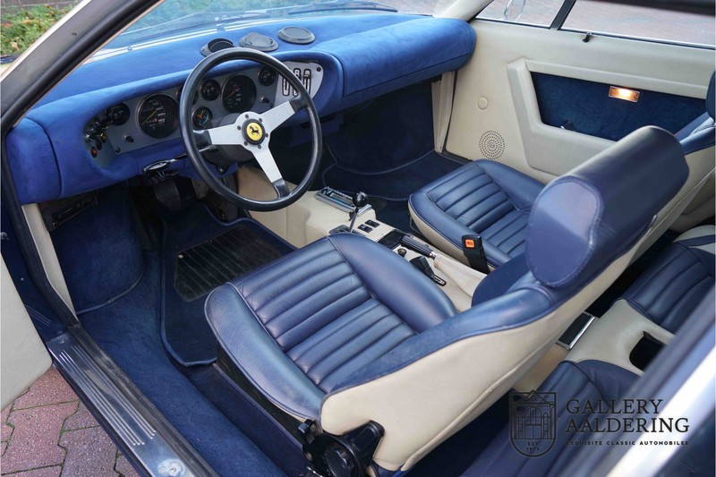 Only 2826 Ferrari 308 GT 4 Dino’s were built from its premier in 1973 during its 7 year production run. Our Ferrari is in very fine and well maintained condition. This 1975 Swiss car is a European version with only 81,000 km on the clock. The sound bodywork is straight and sturdy. It has lovely Two-Tone leather interior trim with a well cared for appearance. The car has surround tinted windows and the correct rims. Mechanically absolutely sound with perfect handling and driving. The original owner’s manual as well as a “abgas-wartungsdokument” are present. A beautiful well maintained GT4 Dino, a proper head turner, a fantastic drive! Gallery Aaldering is Europe’s leading Classic Cars specialist since 1975! Always 300-350 Classic and Sportscars in stock, please visit www.gallery-aaldering.com for the current stock list (all offered cars are available in our showroom) and further information. We are located near the German border, 95 km from Düsseldorf and 90 km from Amsterdam. So easy traveling by plane, train, taxi and car. Transport and worldwide shipping can be arranged. No duties/import costs within Europe. We buy, sell and provide consignment sales (selling on behalf of the owner). We can arrange/provide registration/papers for our German (H-Kennzeichen, TÜV, Fahrzeugbrief, Wertgutachten usw.) and Benelux customers. Gallery Aaldering, Arnhemsestraat 47, 6971 AP Brummen, The Netherlands. Tel: 0031-575-564055. Quality, experience and transparency is what sets us apart. We look forward to welcoming you in our showroom